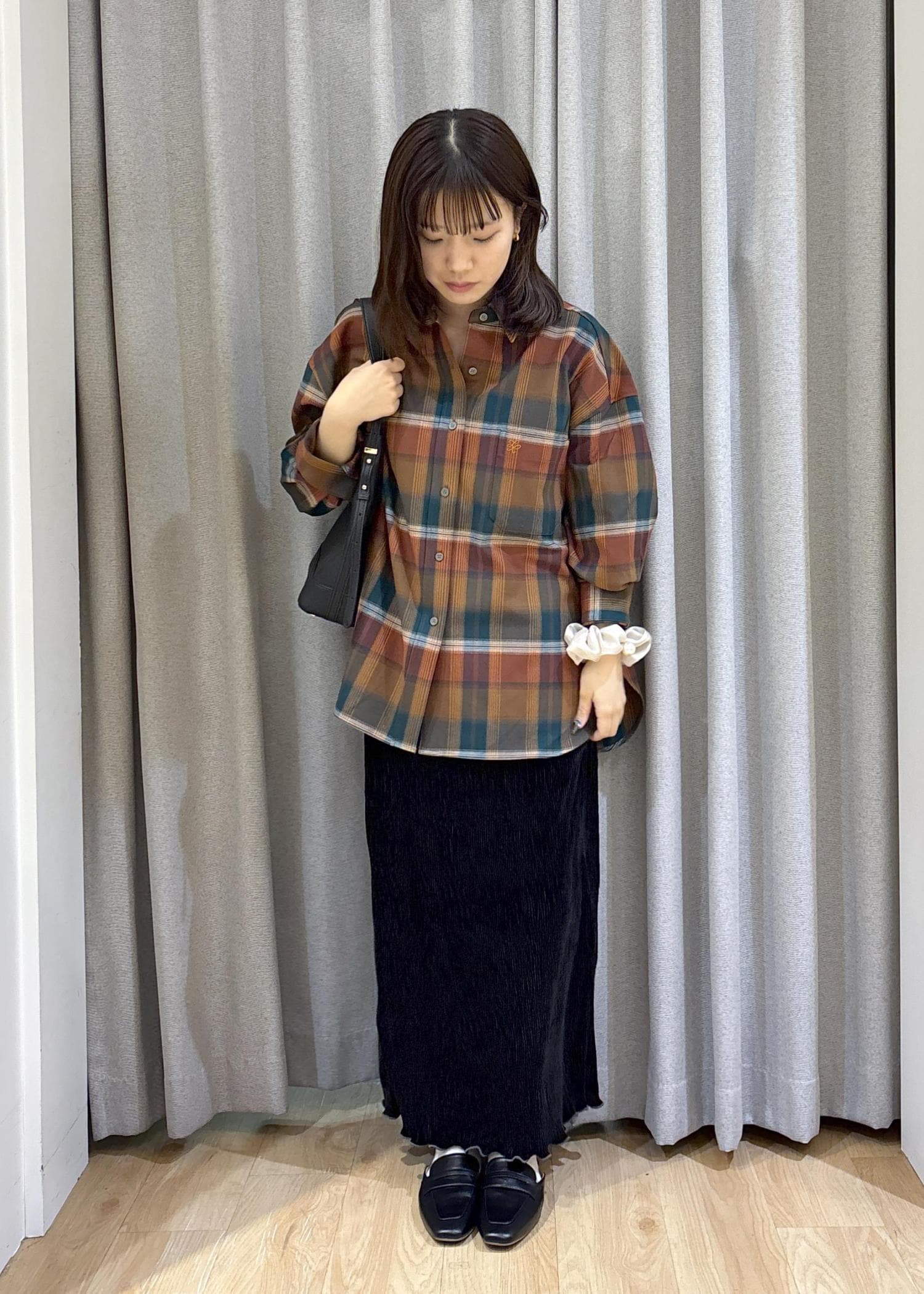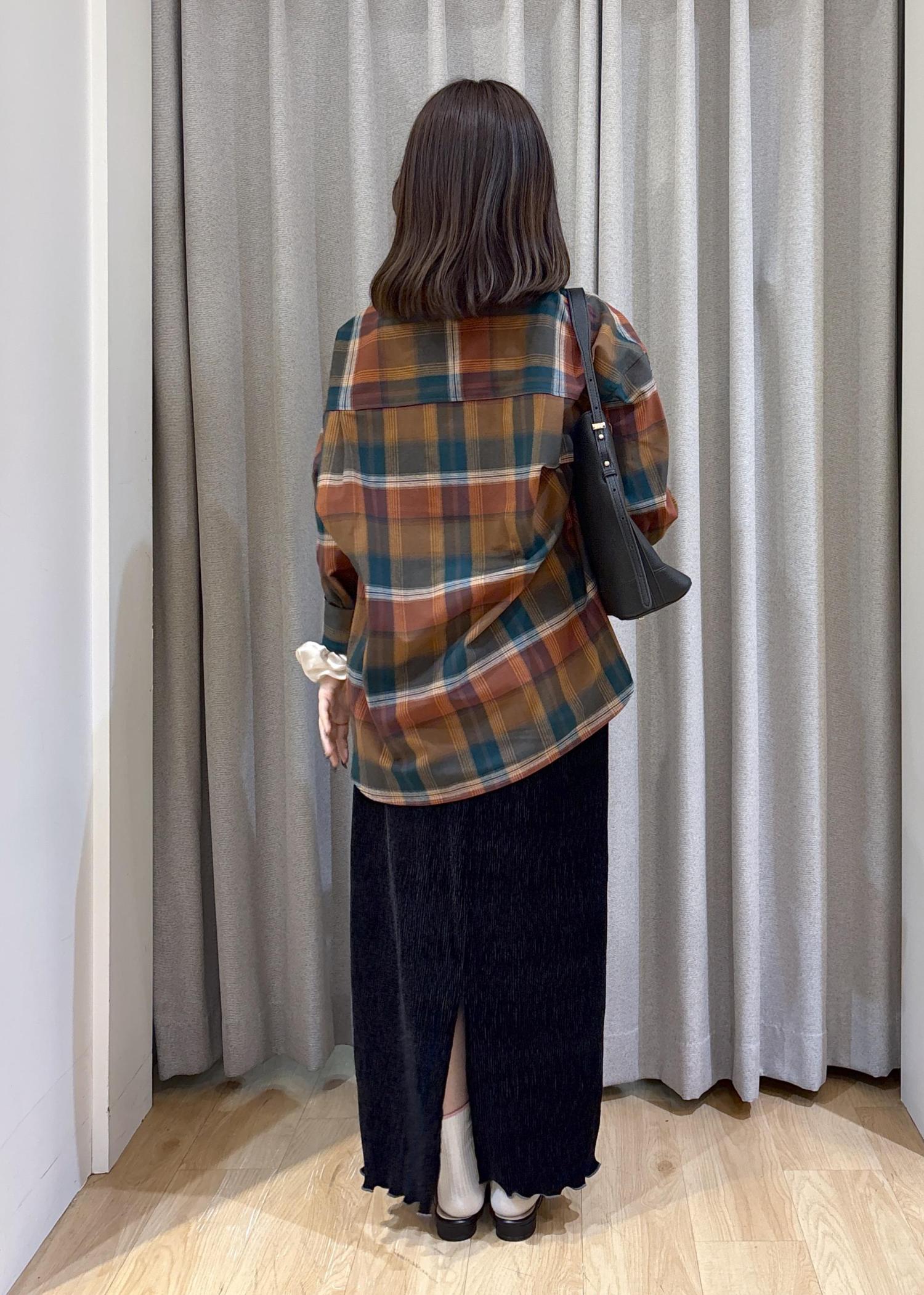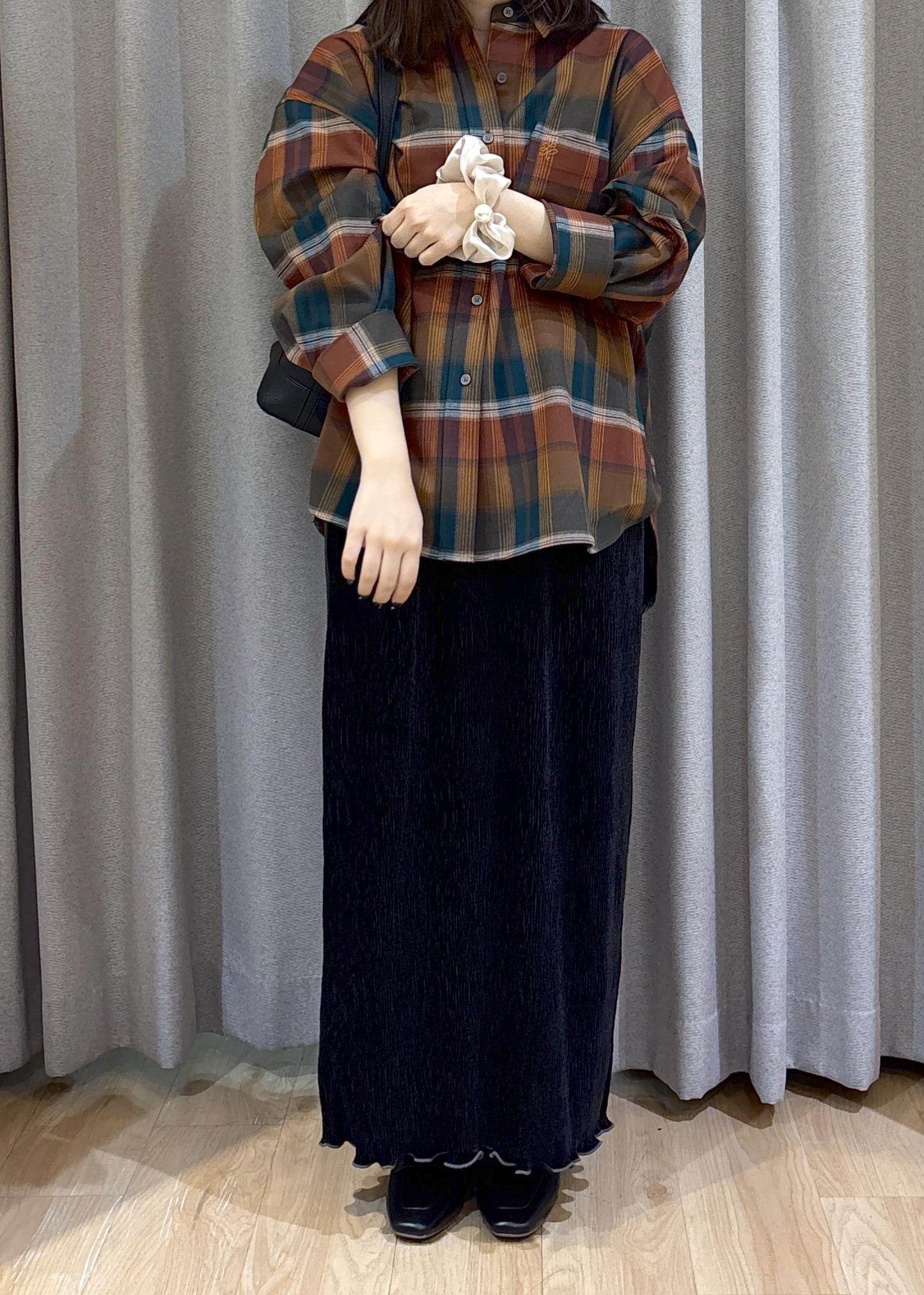 チェックシャツにスカートを合わせたコーディネートにしてみました!