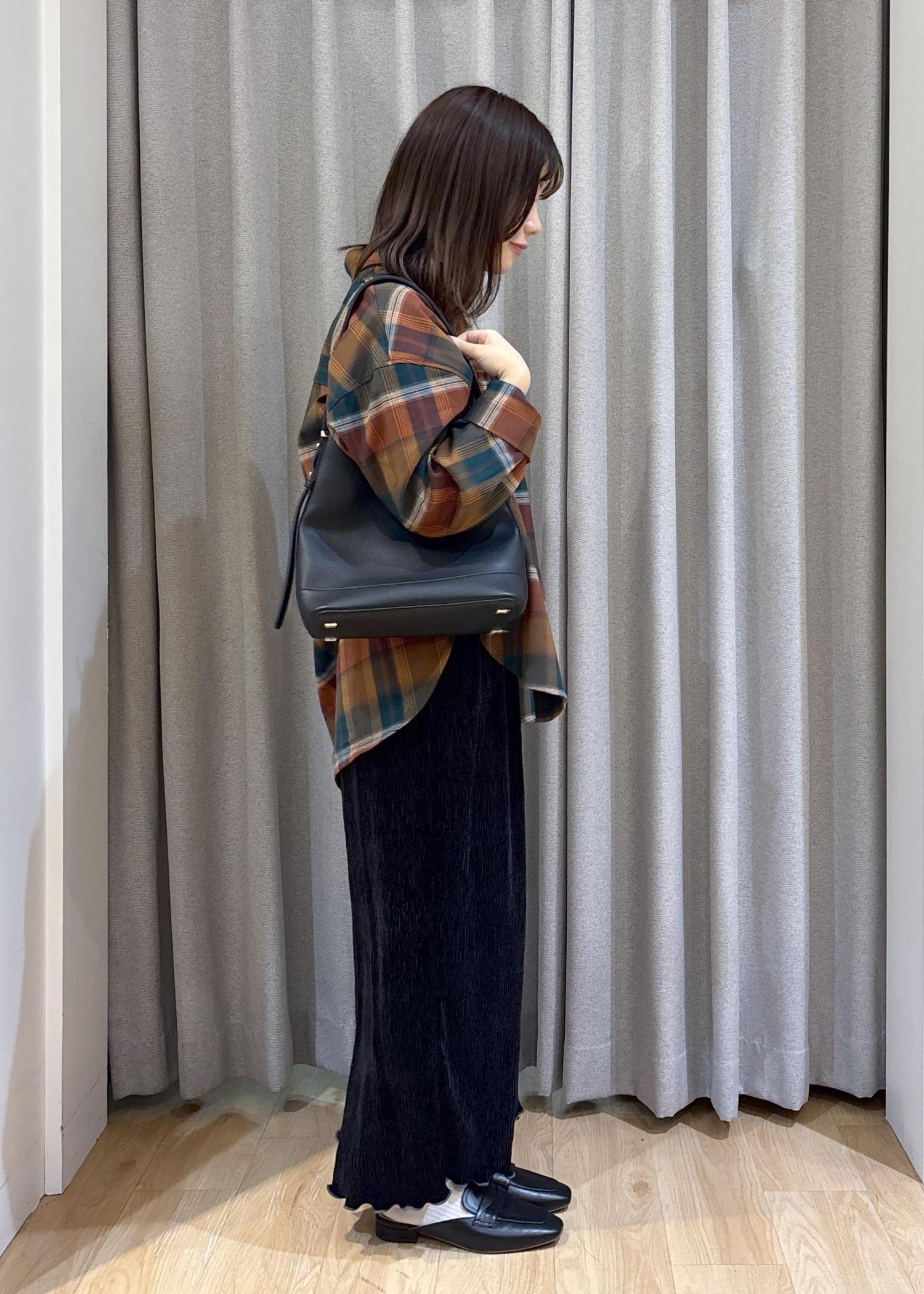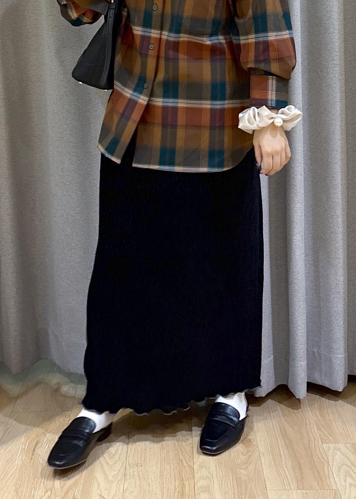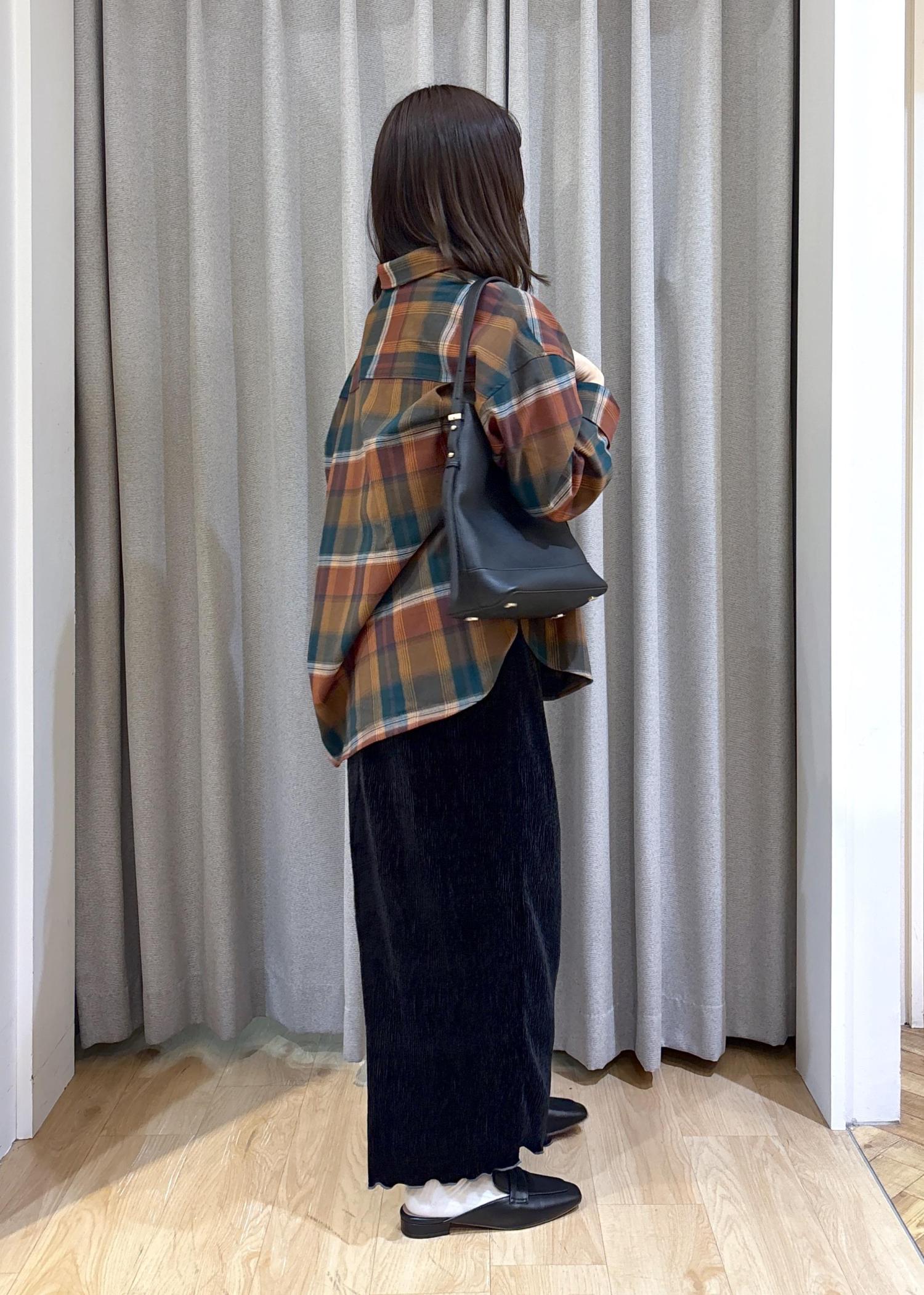 チェックシャツにスカートを合わせたコーディネートにしてみました!