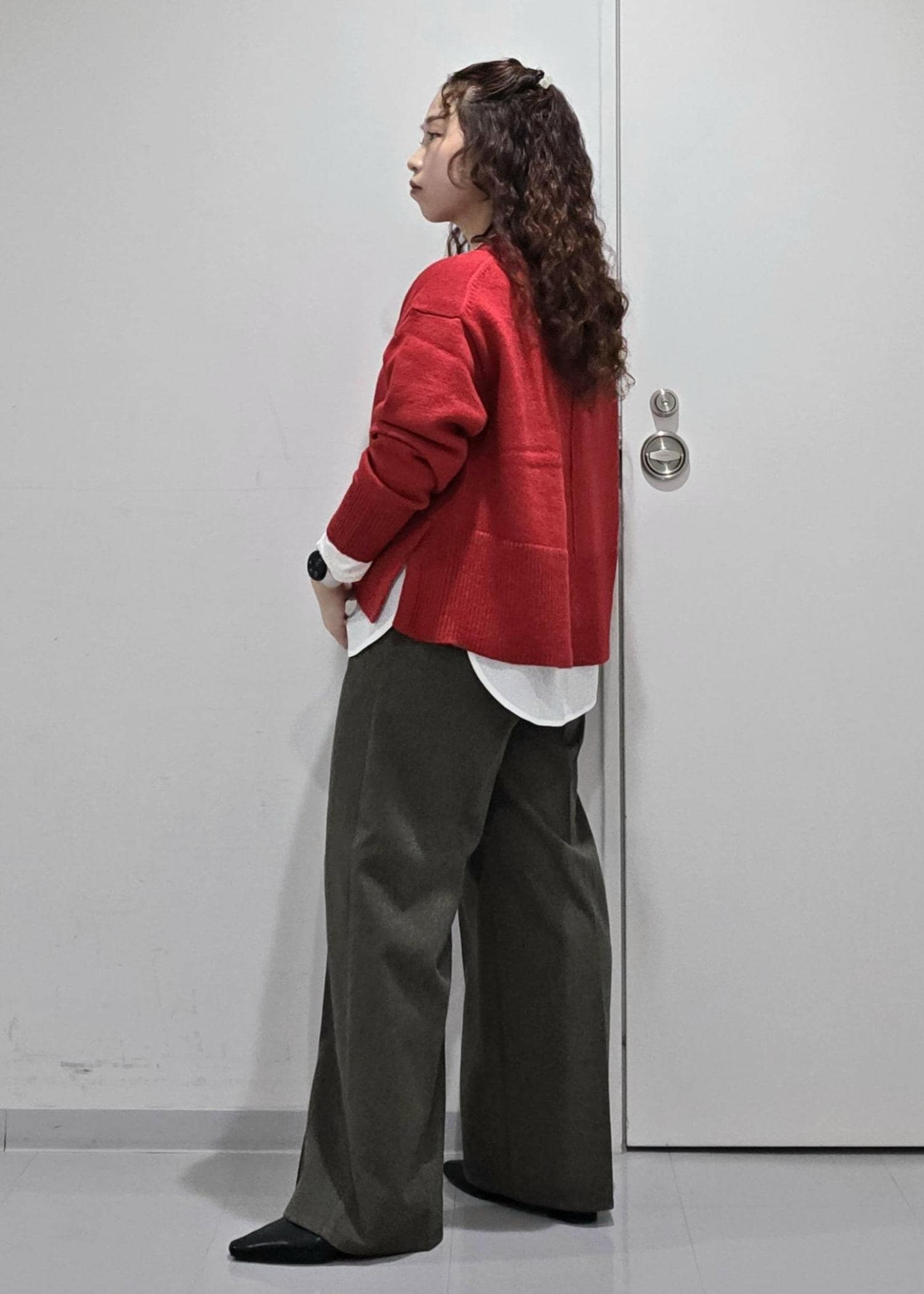 丈が短い方は腰よりやや下の丈感。シャツとのレイヤードにぴったりです。 -