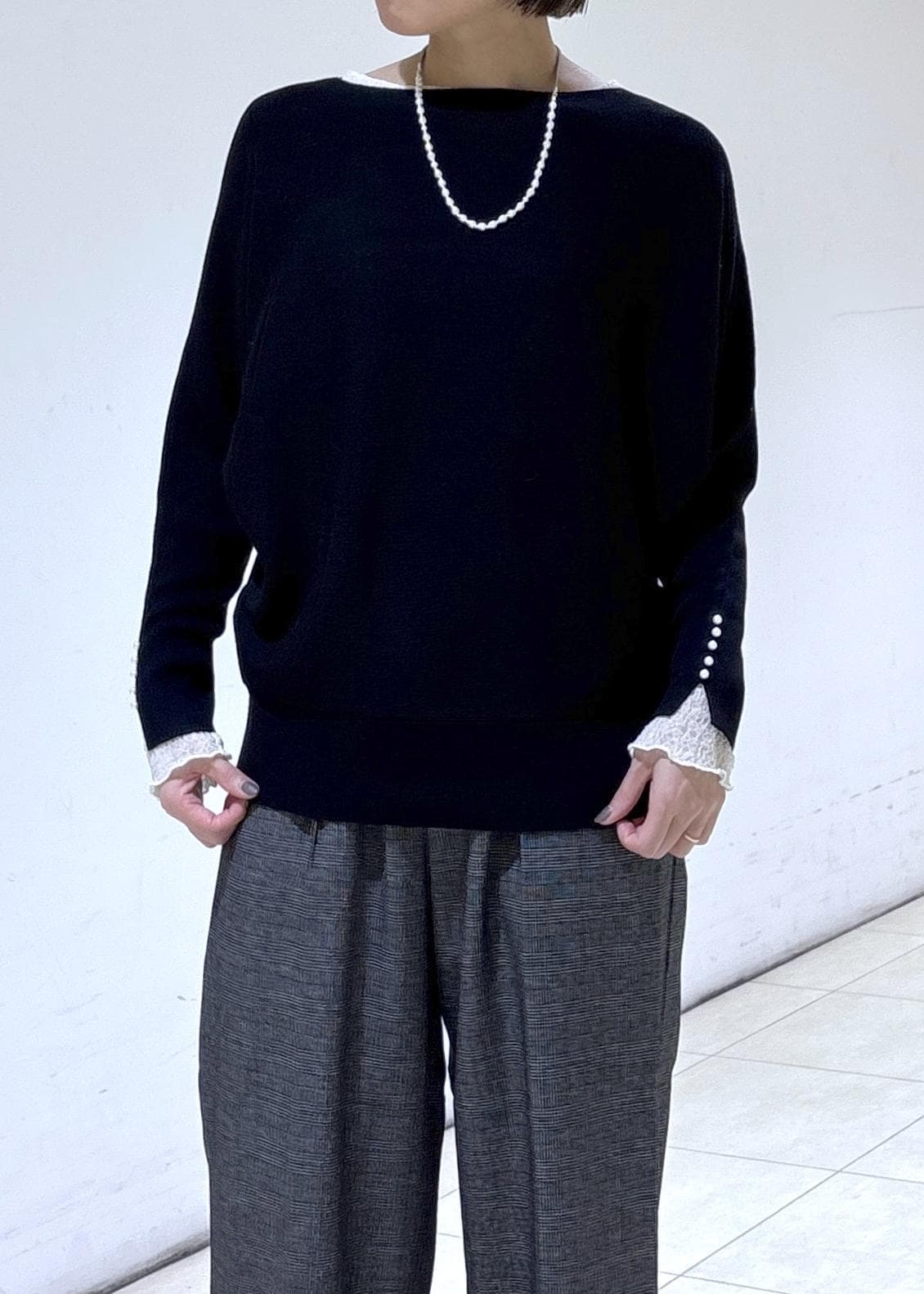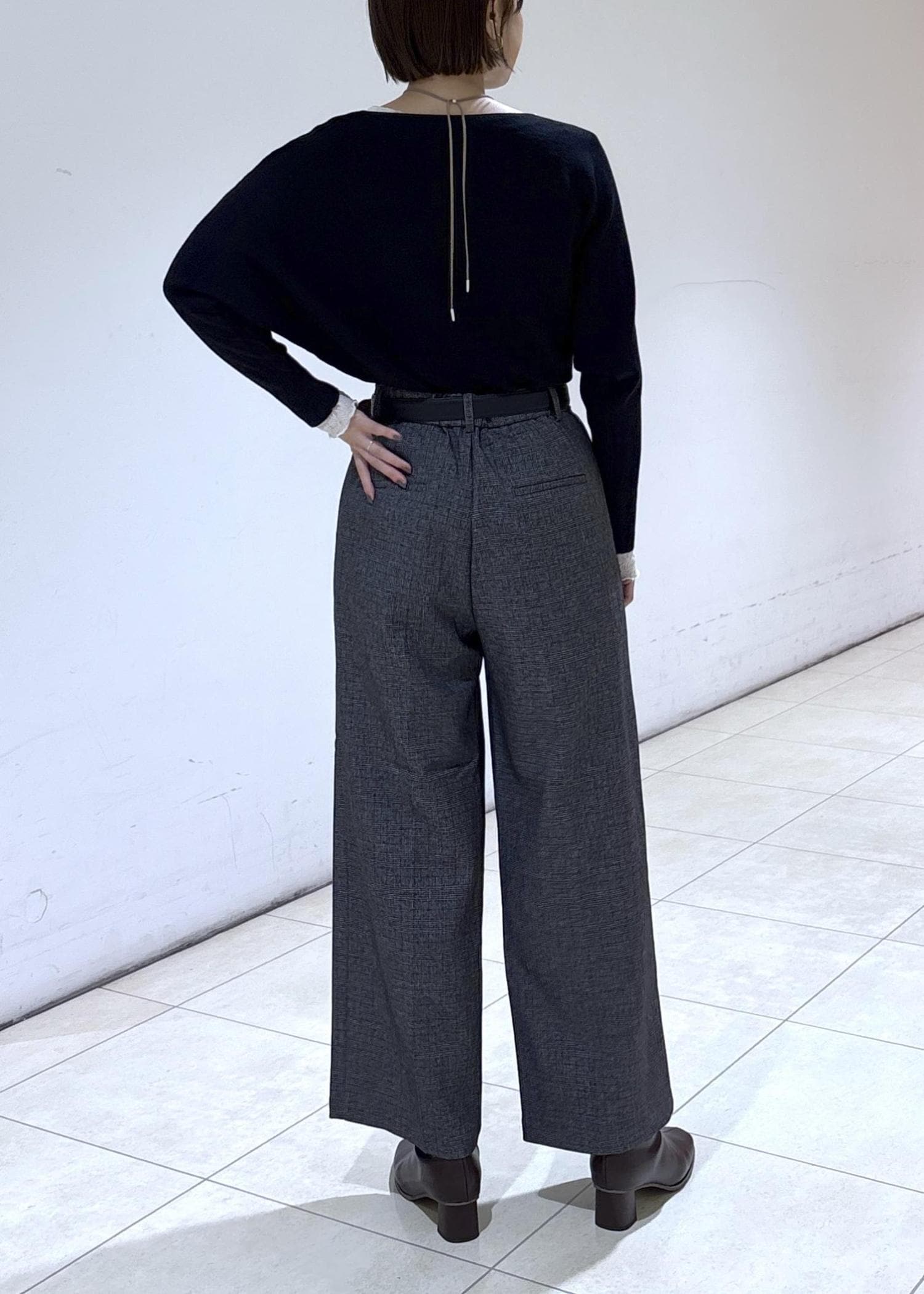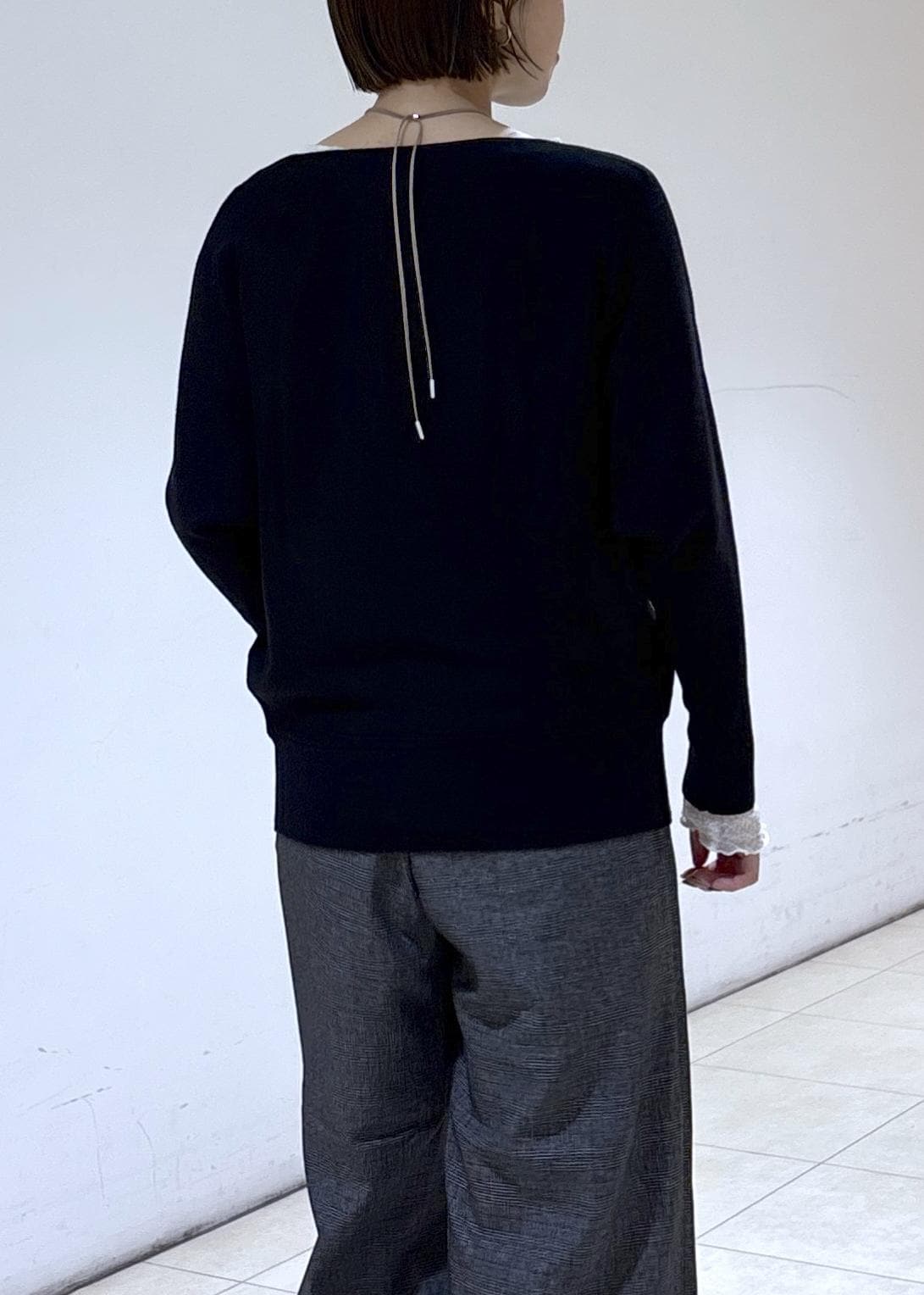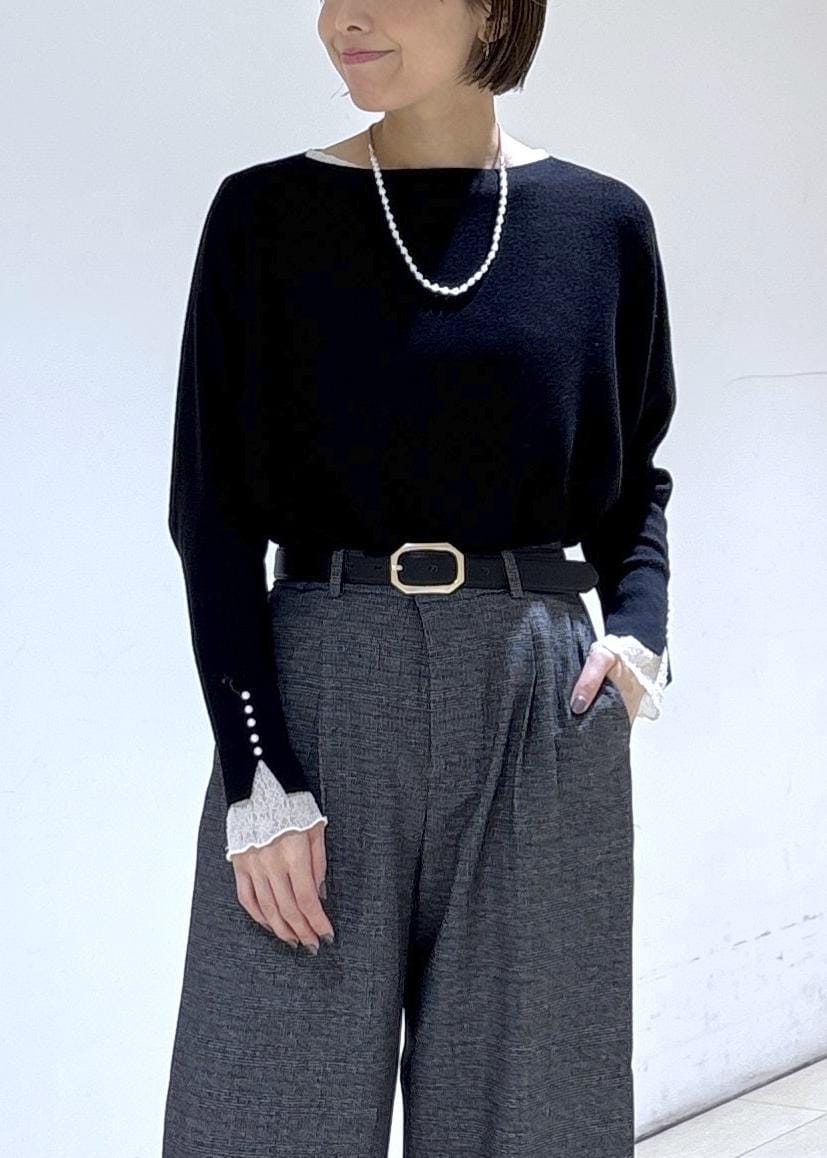 首まわりは鎖骨が隠れるボートネックで華奢見せしてくれます。