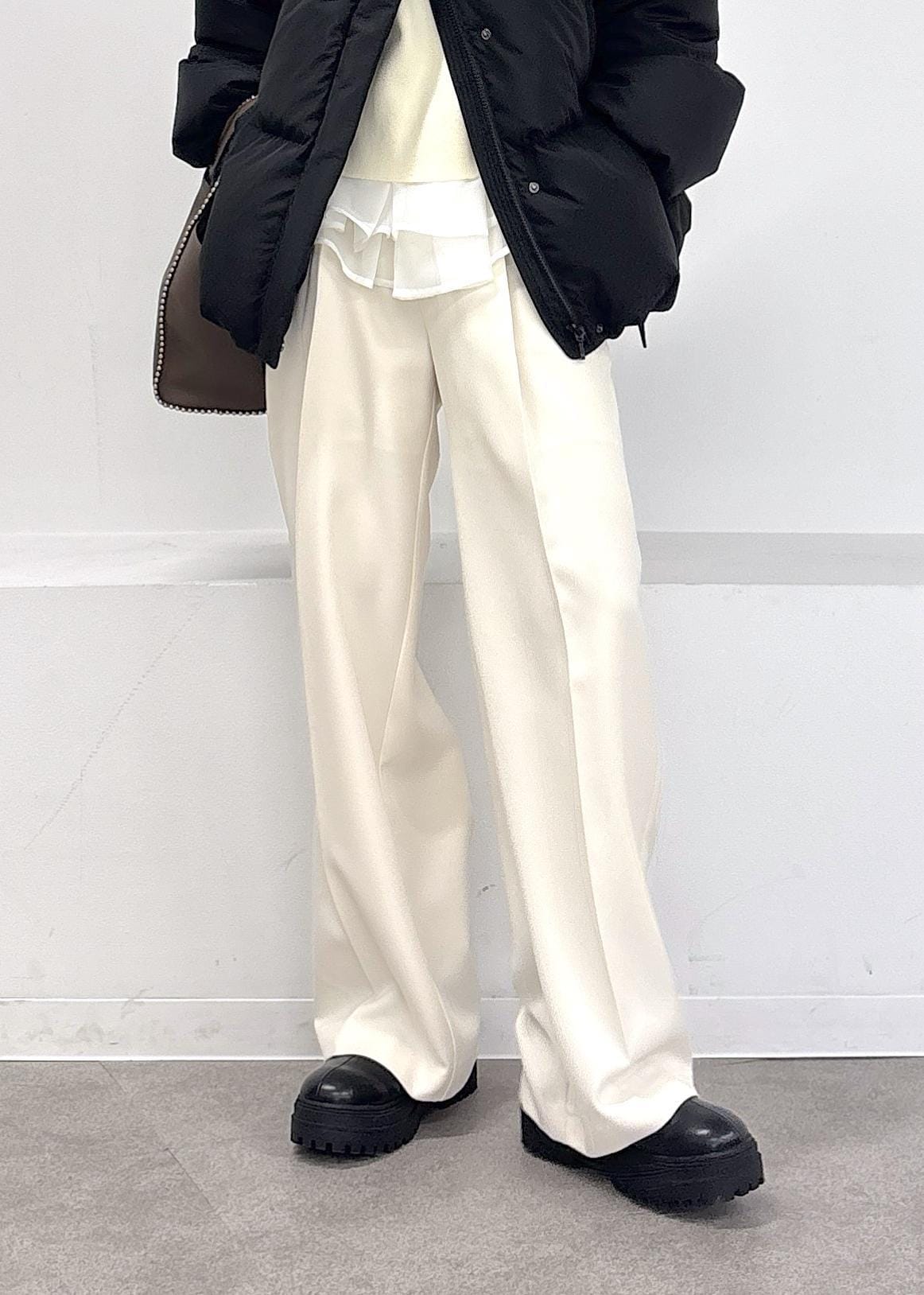 VIS【美easy】ウーリッシュワンタックワイドパンツ【セットアップ対応/洗える】オフホワイト / M¥6,589レビュー大人気の美easyシリーズの秋冬バージョン♪柔らかな素材でセンタープラスがある為、足長効果抜群です。ワンタックは腰が張りすぎない見え方がとても好みで、毎シーズン揃えたくなる。シンプルなデザインなので、オンオフ兼用で着回し力◎サンプルの為154cmでMサイズを着用、かなりゆるっとしたシルエットで長めだったので、普段はSSサイズかSサイズだと引きずらないので選びます。長めに着用を見せるならヒール5cmで床につかない着方ができるので、サイズによって雰囲気が変えられます。