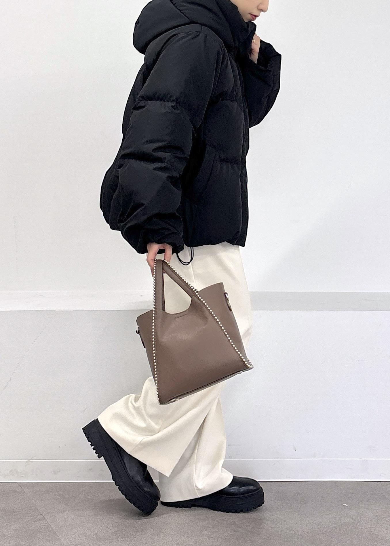 VISボールチェーン2WAYトートバッグブラウン系 / F¥6,919レビュー小ぶりなボールチェーンが目を惹くバック♪持ち手から全体まであしらっているボールチェーンが存在感のあるデザインバックで大人可愛い◎シュリンク調のキズが目立ちにくい高見え素材で使いやすい。ショルダー紐もついているので着回し力◎長財布やポーチの入るサイズ感です。