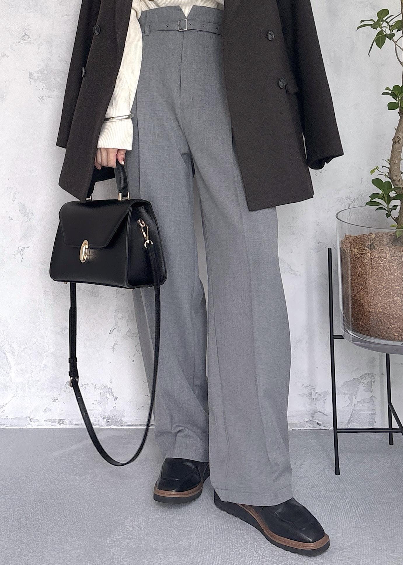 予約VISHot Beautyベルテッドスリムストレートパンツ/イージーケアグレー / S¥6,589レビューシルエットがスッキリとした印象のストレートパンツ♪裏起毛になっているので、秋冬も暖かくハマってしまう着心地です◎厚みはそこまで強くないのでお仕事スタイルとしてもキレイに見えてオススメ。ワンタックとベルト付きのスタイルupが叶う優秀パンツ◎154cmSサイズ着用、全体的に程よくゆとりがあり、着丈は足首が隠れるくらいの長さ、引きずらなくて嬉しい♪