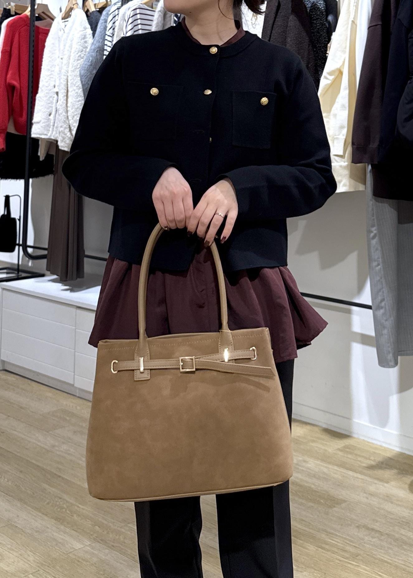 ROPÉ PICNIC PASSAGEベルトデザインクラシックトートバッグキャメル / F¥4,612レビュー25・28番色はスエード調素材がトレンド感のあるミルドルサイズのトートバッグです。
