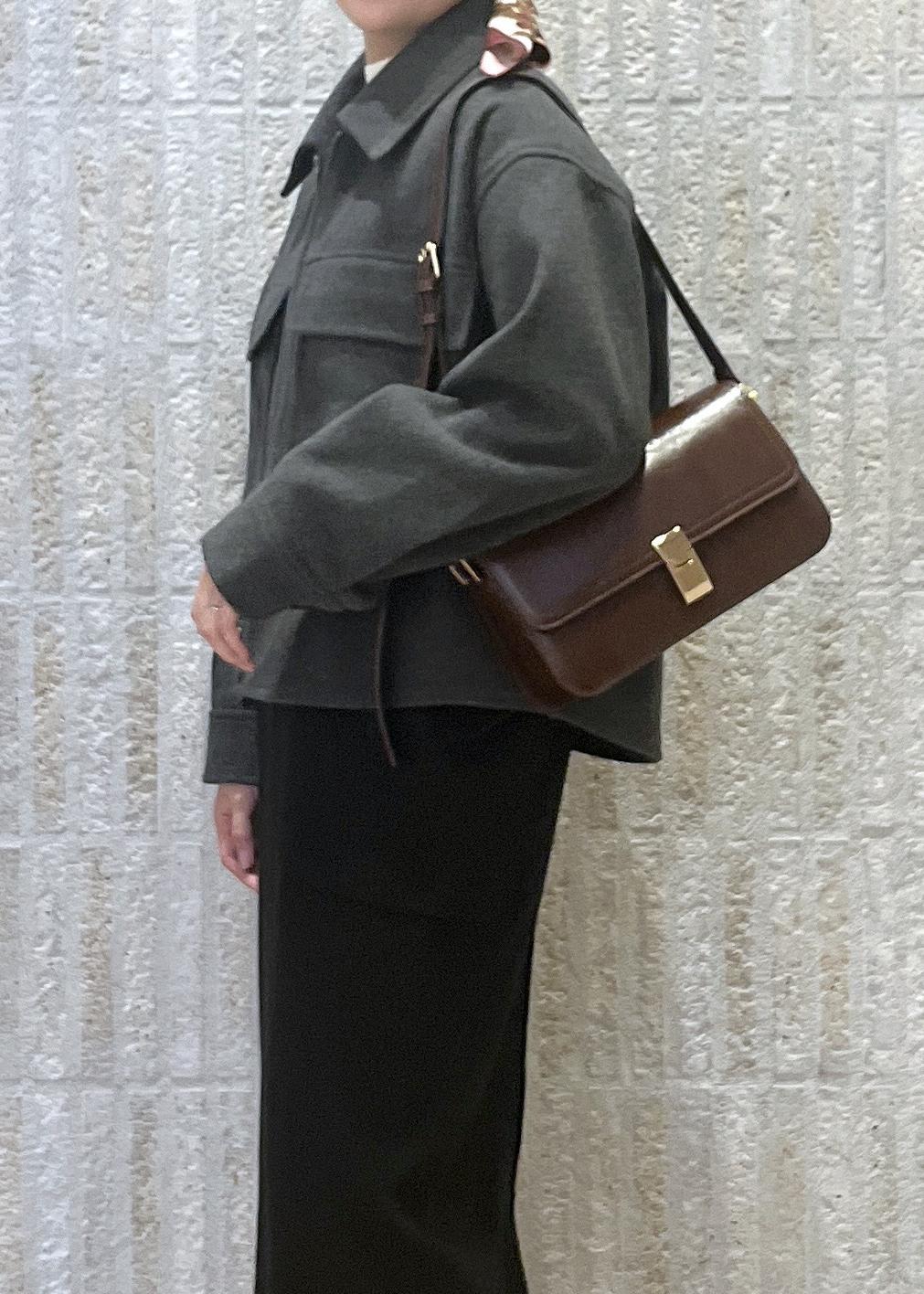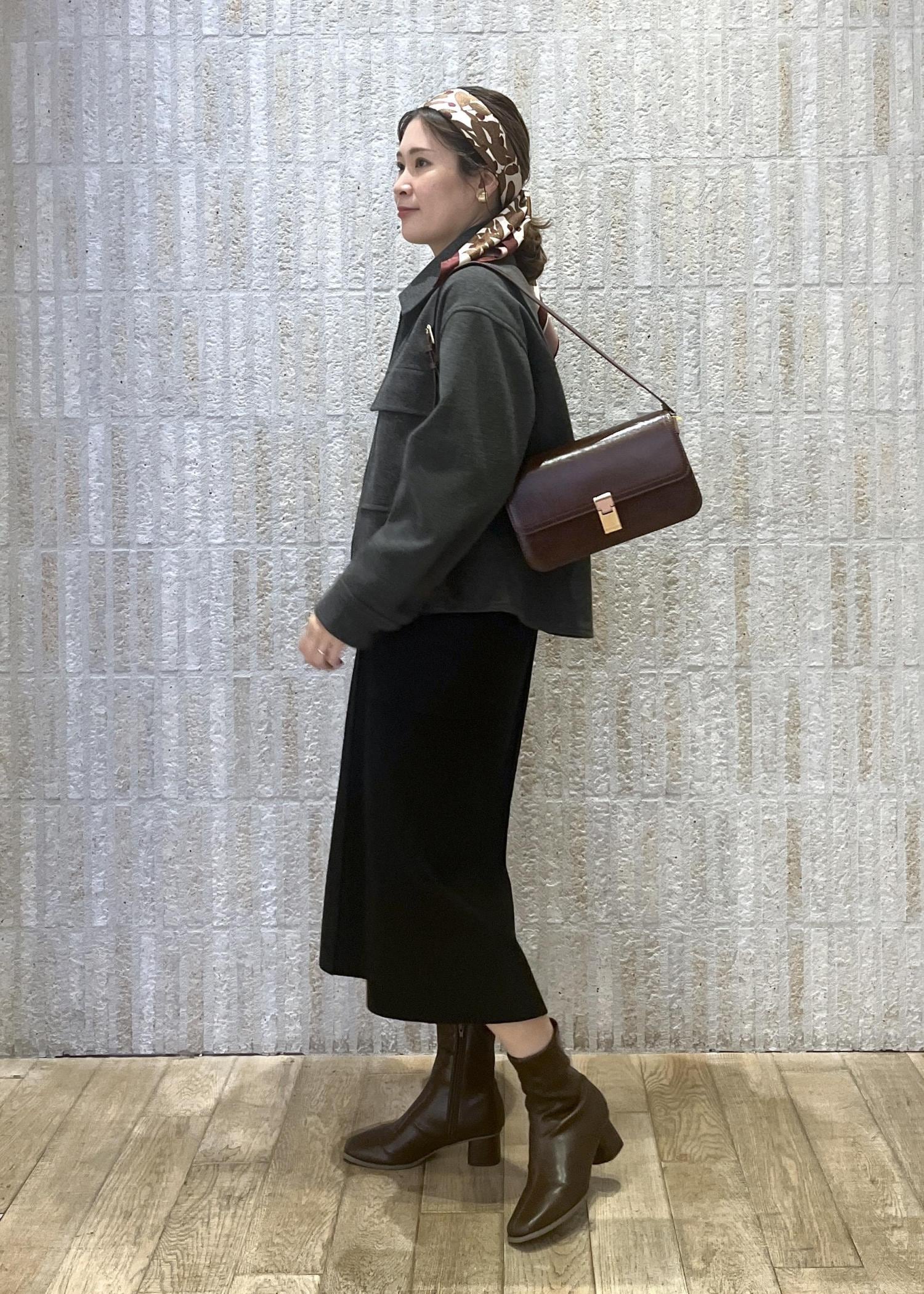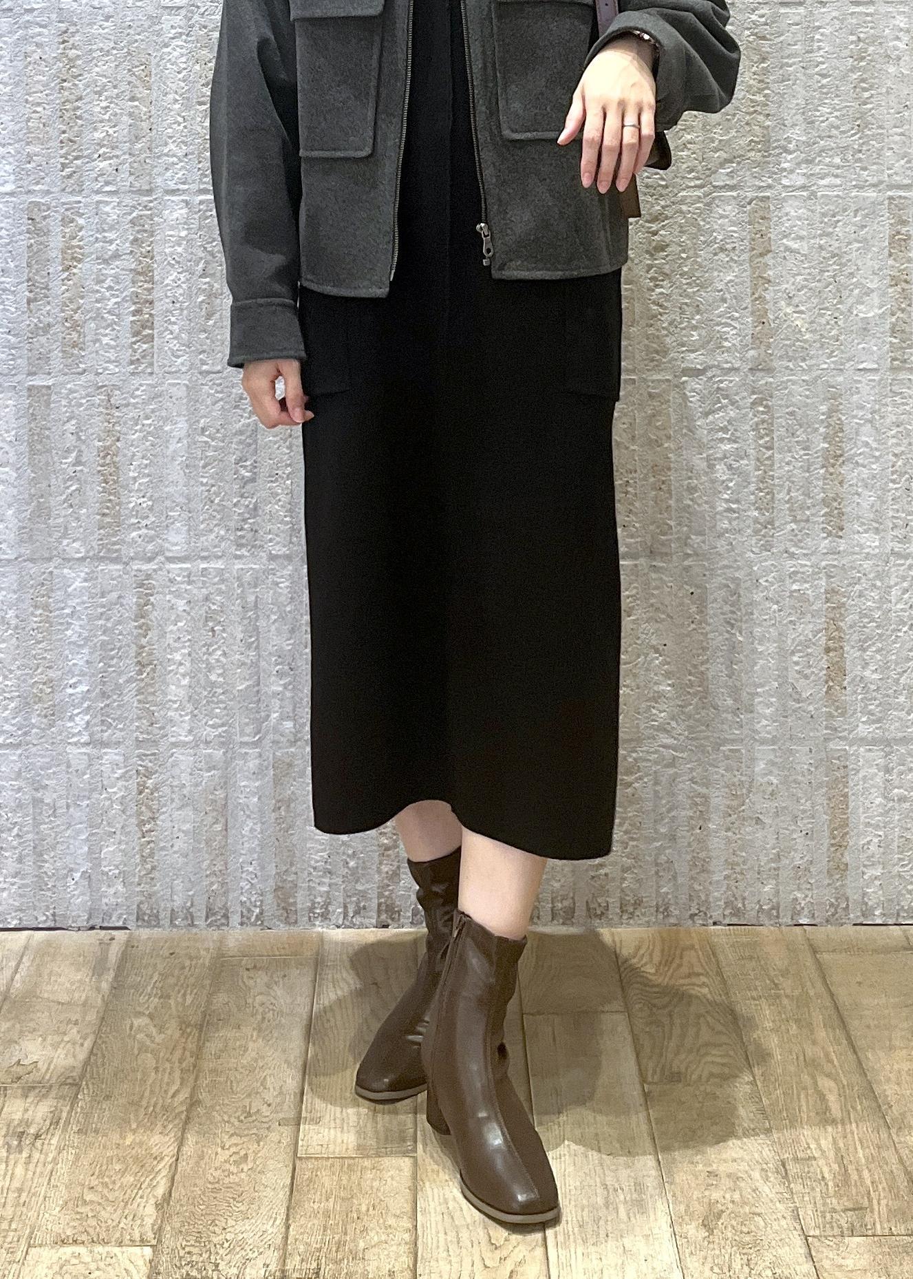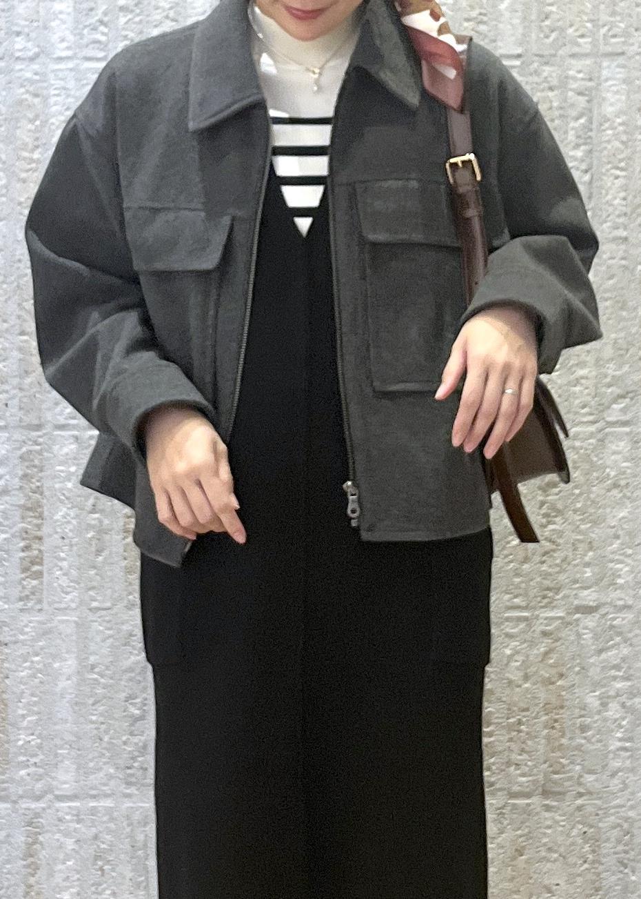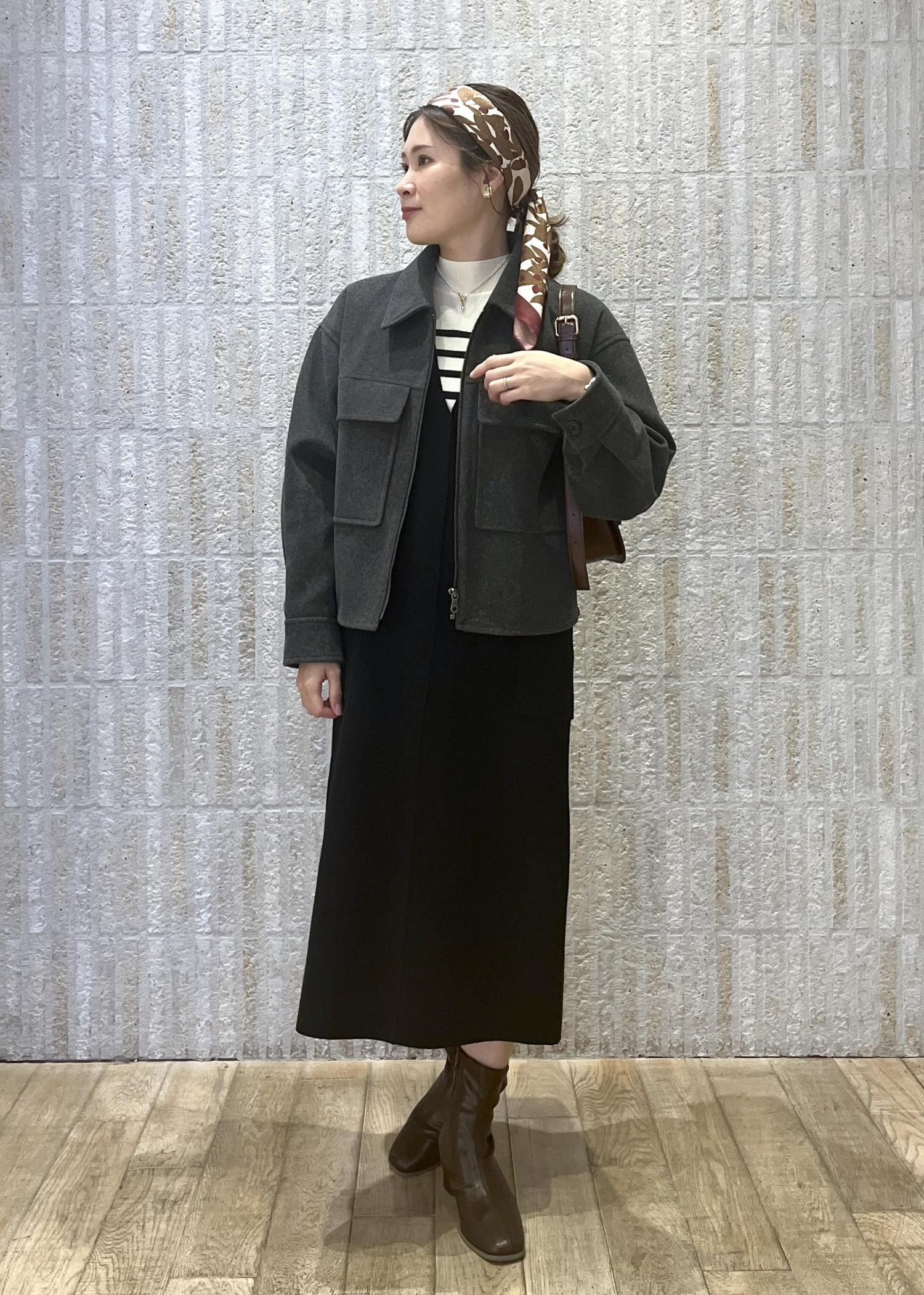 大きめポッケのデザインが一見カジュアルな印象ですが、女性らしいワンピースと合わせるスタイルも大人カジュアルな雰囲気が出てオススメです♩