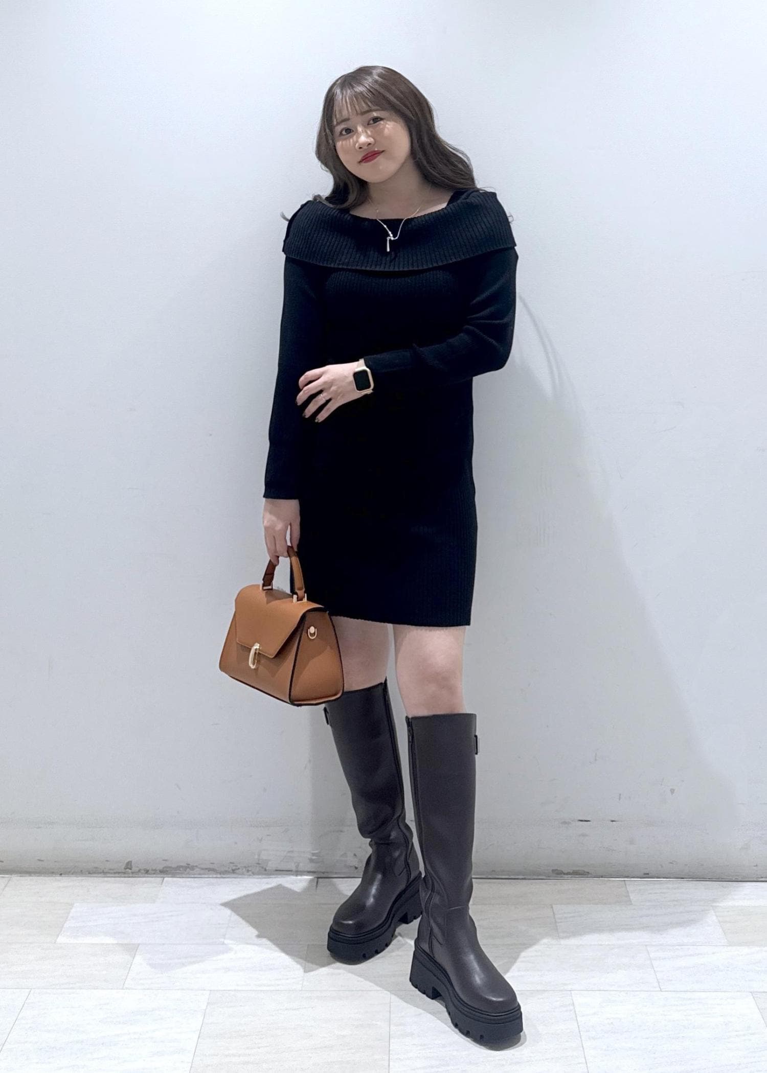 VISアシメオフショルリブニット美シルエットワンピース/着丈が選べるブラック / FS¥7,119レビュー身長157cmでFSサイズですと膝より少し上辺りの着丈。