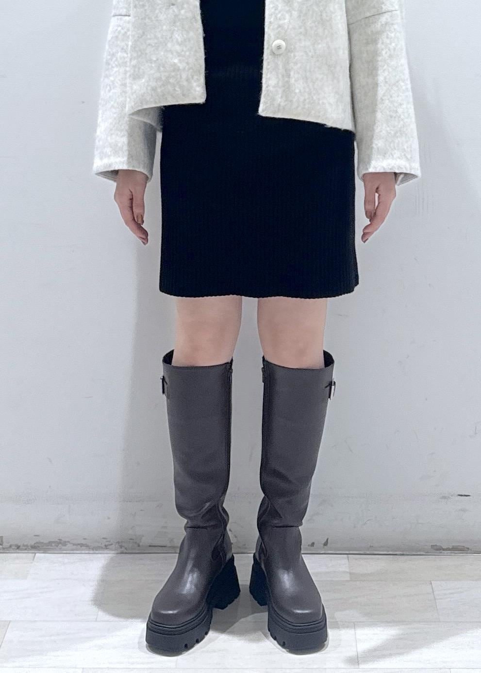 VISサイドバックルタンクソールロングブーツダークブラウン / L¥10,989レビュー普段24.0cmの横幅広めの私ですが、こちらのロングブーツはMサイズだと入りますが横幅がキツかったです。タイツだけ履くとサラッと装着していただけますが、靴下を履くと圧迫感があるように思えました。Lサイズにすると、キツさも感じられずジャストサイズだったので履きやすかったです。VISのロングブーツはクッション性も効いてて、厚底タイプだけどそこまでブーツ自体に重さを感じられなかったので脚が疲れることもありませんでした。サイドのベルトの部分で脹脛部分のサイズが調節出来るのも嬉しかったです!