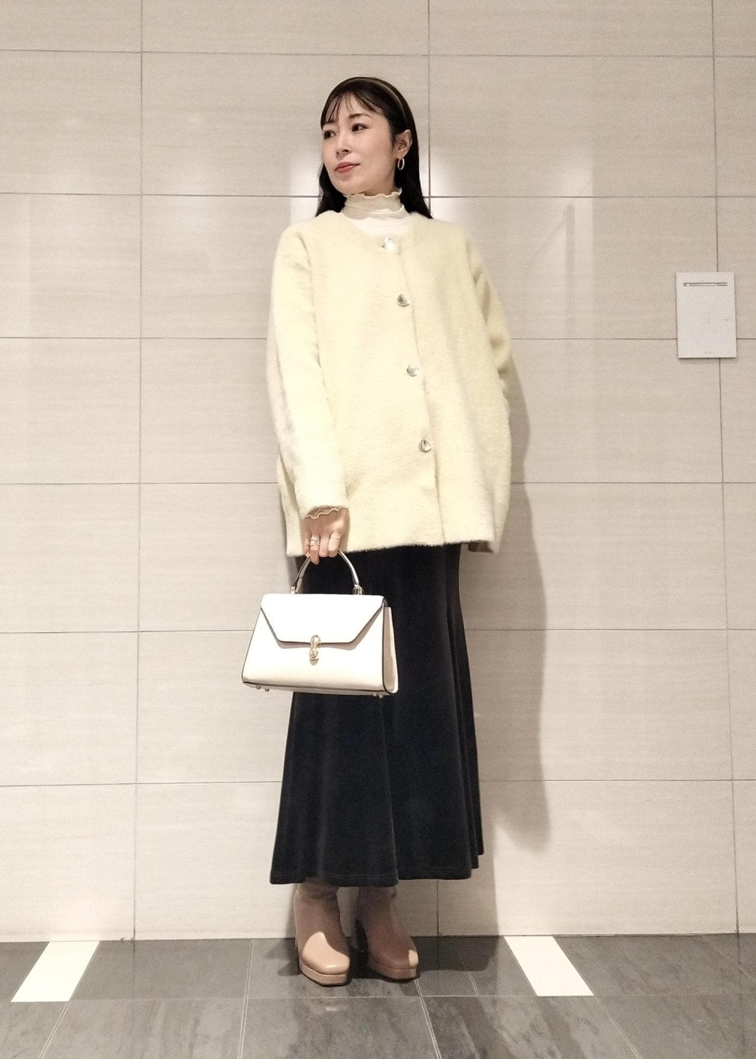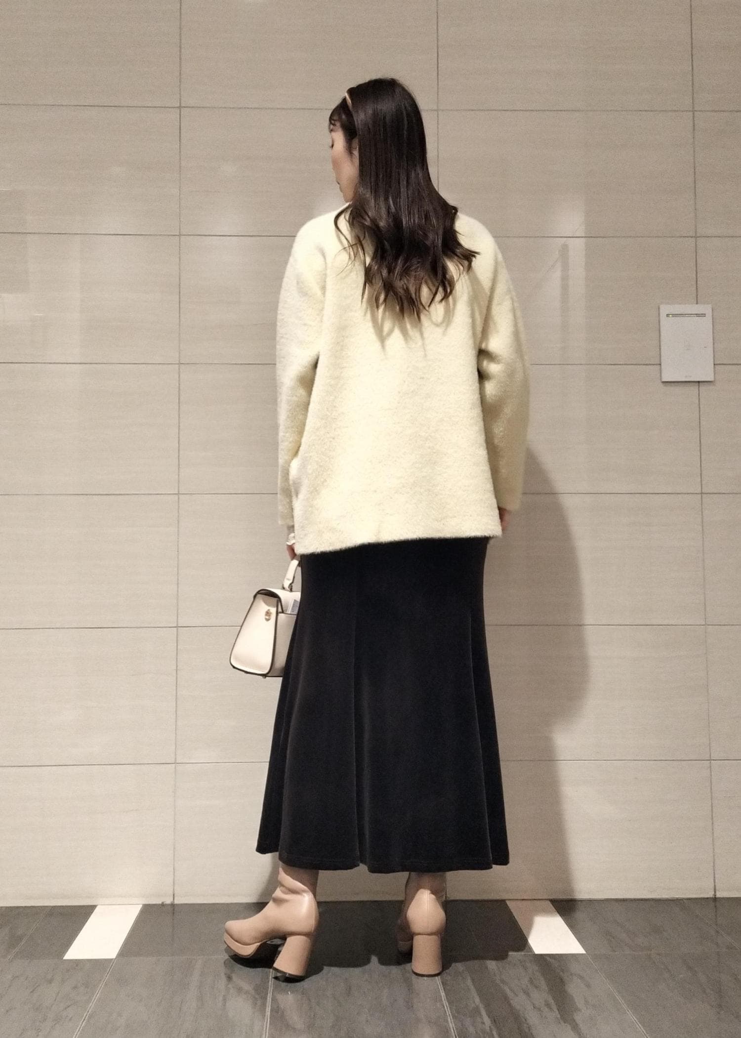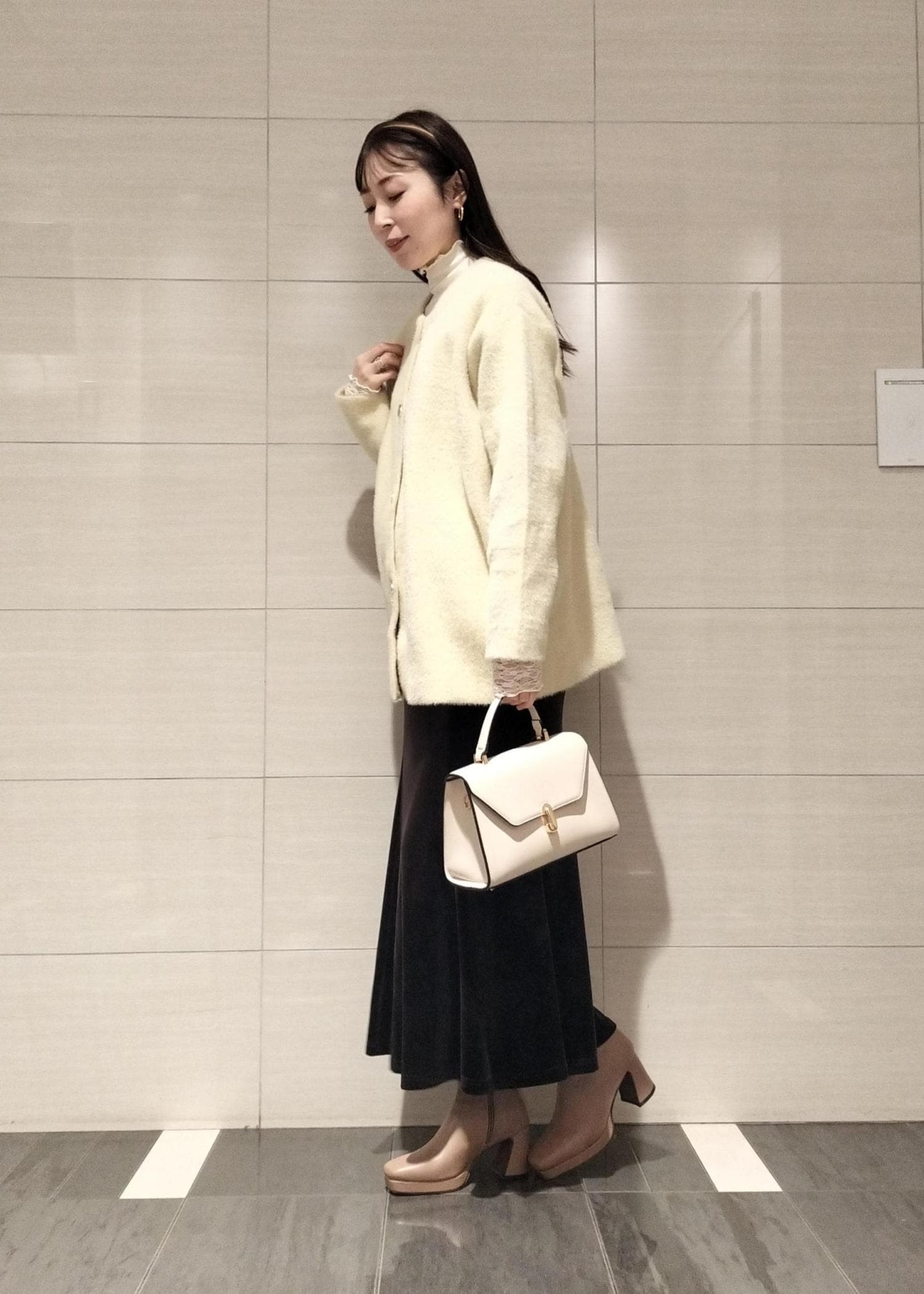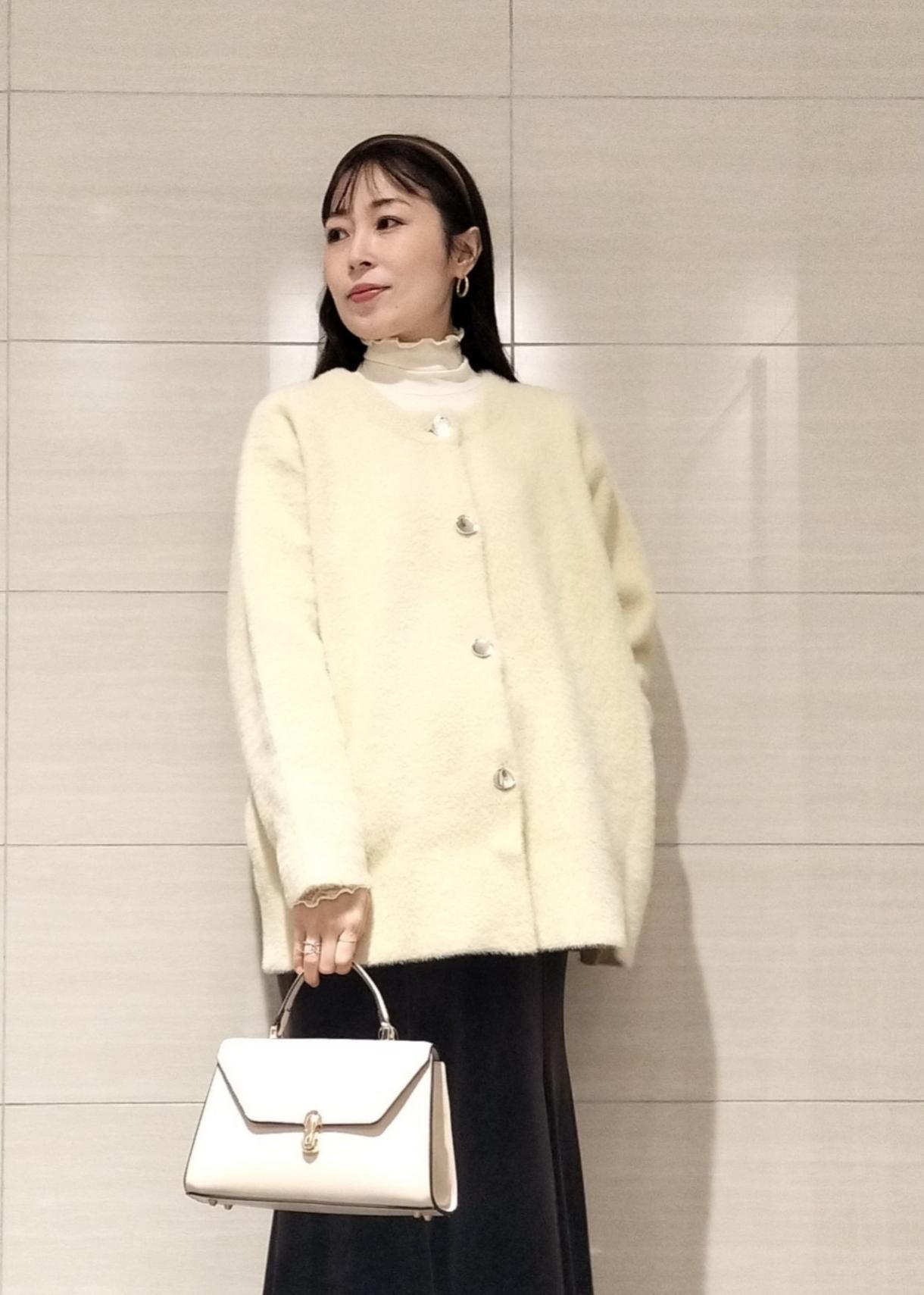 VIS接結メタルボタンミニフェザーニットコートイエロー / F¥9,999レビューふわふわ素材が冬らしいカーディガン♪羽織るだけで一気に季節感も出てオシャレにみせてくれます!