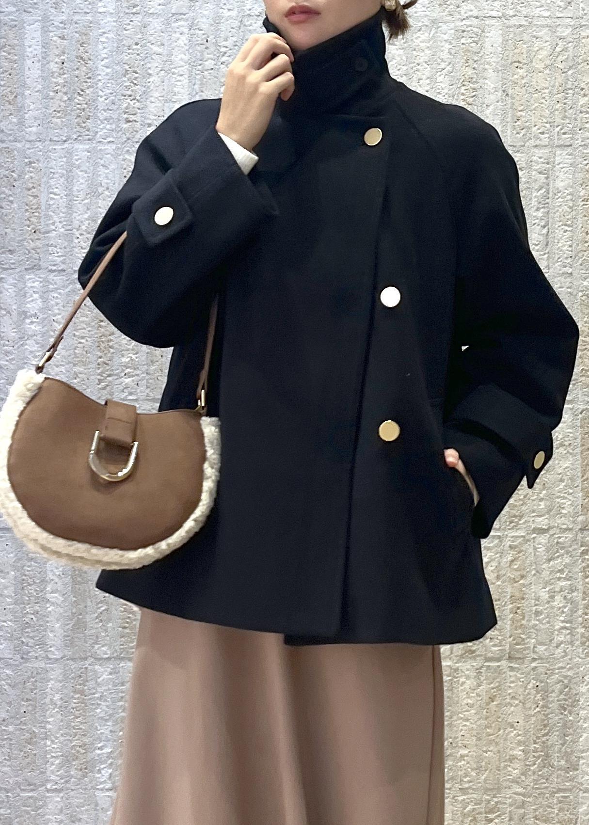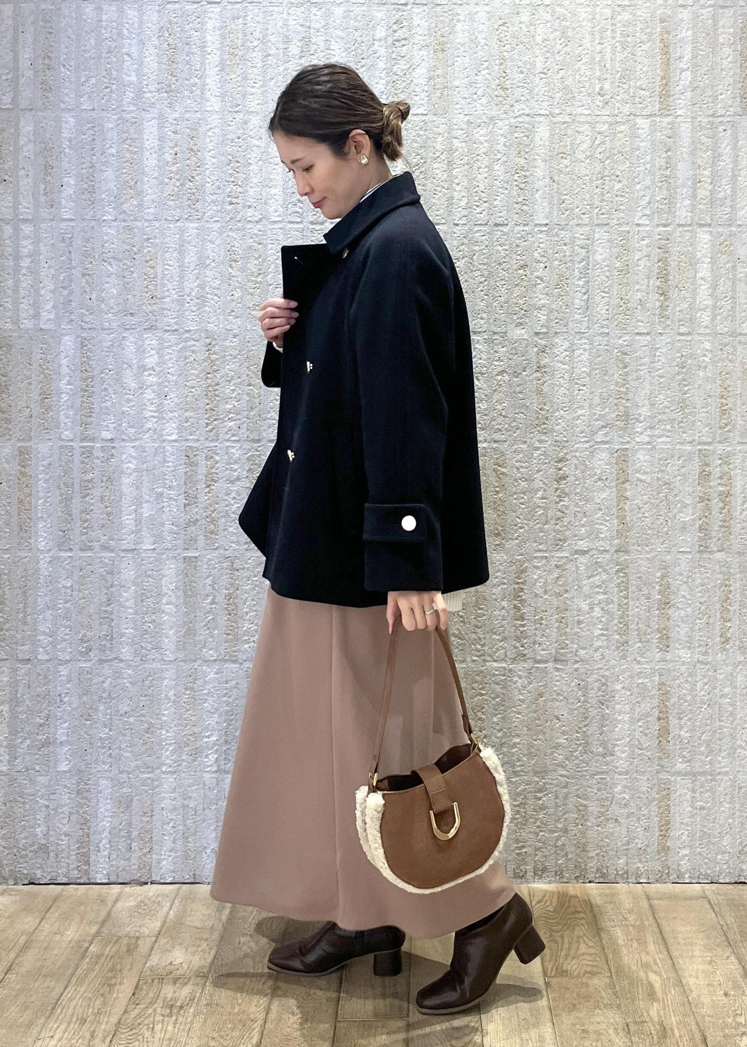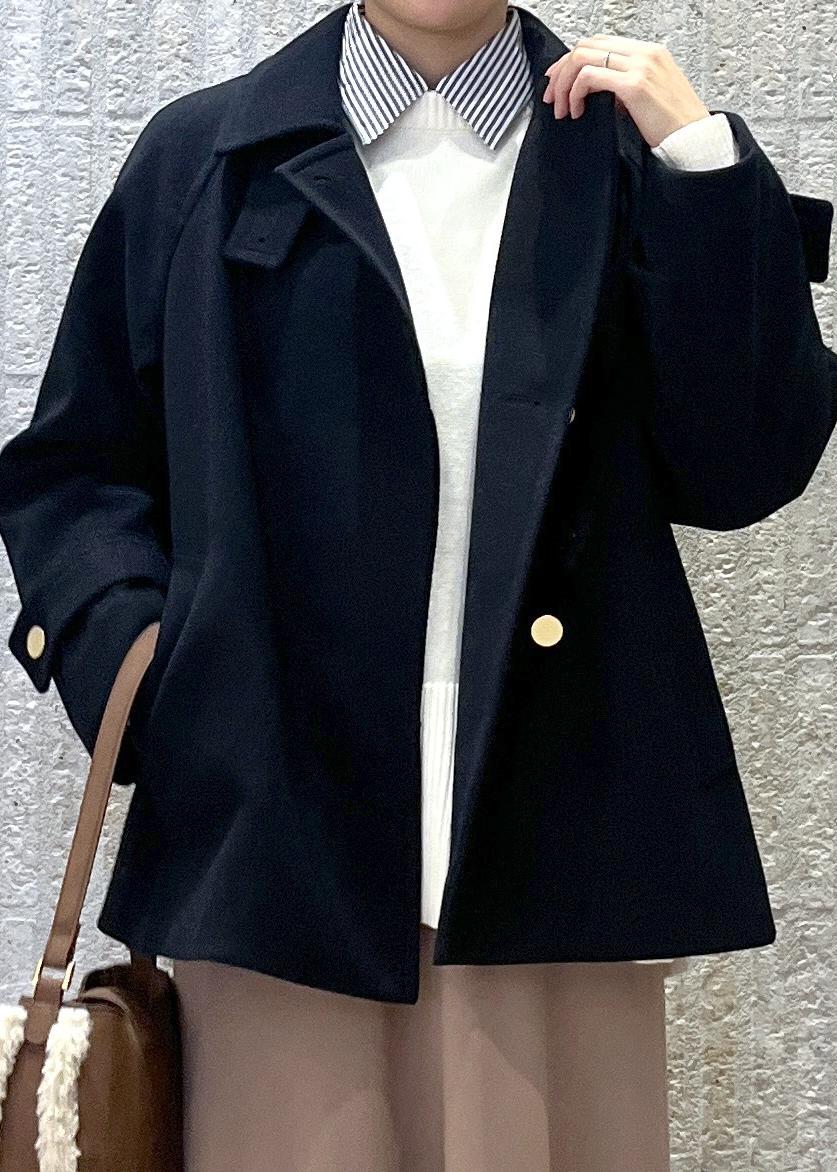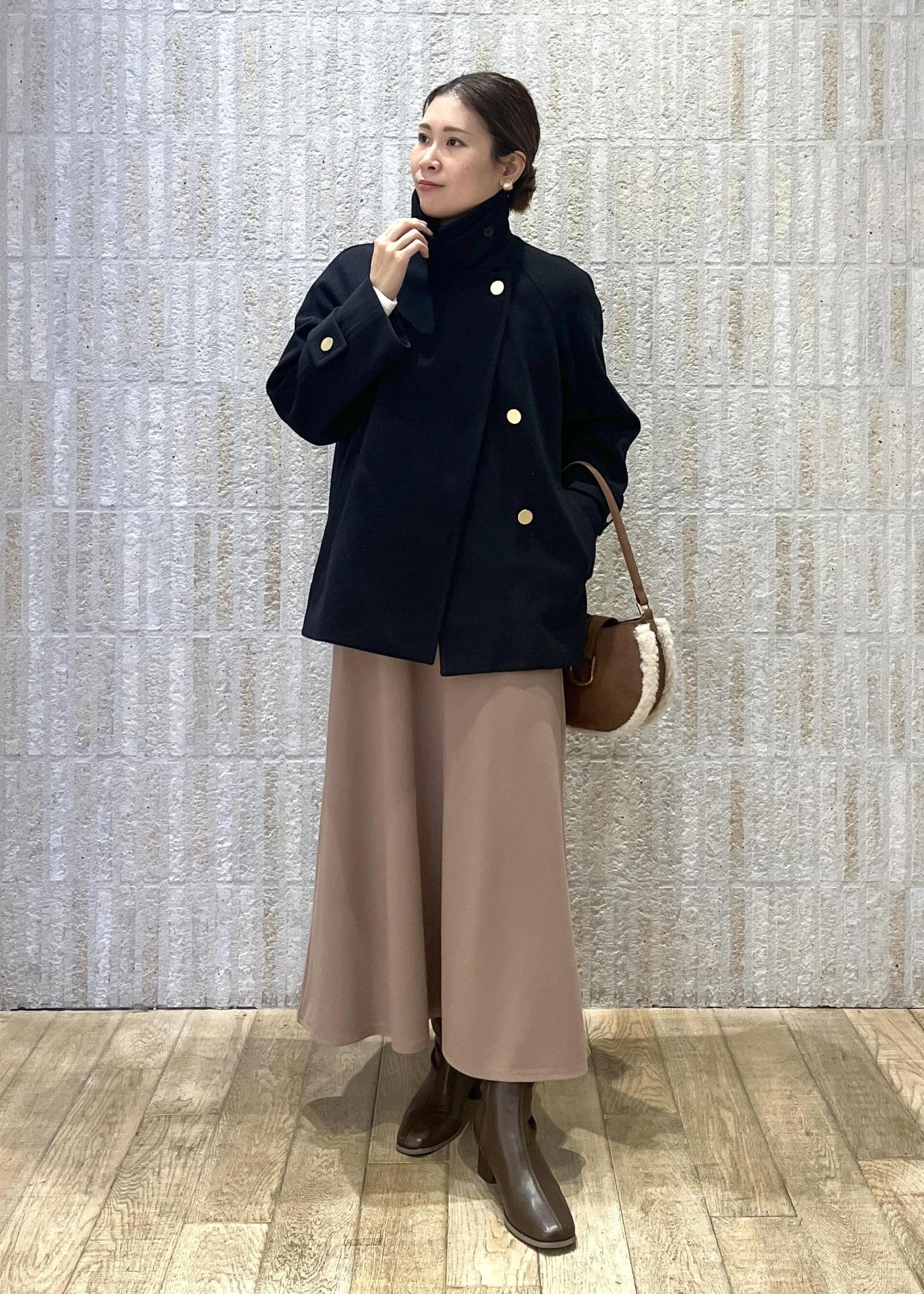 ROPÉ PICNICジャージーメルトンシリーズ 金ボタンミドル丈コート/リンクコーデネイビー / F¥7,692レビュースタンドカラーにもなるPコート。
