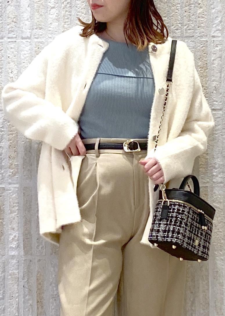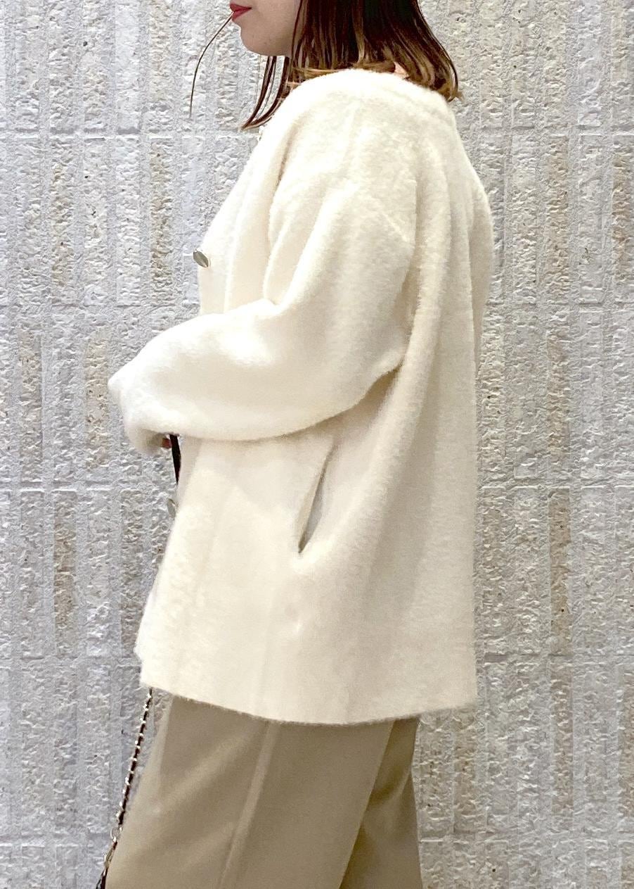 VIS接結メタルボタンミニフェザーニットコートオフホワイト / F¥7,999レビュー去年も人気だったファーカーデが今年も入荷してます!