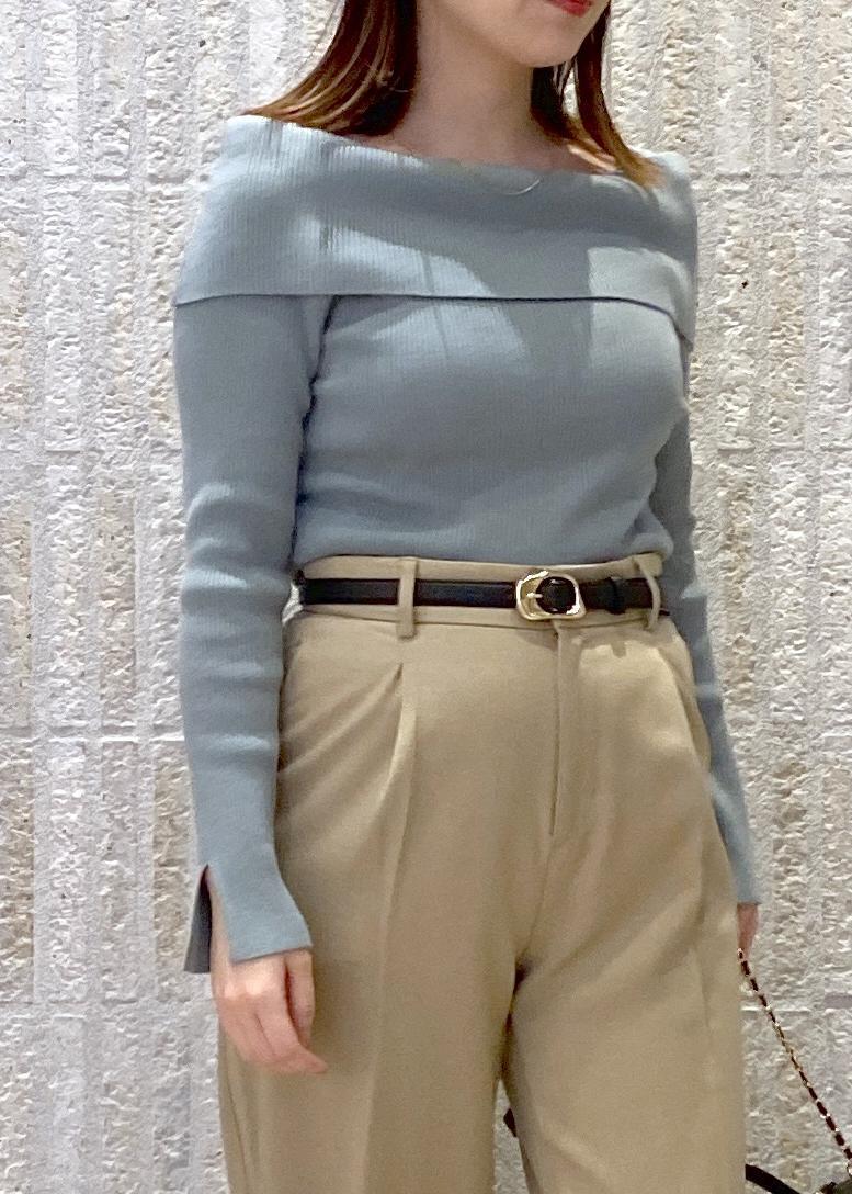 NEW!VIS【美得】オフショルダーモチモチリブニット/好評につき再入荷グリーン系 / F¥5,489レビュー柔らかいニットなので、肌が弱い私でも