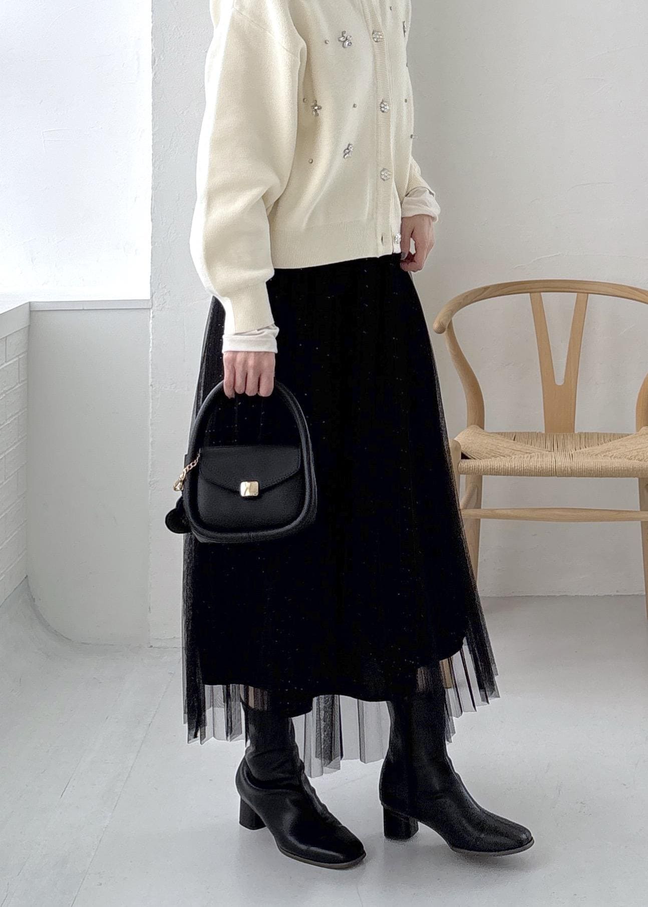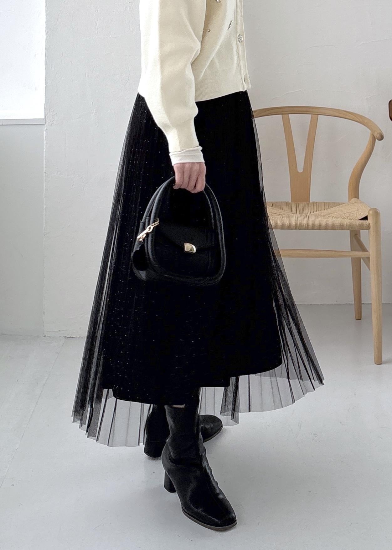 ROPÉ PICNICキラキラチュールプリーツスカート/着丈が選べるブラック / MT¥6,490レビューふわっと軽くて柔らかな着心地でした。プリーツ加工されているので広がり感を抑えられて履くことができました。裏地付きで透ける心配がなかったです。