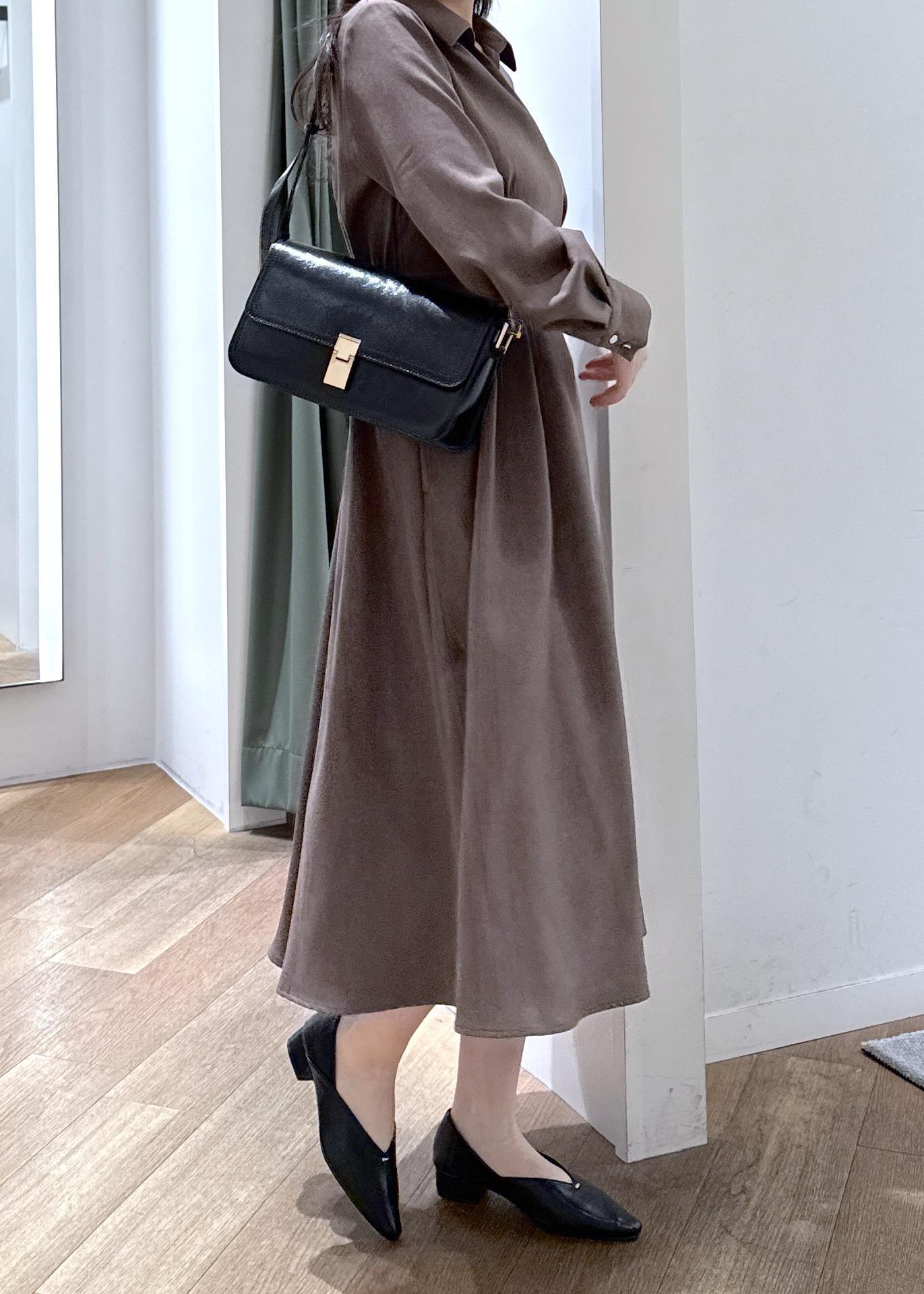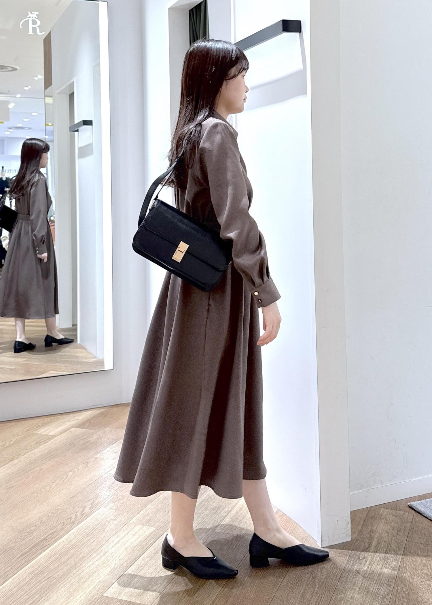 キレイめな雰囲気のワンピースを主役に大人らしいシンプルなコーディネートを組みました。
