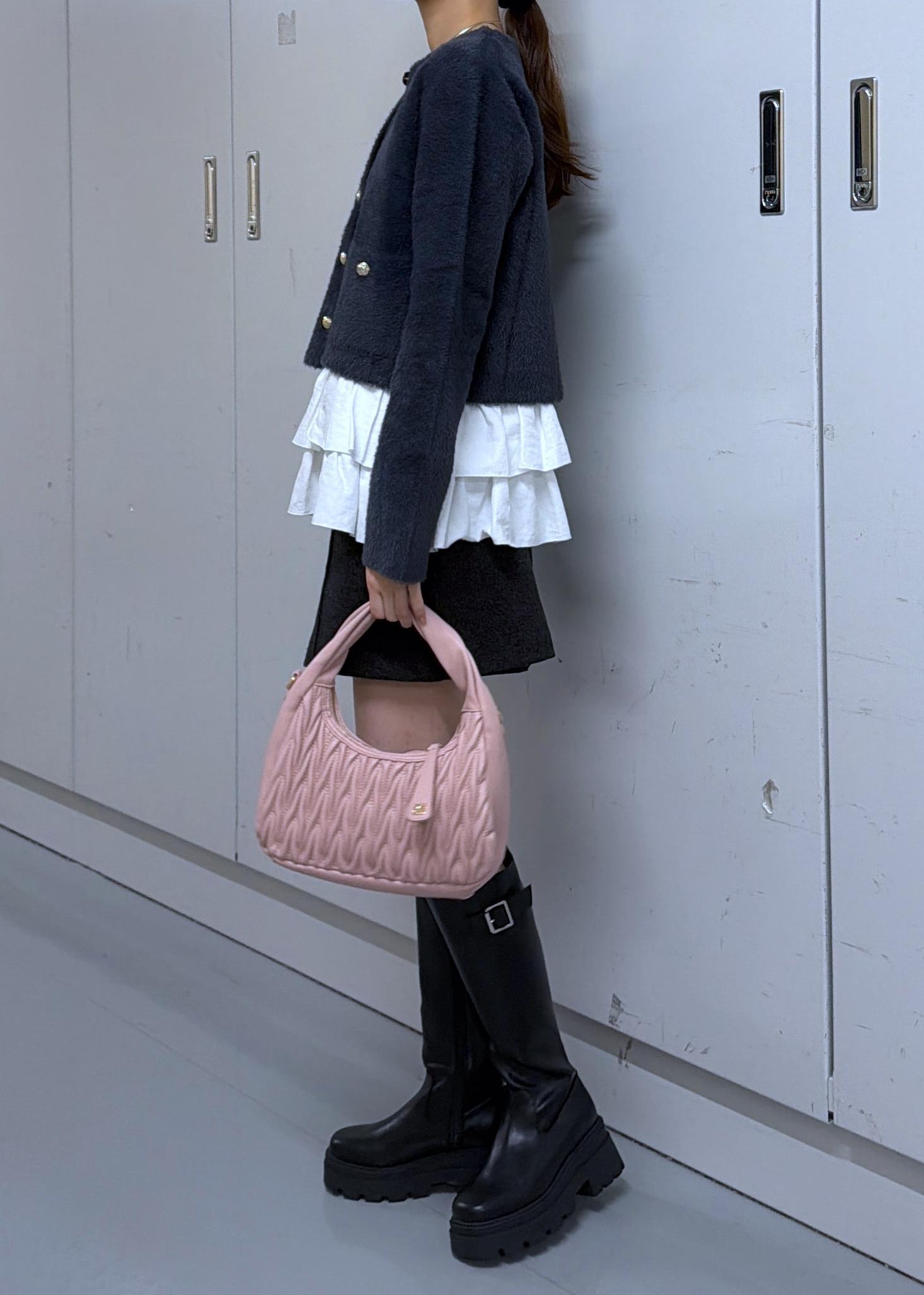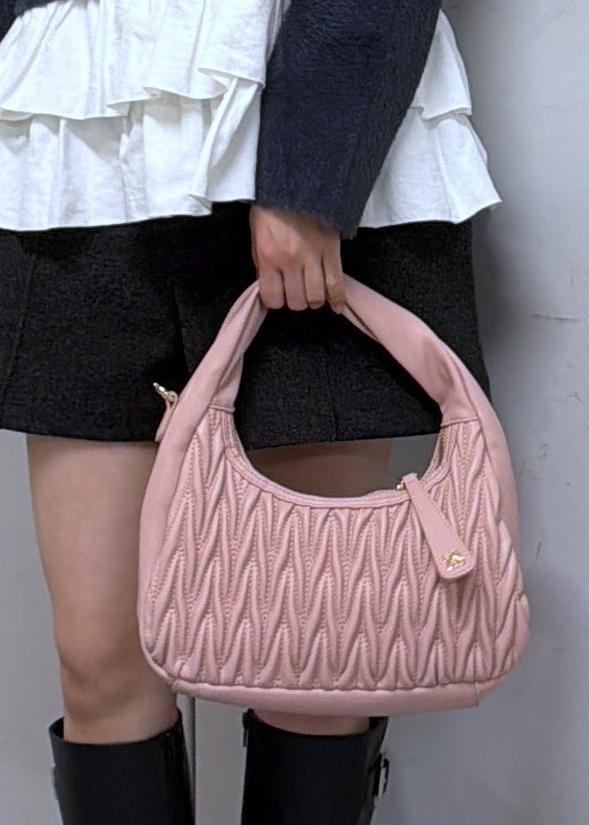 VIS【2WAY】ねじりハンドルキルティングバッグピンク系 / F¥6,327レビュー高級感のあるデザインになっており高見えするバッグとなっています。ショルダーも付いているので気分に合わせてできるのでおすすめです。