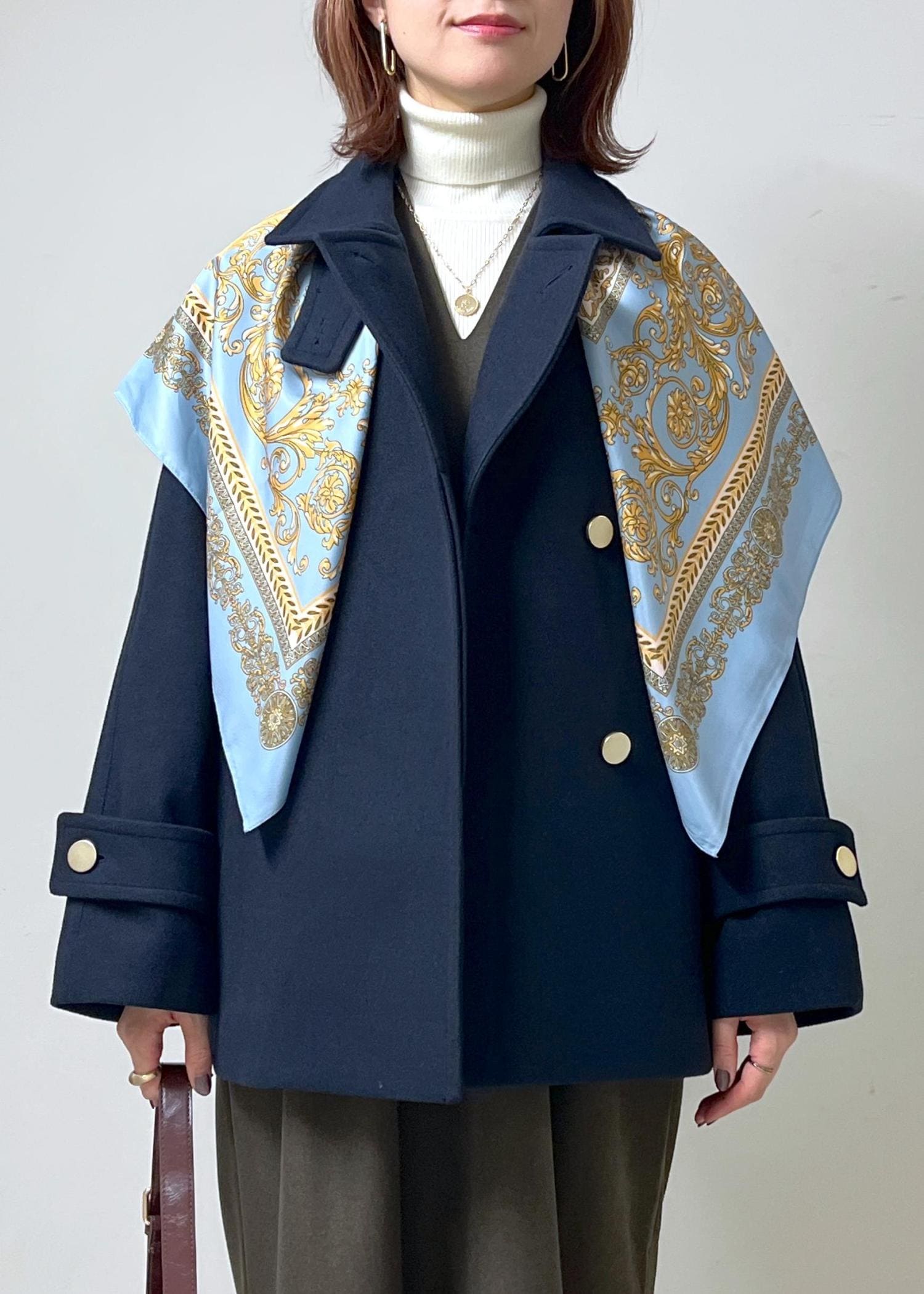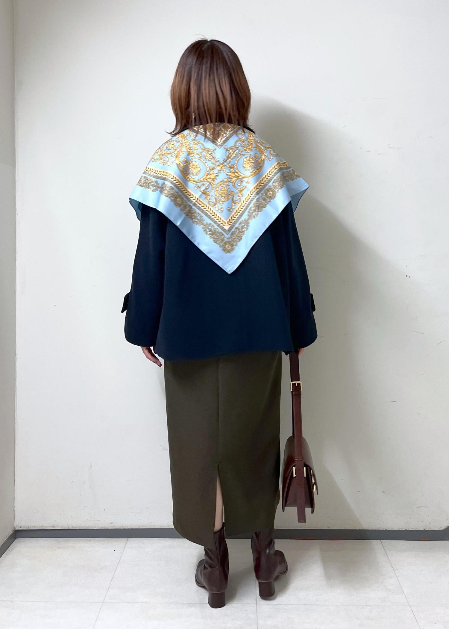 バロック柄のスカーフを主役にした、クラシカルコーデです♪