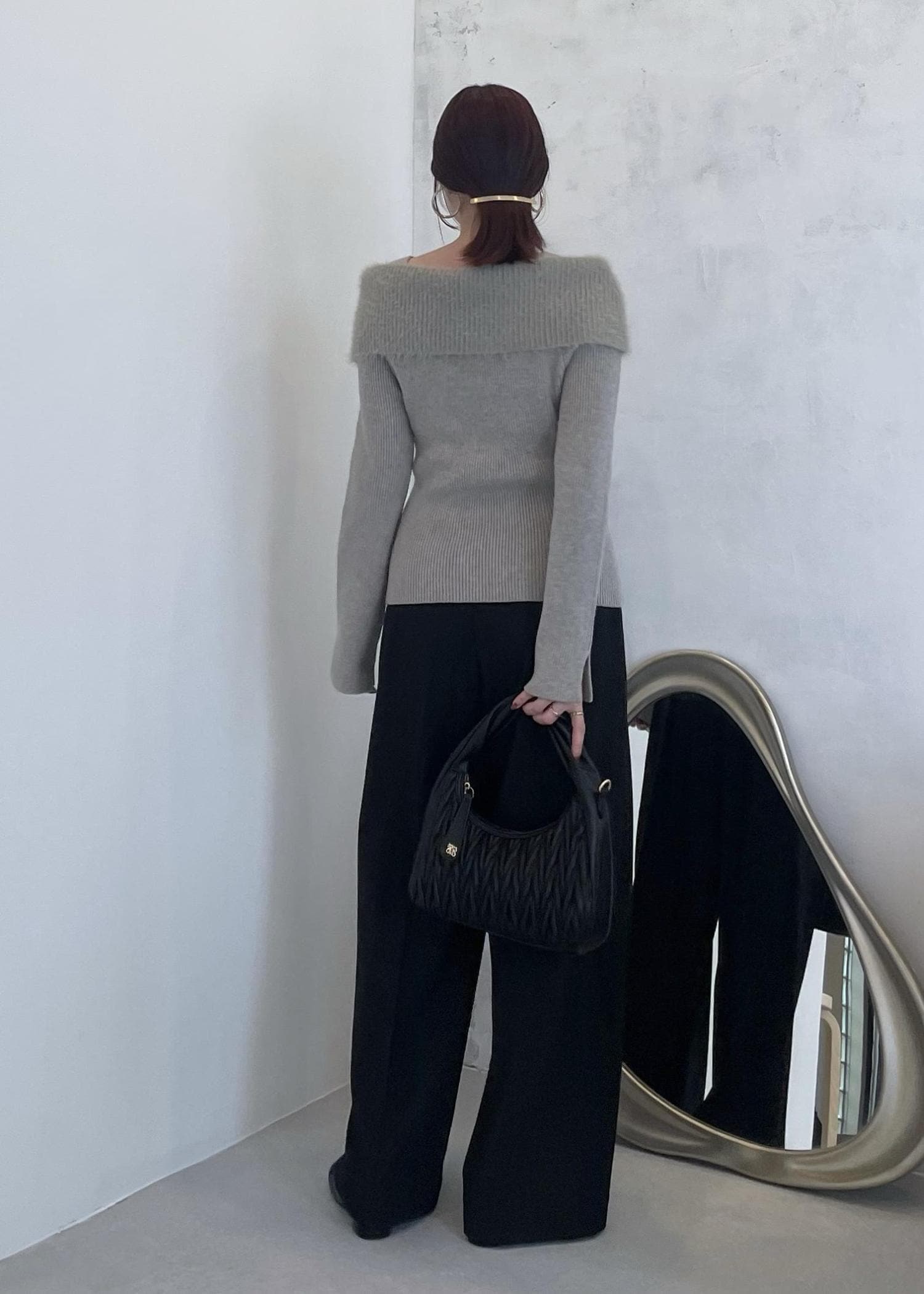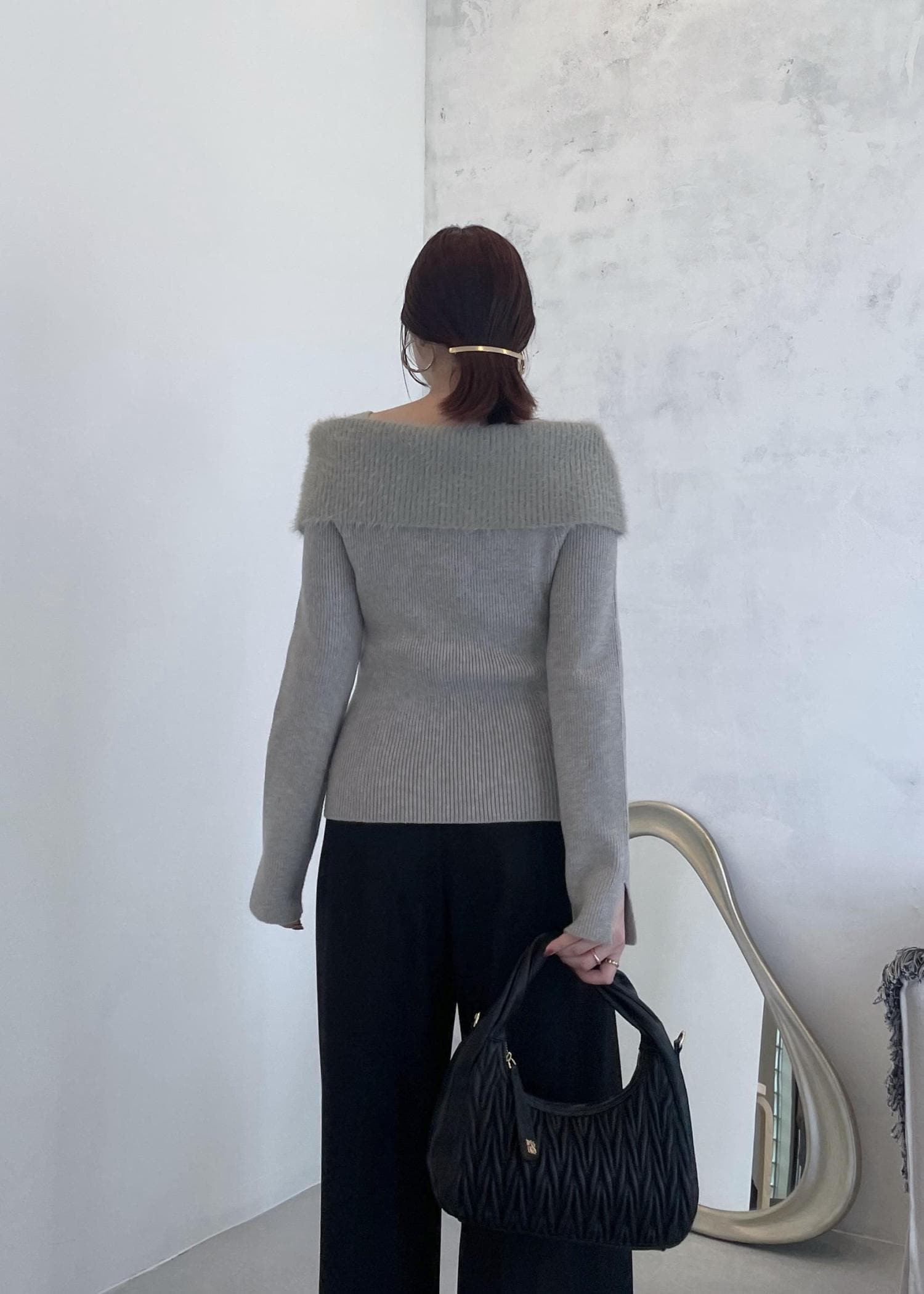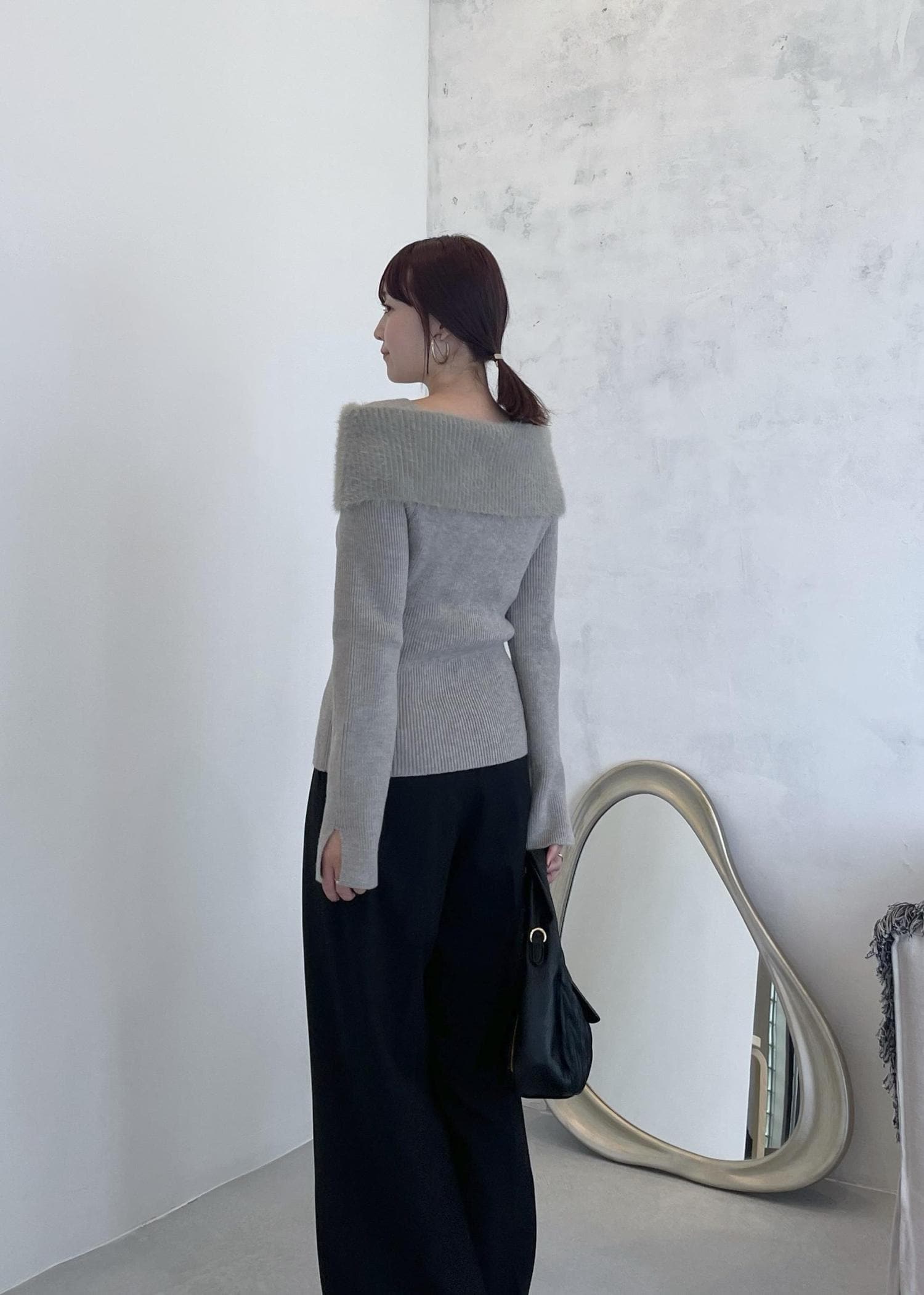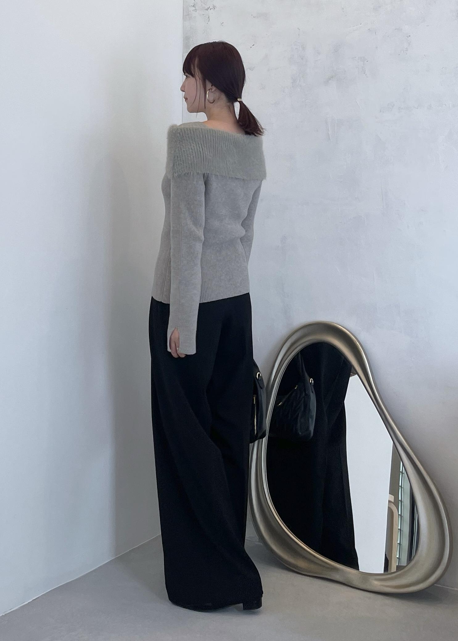 VISフェザーヤーンオフショルもちもちリブニット/イージーケアライトグレー / F¥5,929レビュー1枚で大人可愛いオフショルニット♡程よいボリューム感のフェザーヤーン、華やかさと上品さをプラスしてくれます!程よいフィット感はありますが、ボディラインを拾いすぎないです。首元はデコルテが覗くので華奢見え+ヘルシーな女性らしさも◎