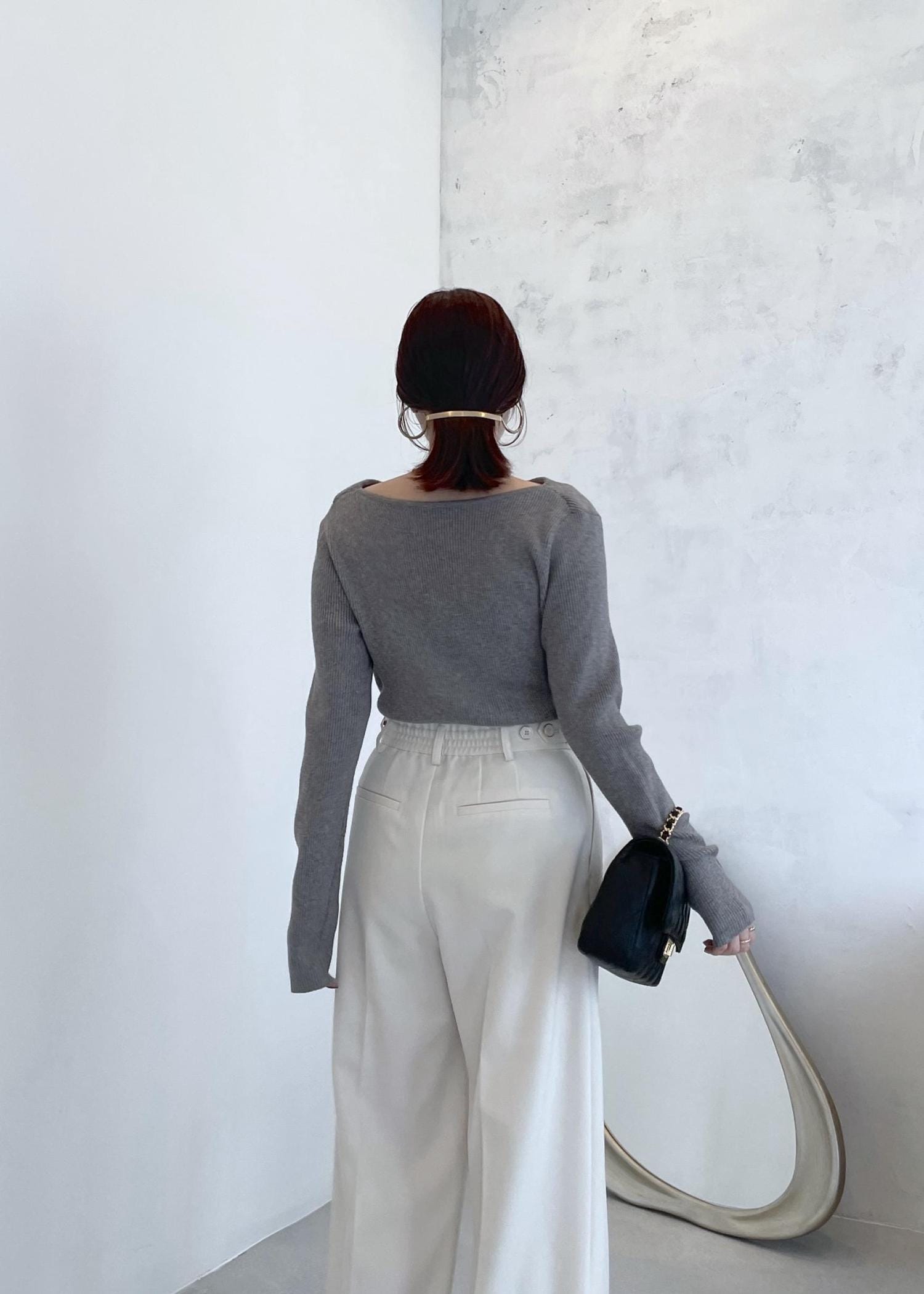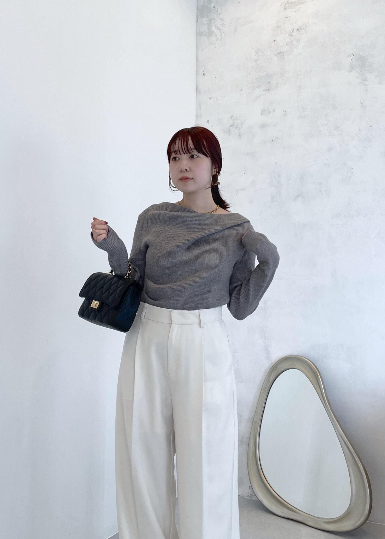 VISもちもちドレープリブニットトップス/イージーケアグレー / F¥4,389レビュー着回し力抜群な万能ニット♡シンプルながらドレープデザインでお洒落見え、デコルテが見えるので華奢見えも叶います!程よくフィット感はありますが、ボディラインは拾わないので1枚で着用しやすいです。