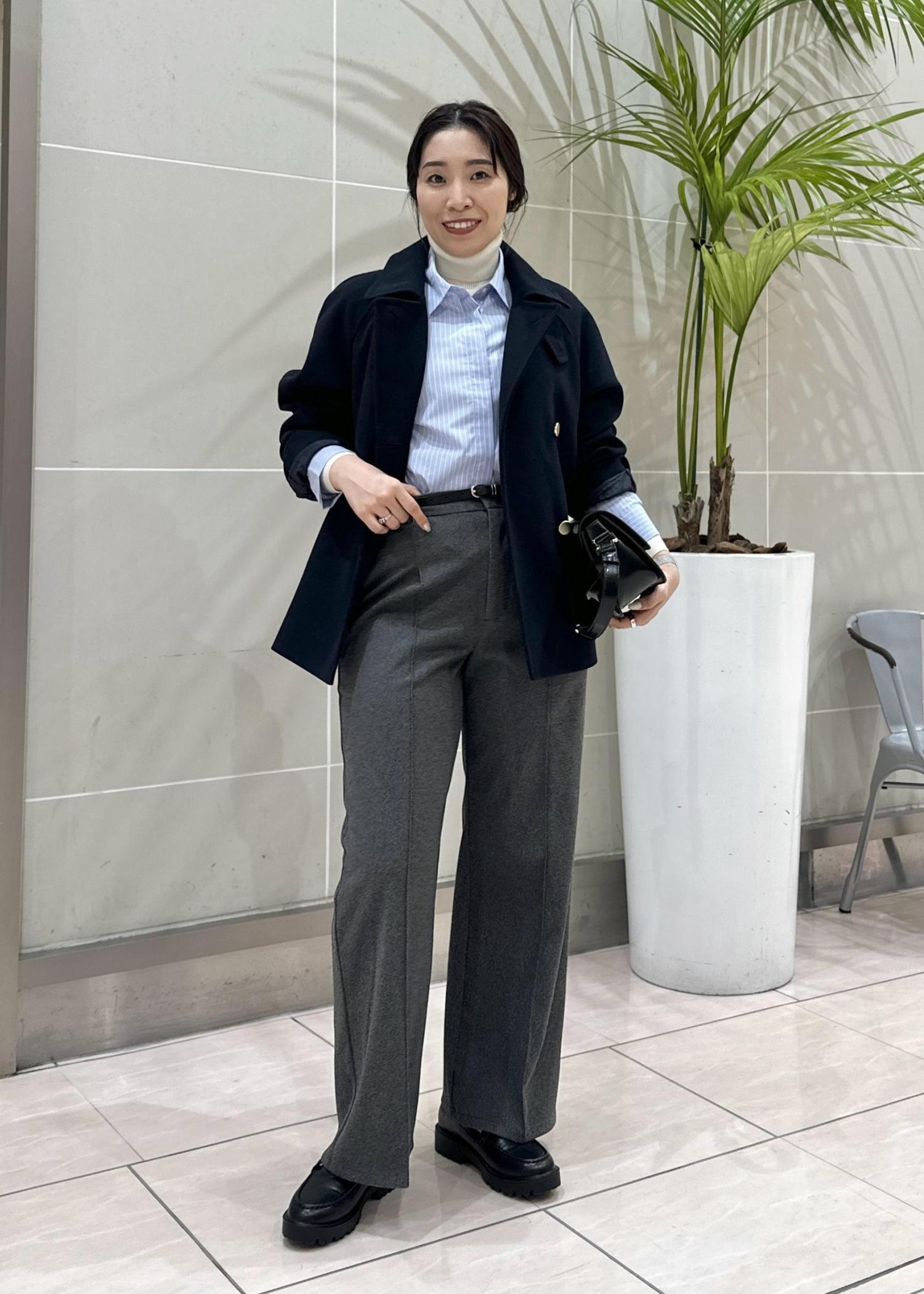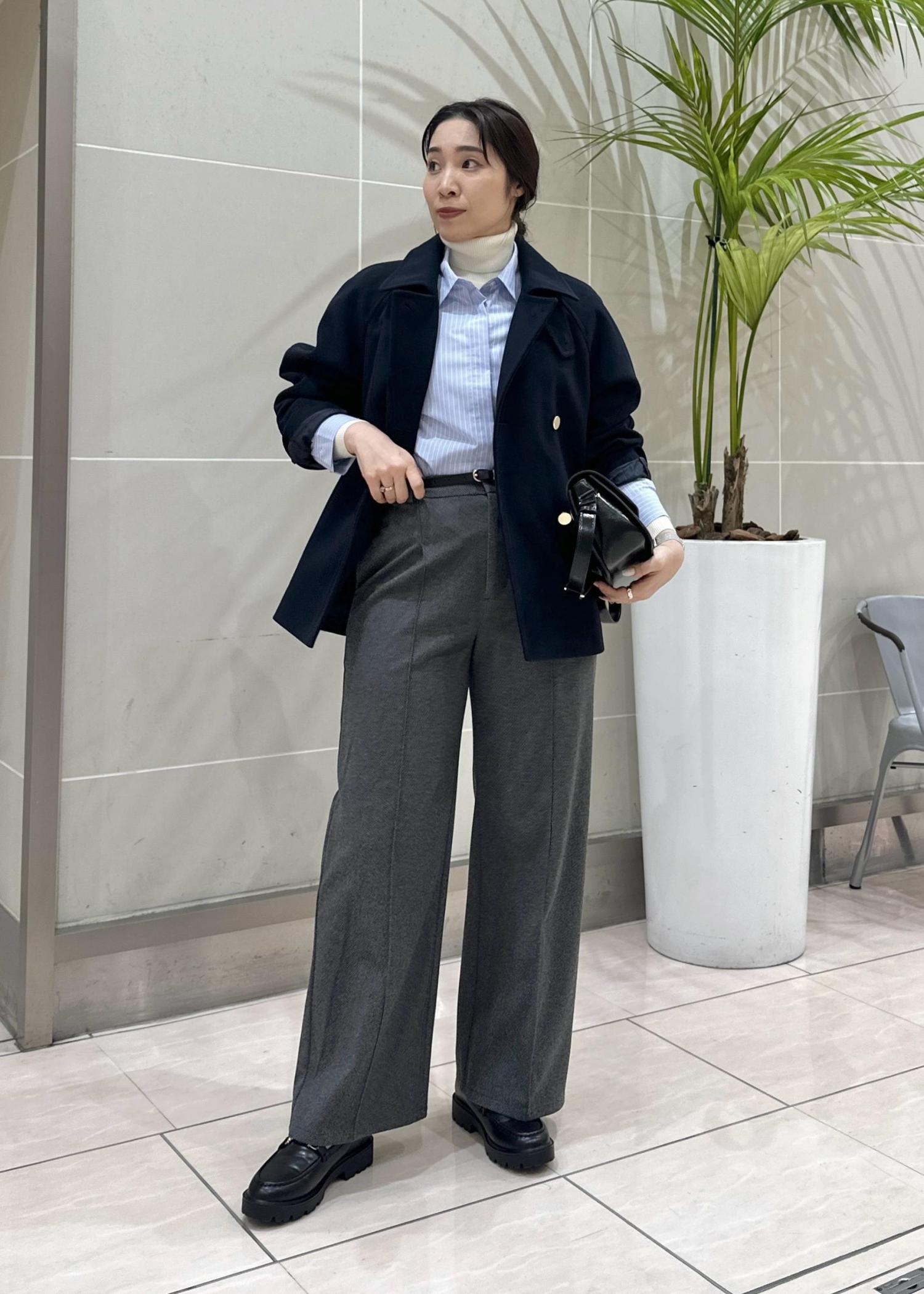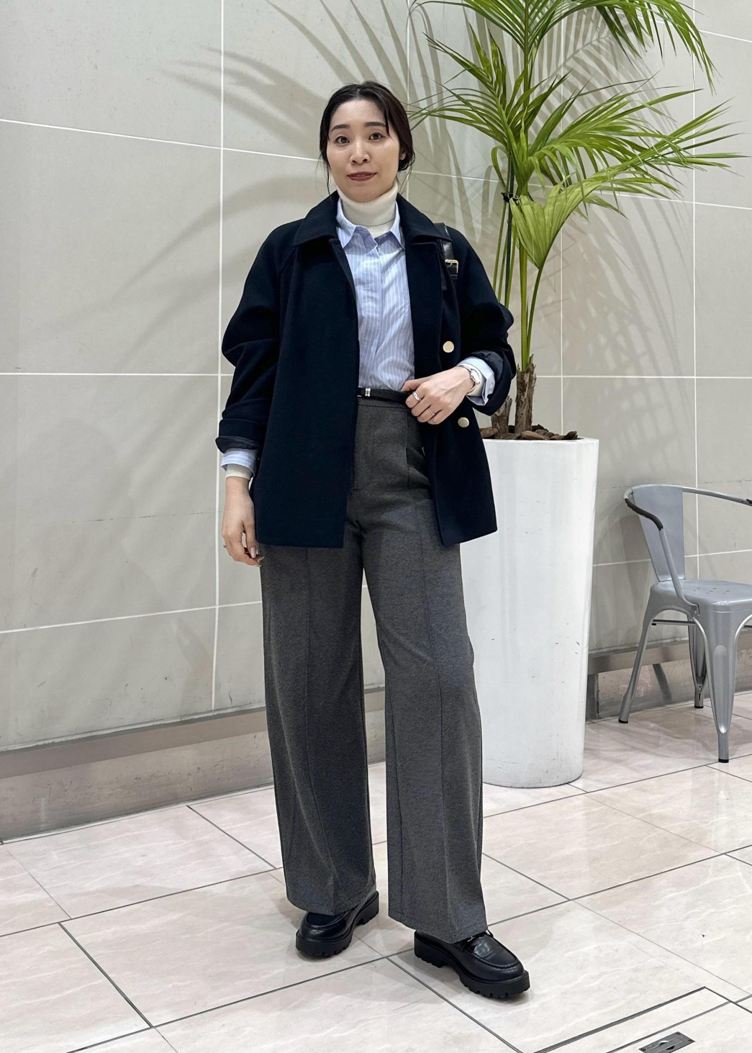 金ボタンがアクセントになるので綺麗めなお仕事スタイルにもオススメのコーディネートです。