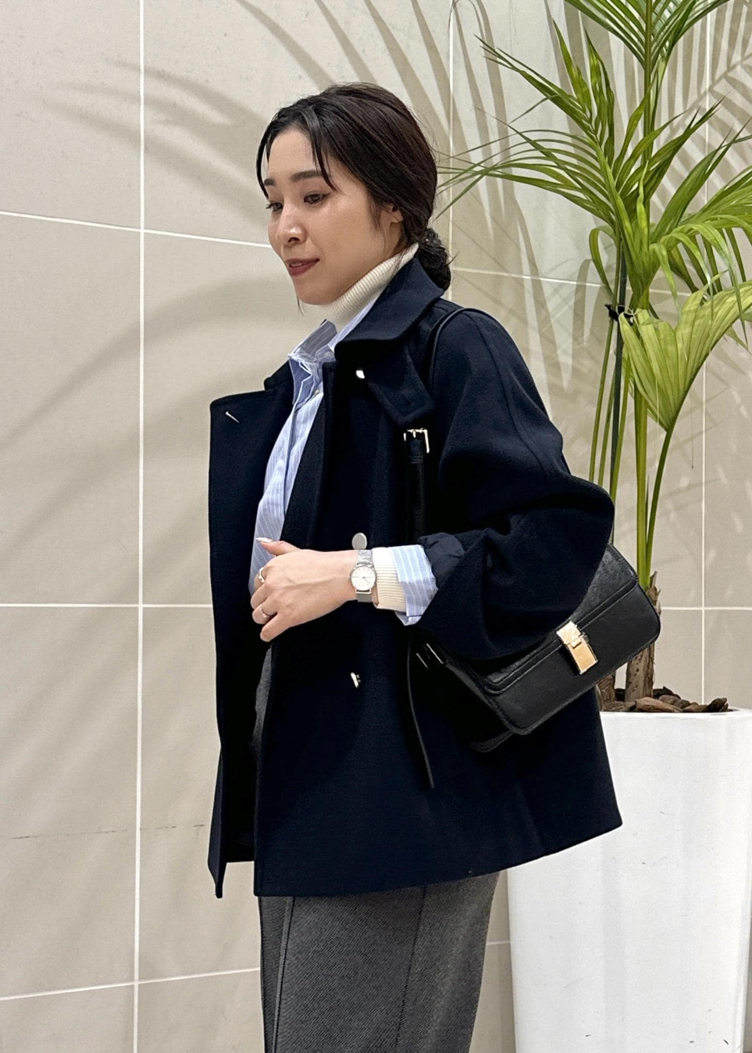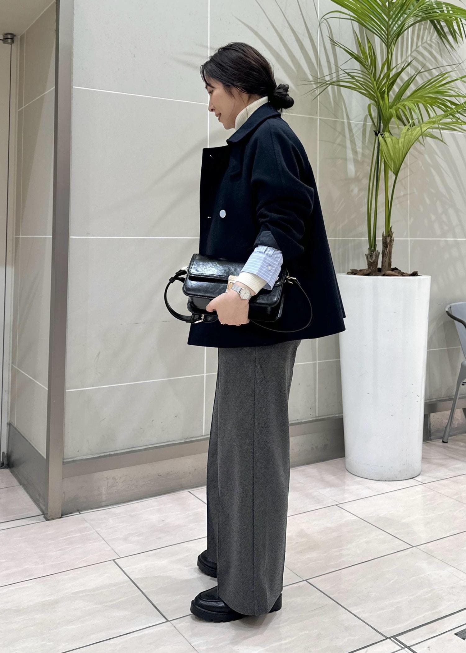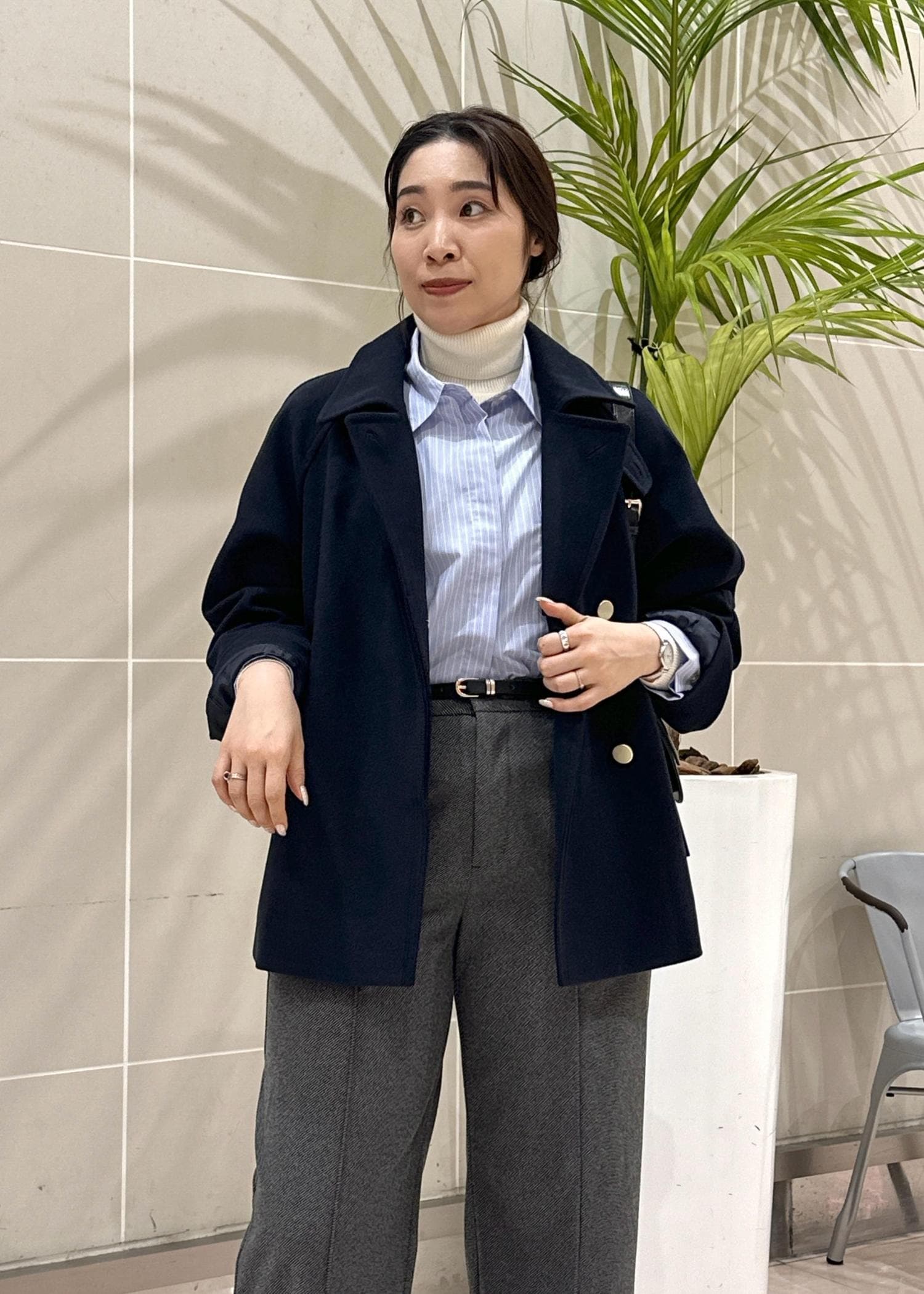 金ボタンがアクセントになるので綺麗めなお仕事スタイルにもオススメのコーディネートです。
