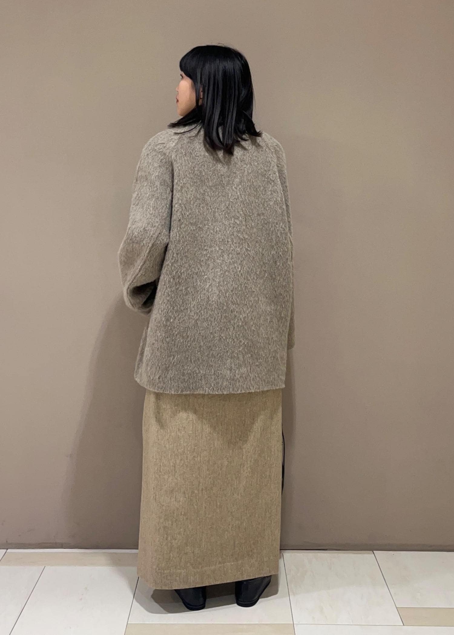 EMOELLE【EMOELLE】ウールコットン2タックスカートベージュ系 / 36¥29,700レビュー体のラインを拾わないシルエットの大きいスカートです。ウエストは少し緩いのでベルトで締めていただいても◎