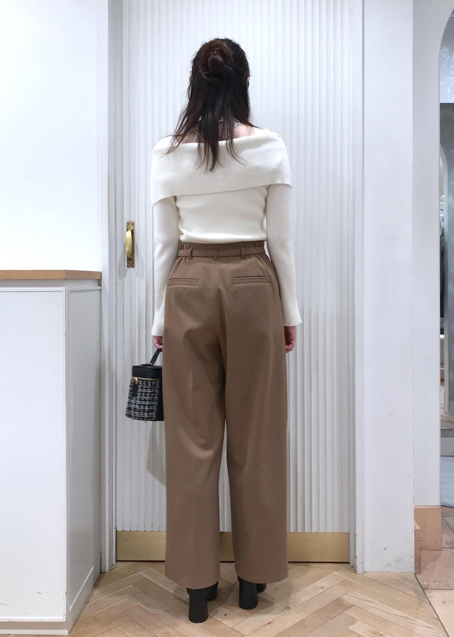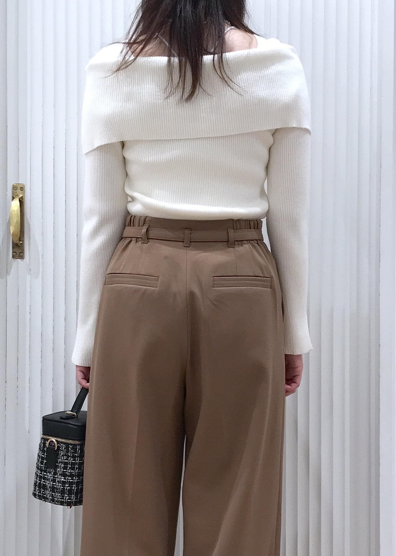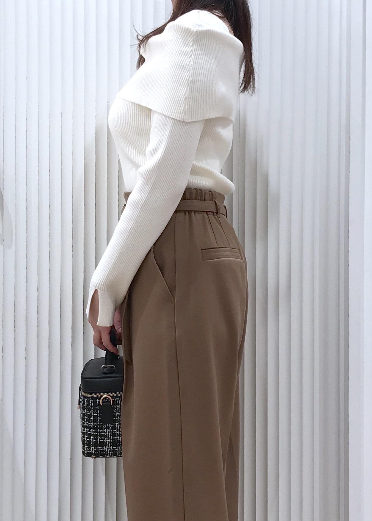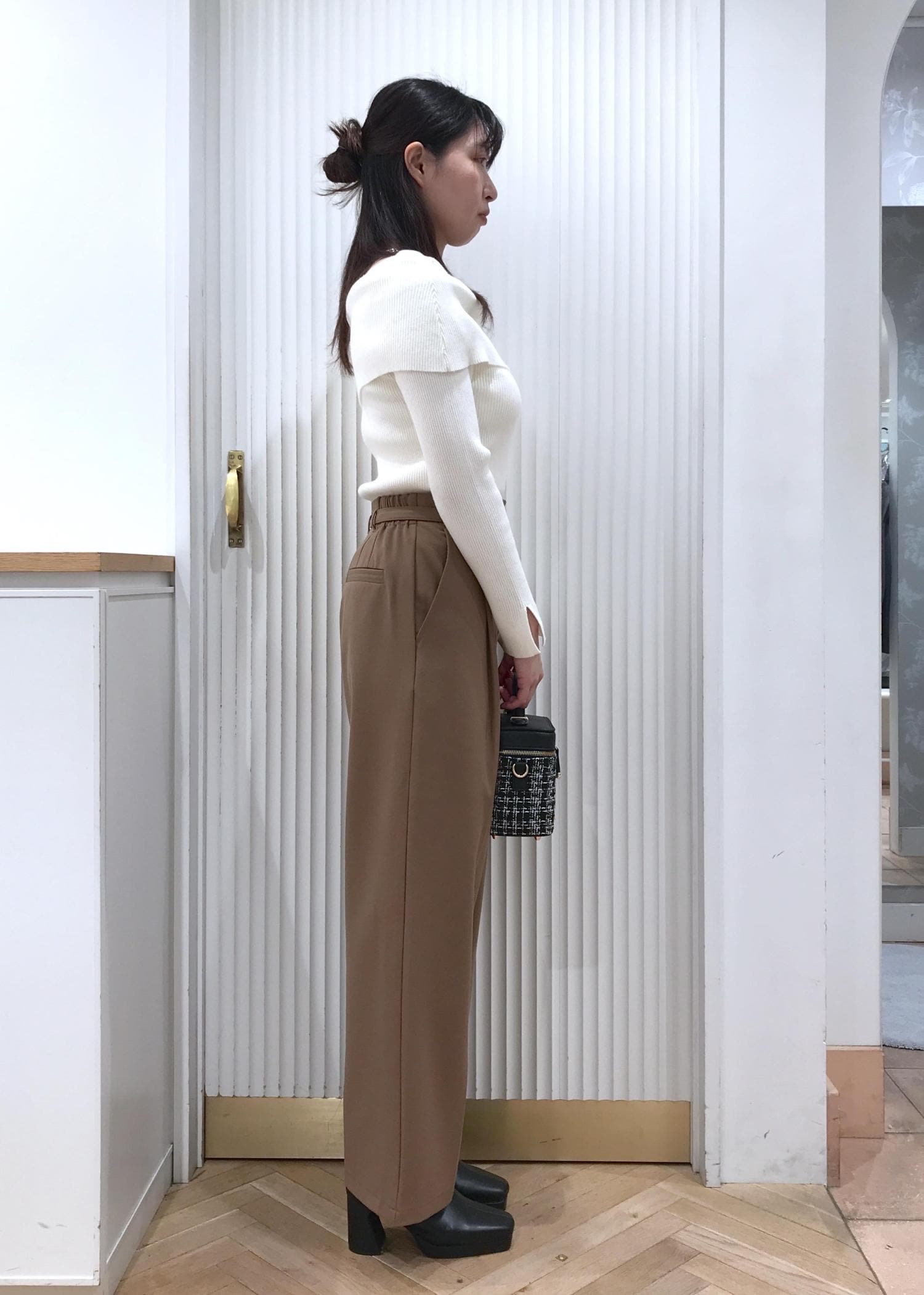 リブのニットで身体のラインは拾いますが、伸縮性があるので窮屈感は無くリラックスして着用出来ます。