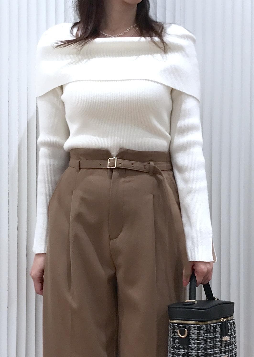NEW!VIS【美得】オフショルダーモチモチリブニット/好評につき再入荷オフホワイト / F¥5,489レビュー私の身長で腰にかかる着丈感です。