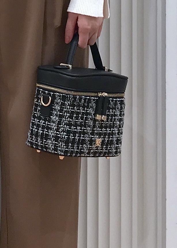 ツィード素材で、シンプルなコーデにもワンポイントとして使い回せますよ。 -