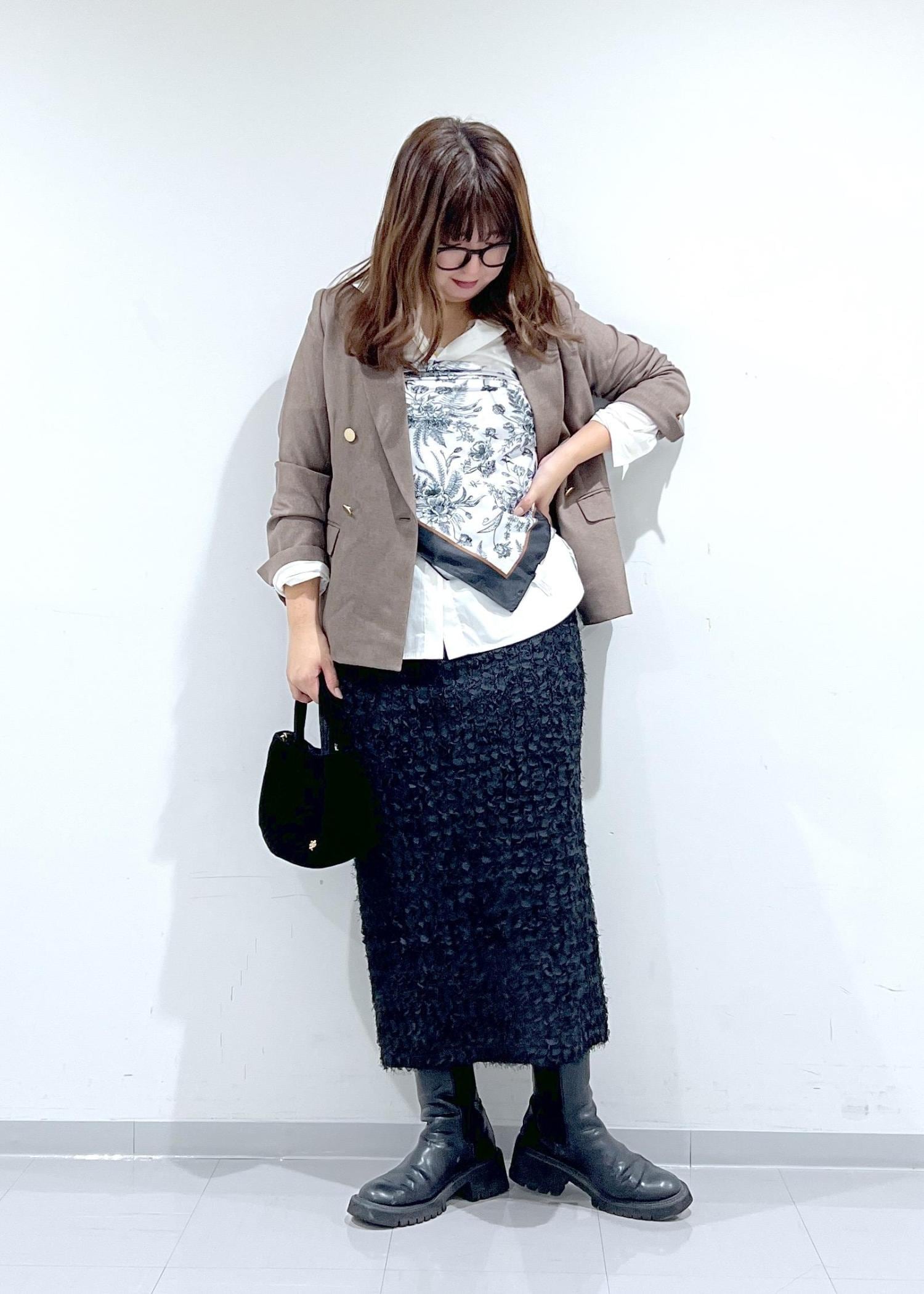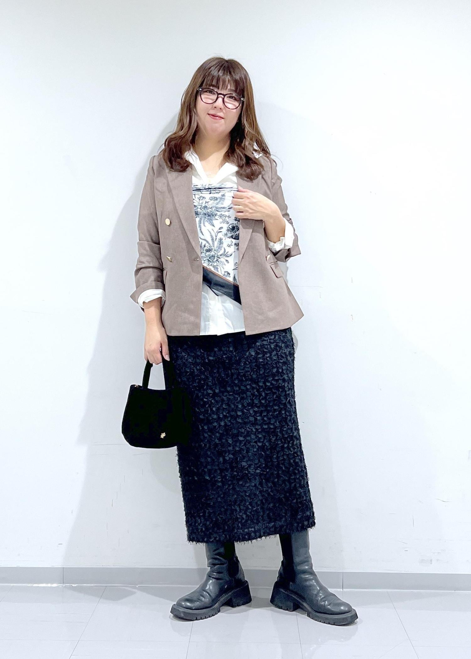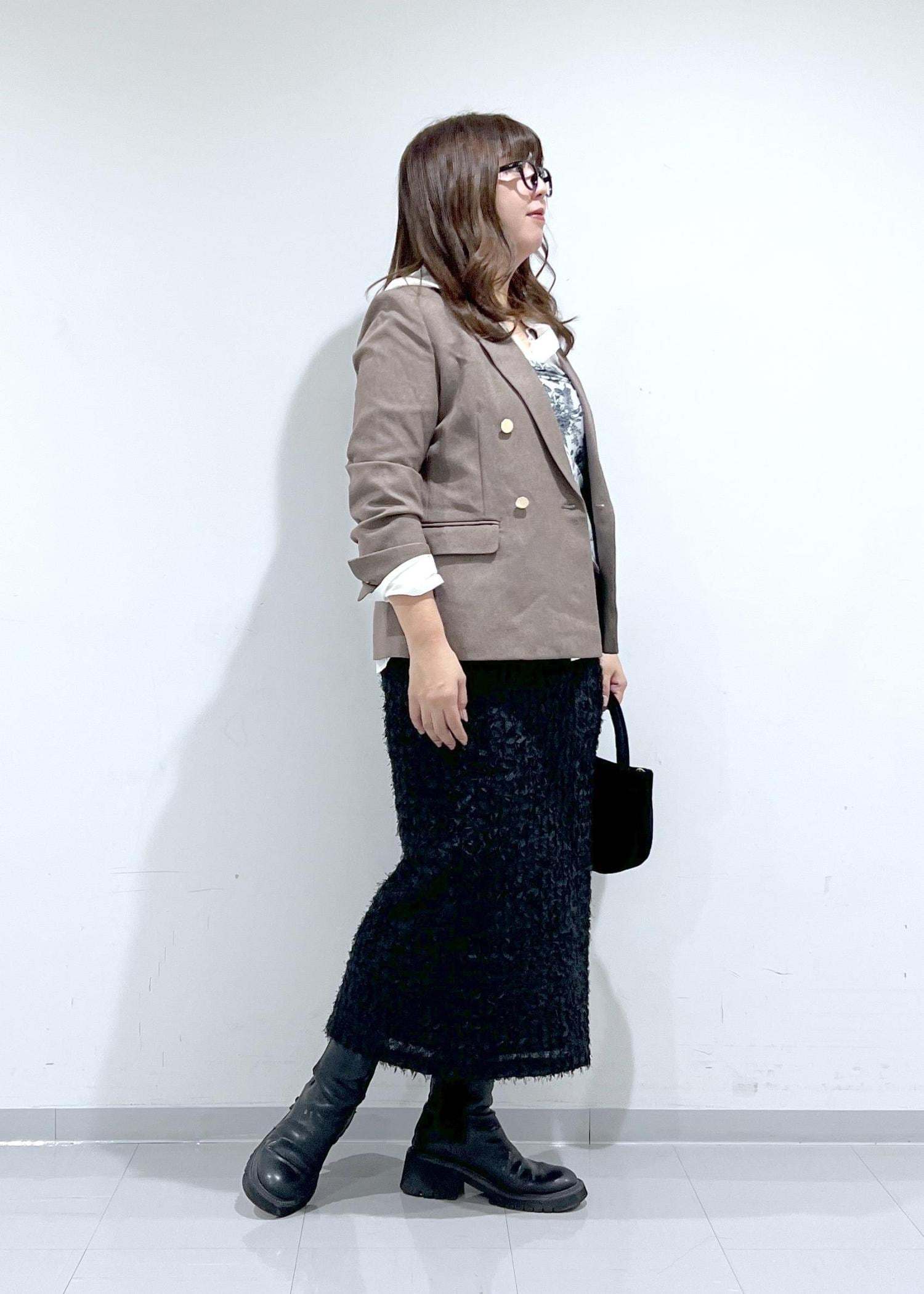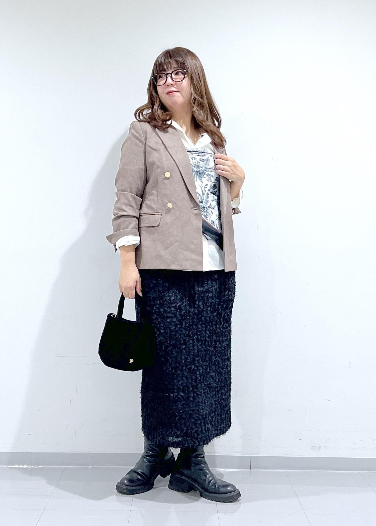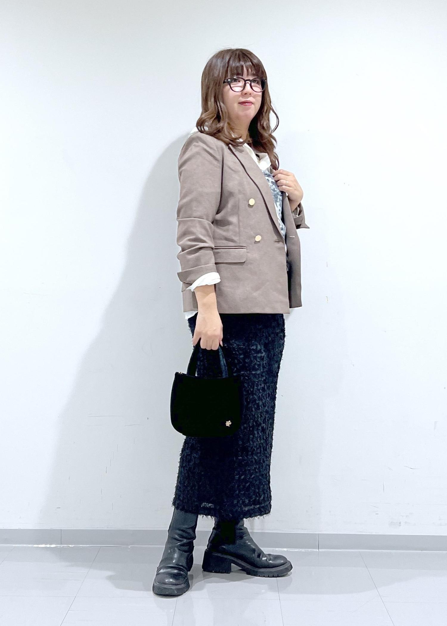ずっと完売していた金ボタンジャケットベージュカラーのコーディネートです!仕事っぽくなりすぎずカジュアルダウンしたコーディネートもしやすくおすすめです◎