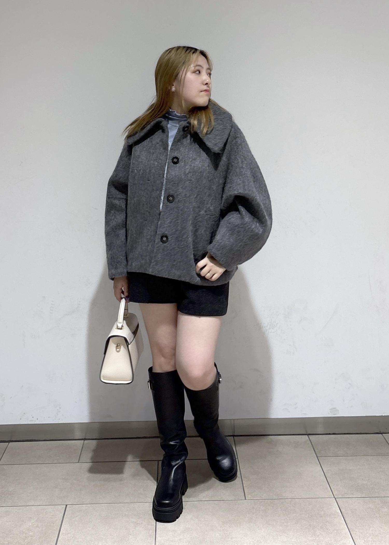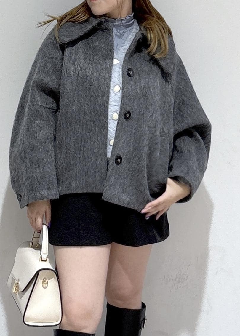VIS【アウター総選挙1位】ビッグカラーモモンガシャギーショートコートグレー / S¥10,989レビュー153cm、Sサイズ着用でおしりが半分隠れる丈感です!