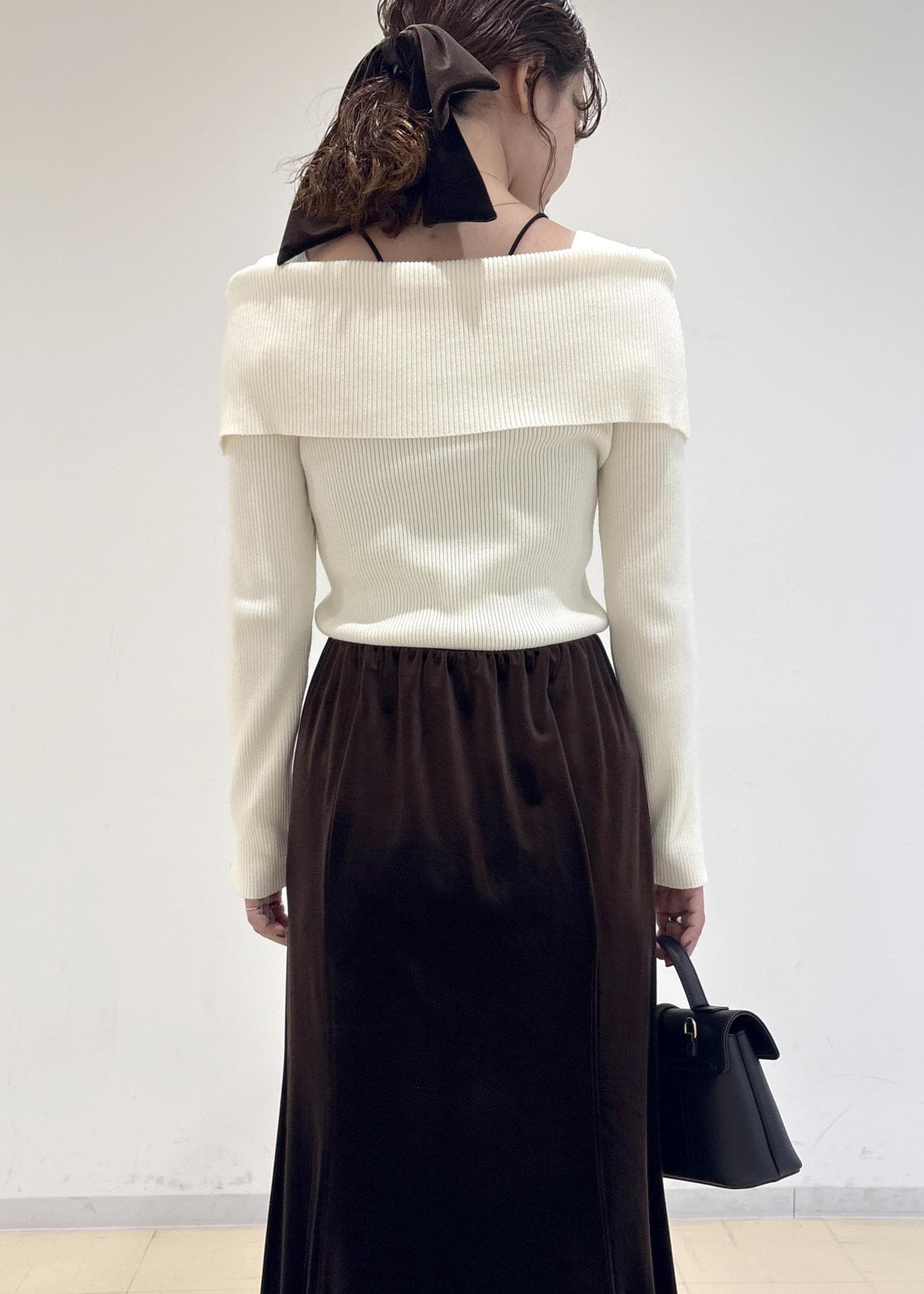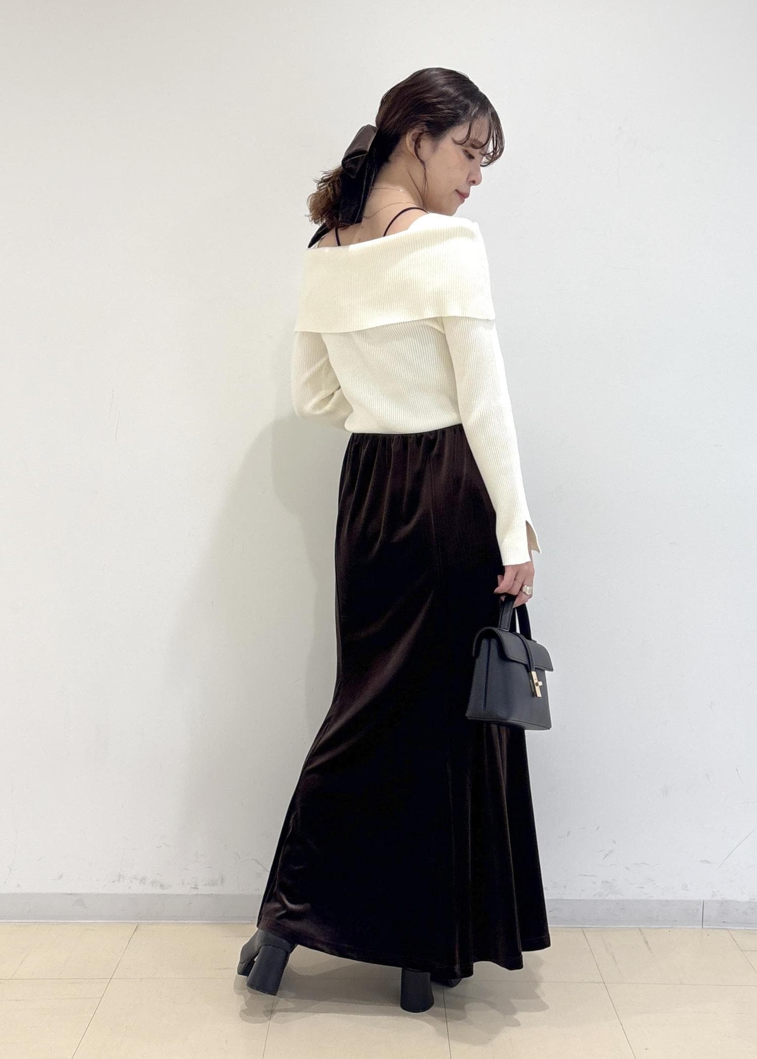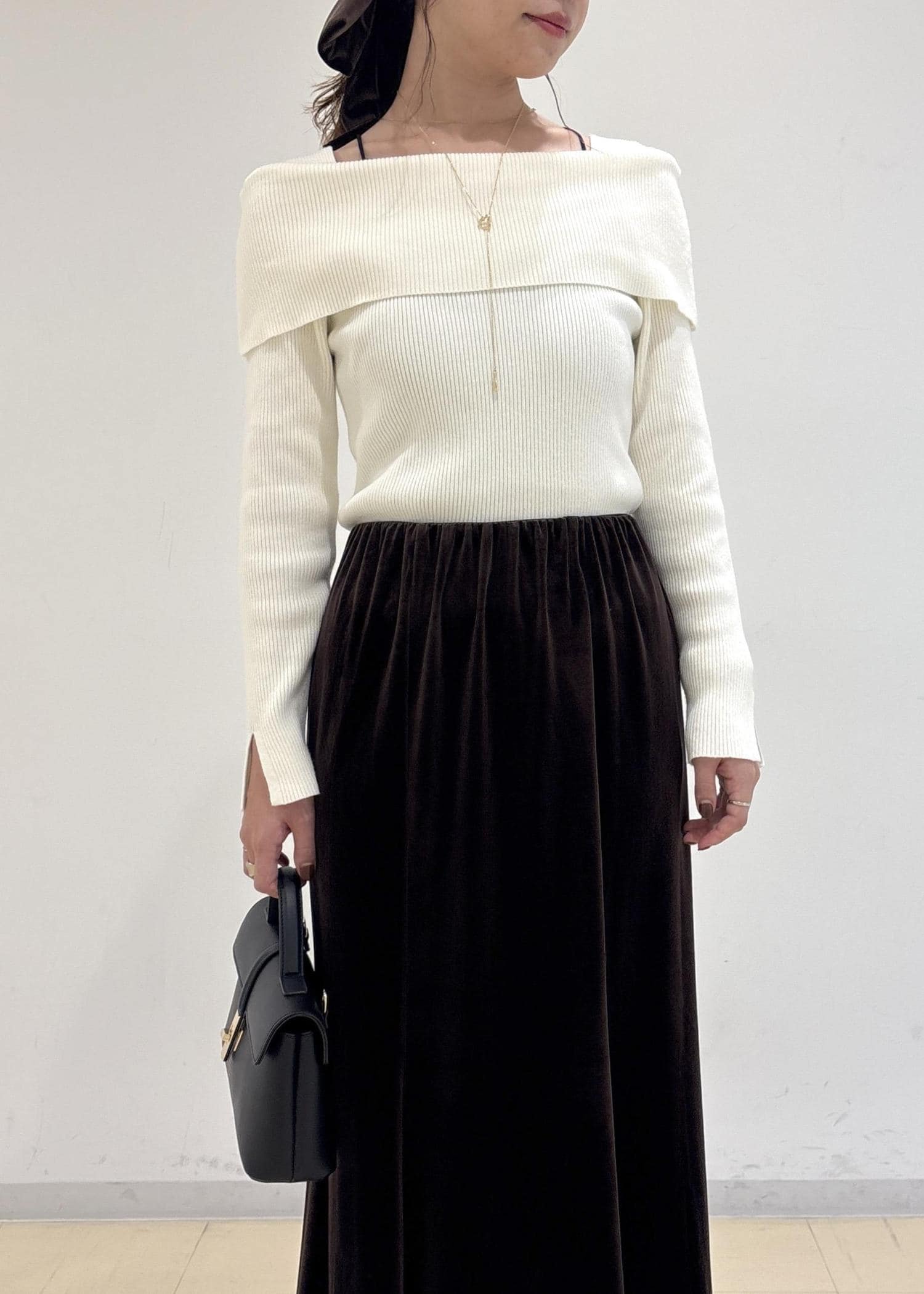 VISオフショルダーモチモチリブニット/好評につき再入荷オフホワイト / F¥5,489レビューオフショル風で肩のインナーが見えないデザインです◎