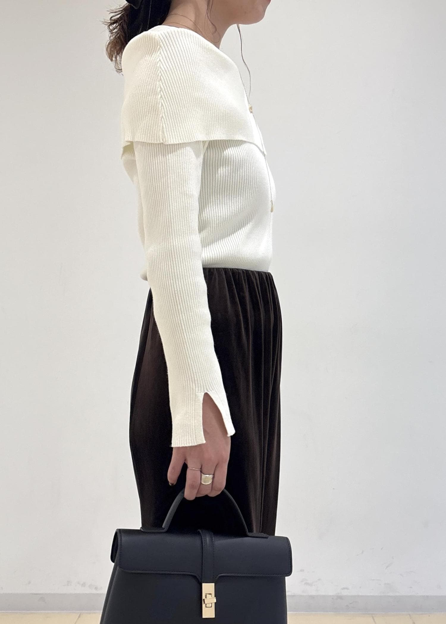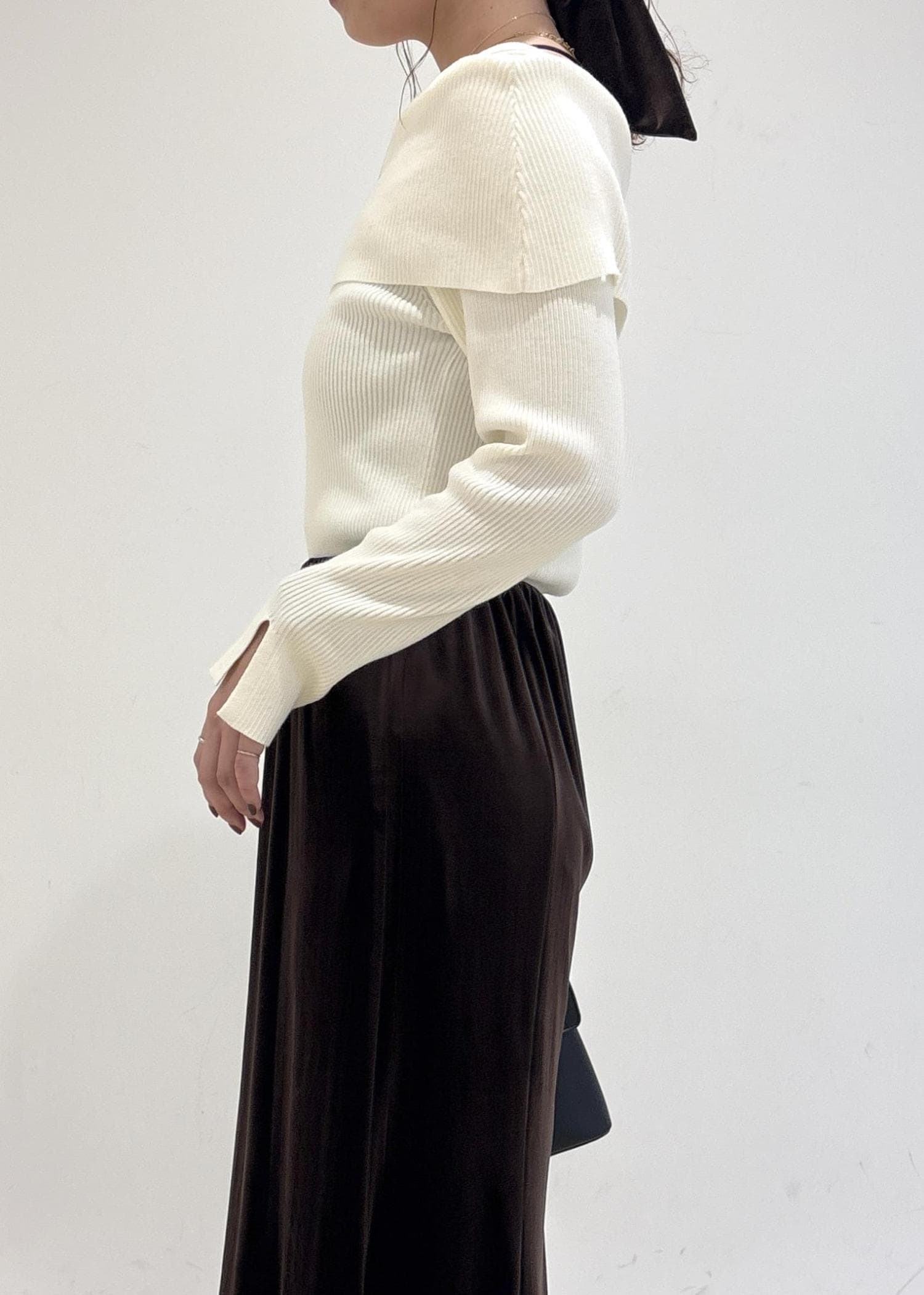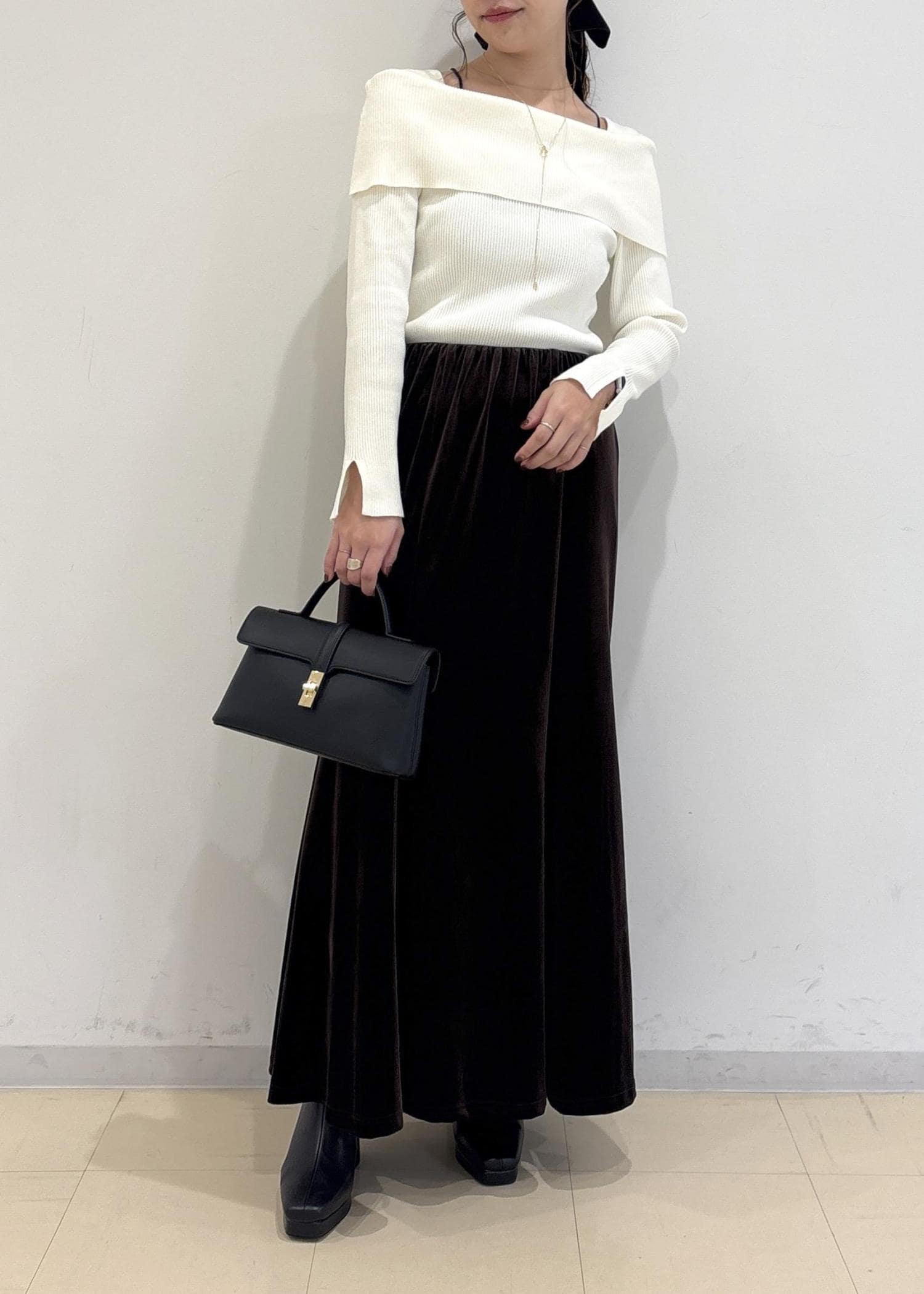 VISオフショルダーモチモチリブニット/好評につき再入荷オフホワイト / F¥5,489レビューオフショル風で肩のインナーが見えないデザインです◎