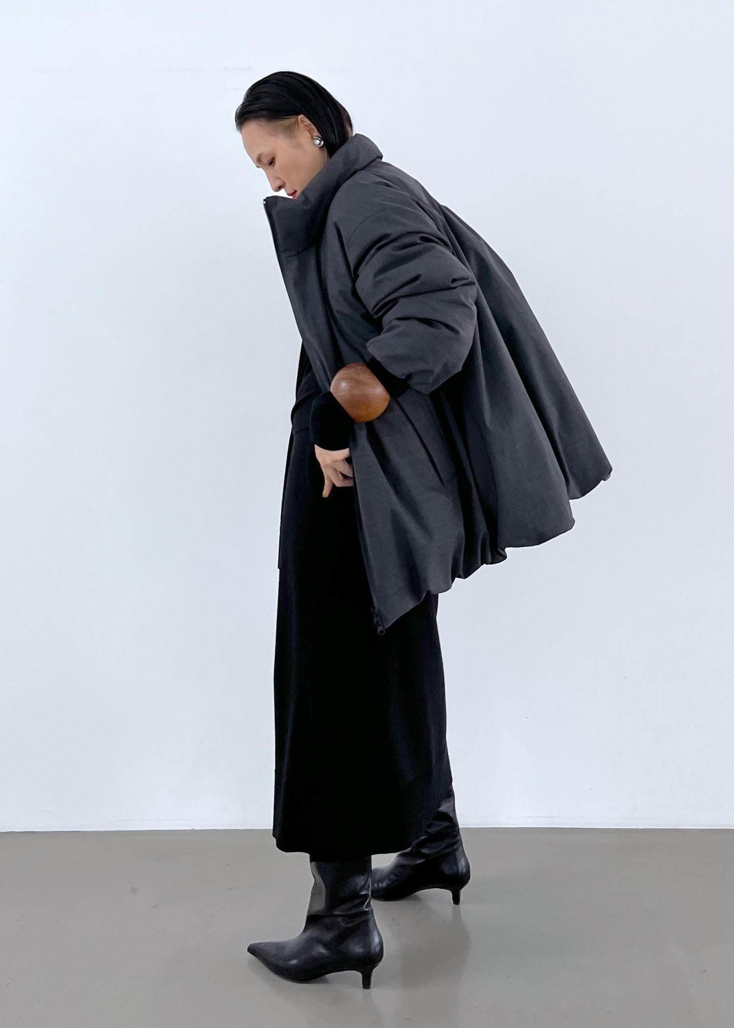 軽くて暖かい高品質ダウンを使用した、洗練されたオールブラックスタイル。
