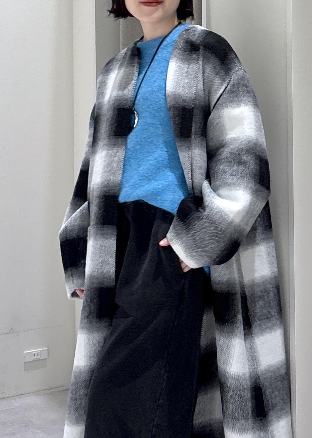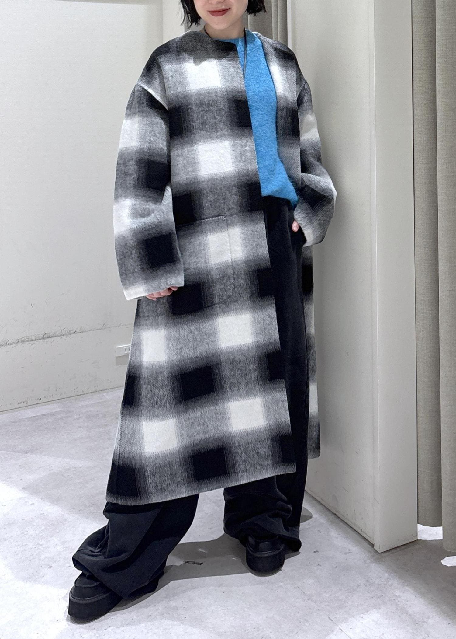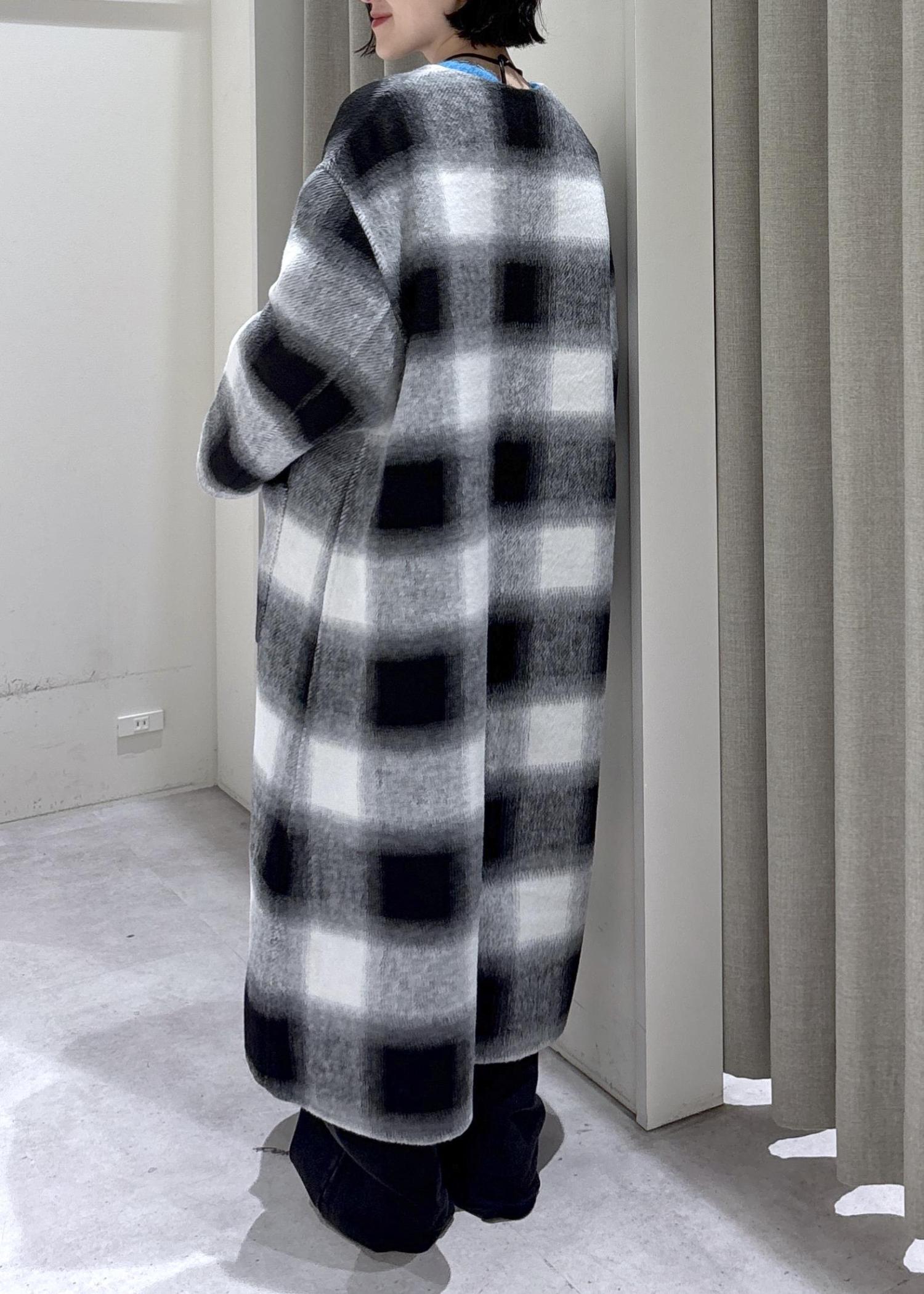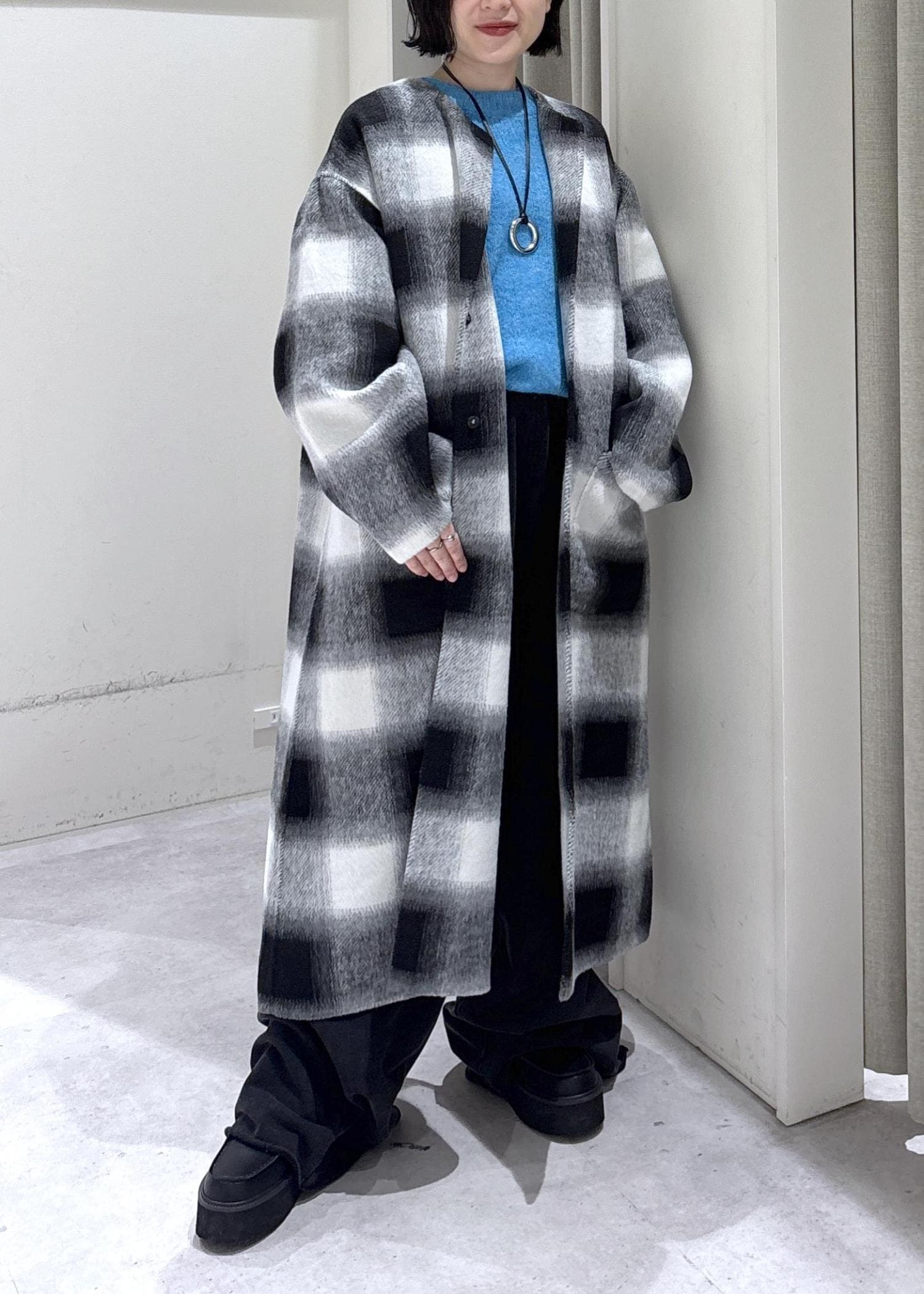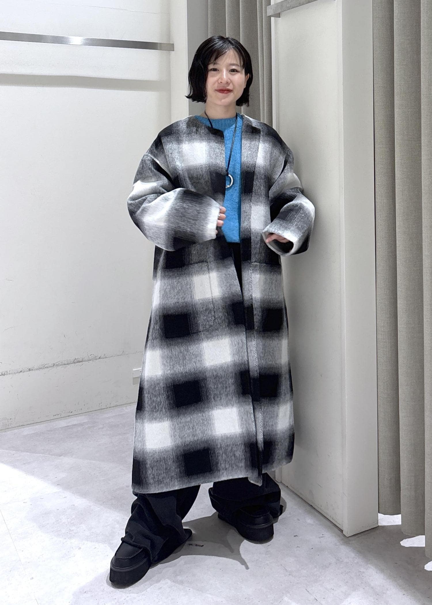 LE CERCLE par ropéダブルフェイスチェックロングコートブラック系 / F¥15,180レビュー149cmの私でも着られる長さ!