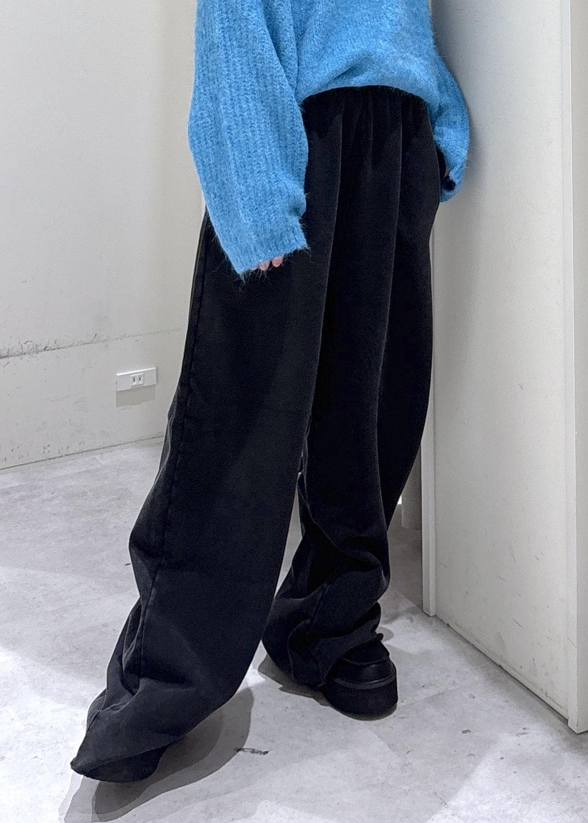 LE CERCLE par ropé製品染めスウェットパンツブラック系 / F¥5,610レビュー程よい太さのワイドパンツ
