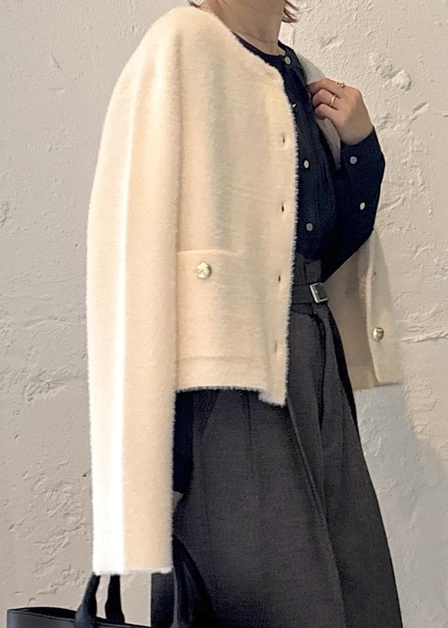 NEW!VIS接結ミニフェザーニットジャケットカーディガン/一部WEB限定カラーオフホワイト / F¥6,919レビューふわふわ柔らかなミニフェザーカーディガン♪昨年も同様の素材がとても人気で、とても着心地◎程よい伸縮性があり、けれど形崩れはしにくい上品なデザイン。メタルボタンも高みえします。全体的に程よくゆとりがあり、着丈は腰くらいの長さでした。