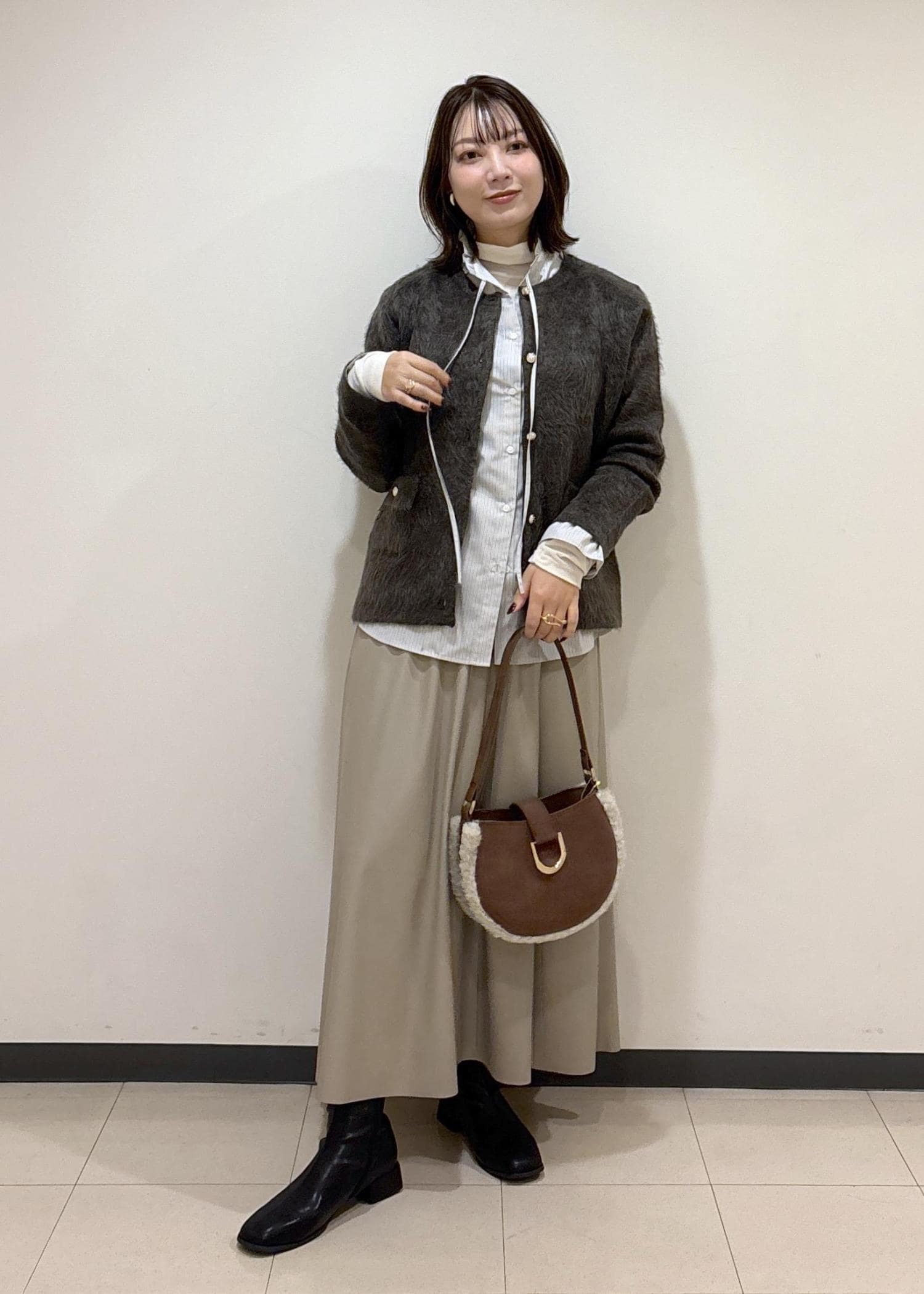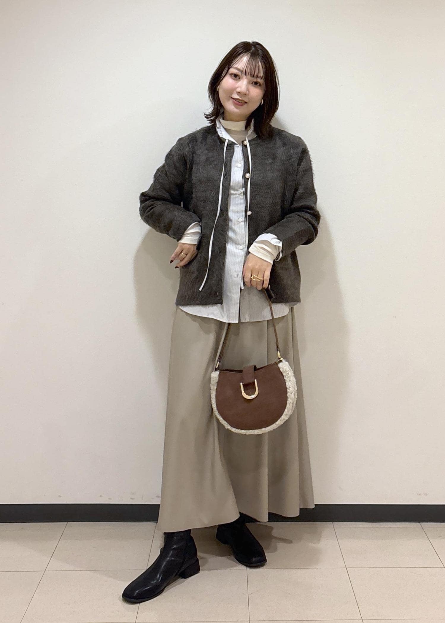 ROPÉ PICNICシンセティックレザーフレアロングスカートベージュ / M¥4,796レビュー軽やかで柔らかな素材。広がりすぎず大人っぽく着こなせます。