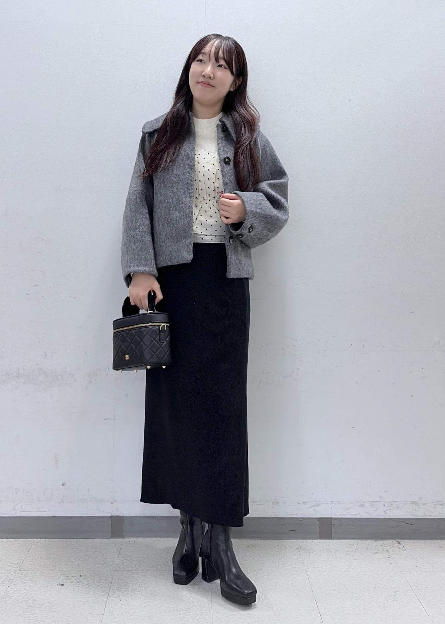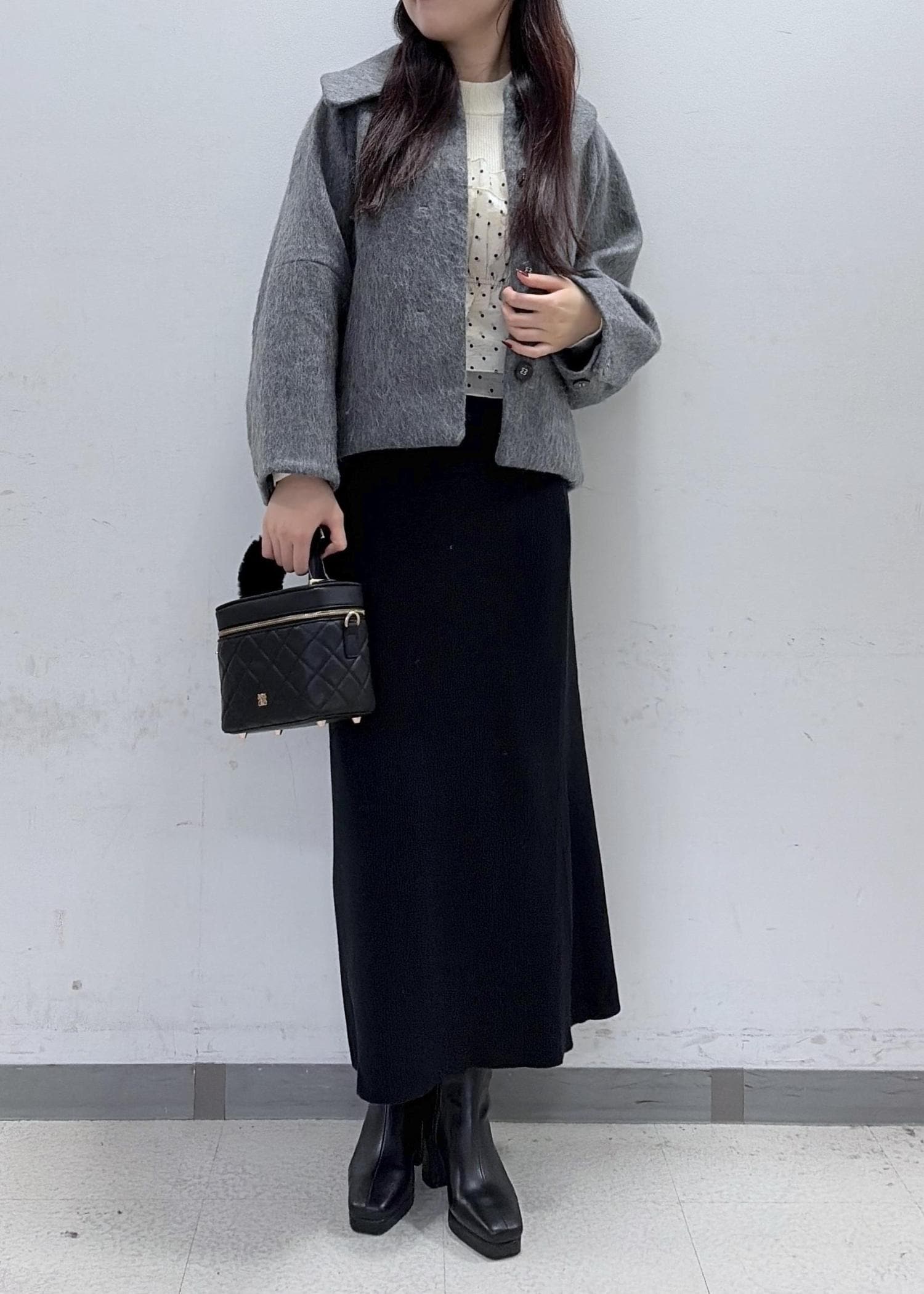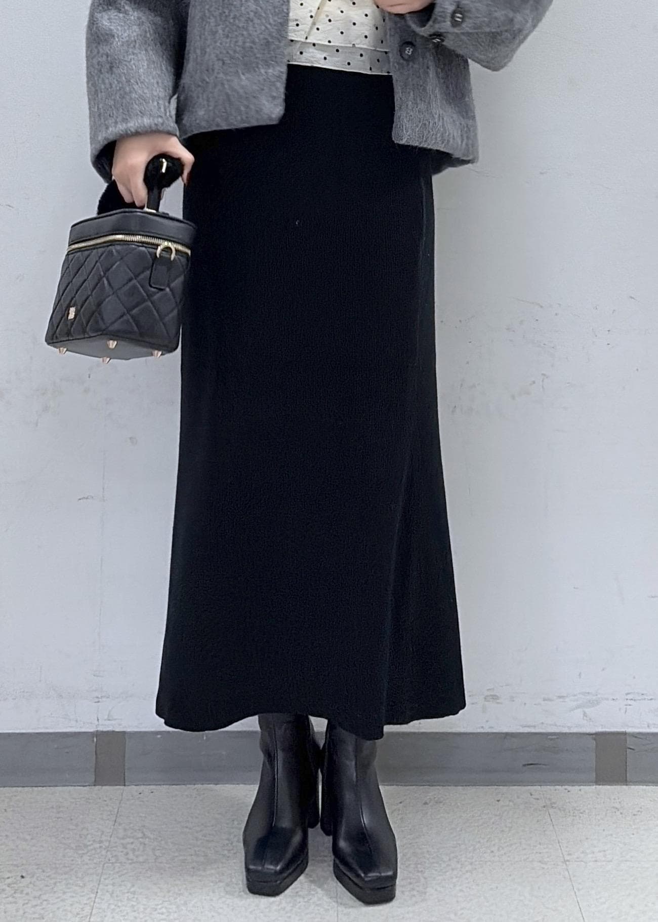 VISリブニットスカート/セットアップ対応ブラック / F¥5,929レビュー少し、マーメイド気味のスカートで体にぴたっときやすい生地感ですが、すごく着痩せするのでおすすめアイテムです!