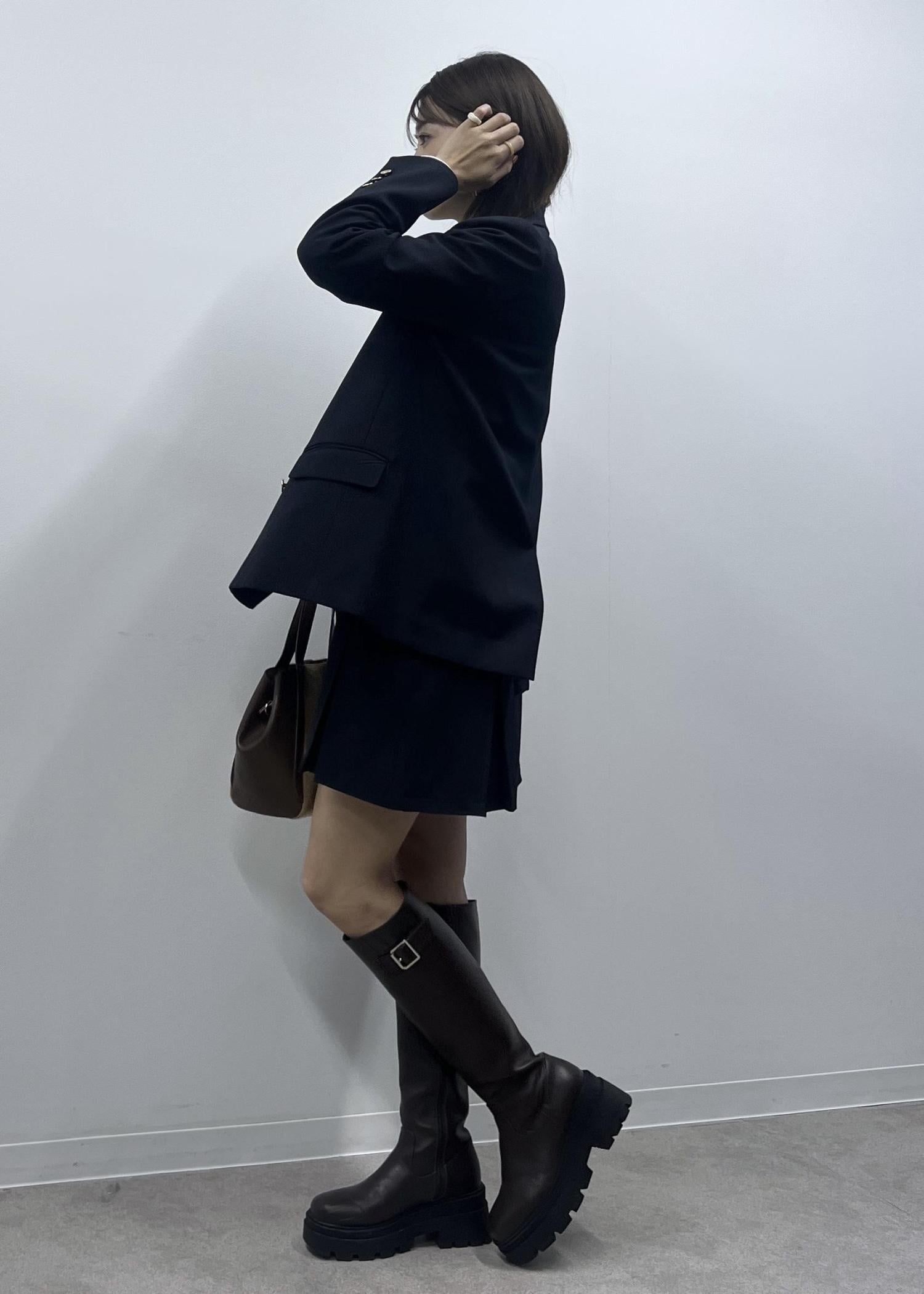 ジャストの着丈なのでボトムを選ばず合わせやすいです。 -