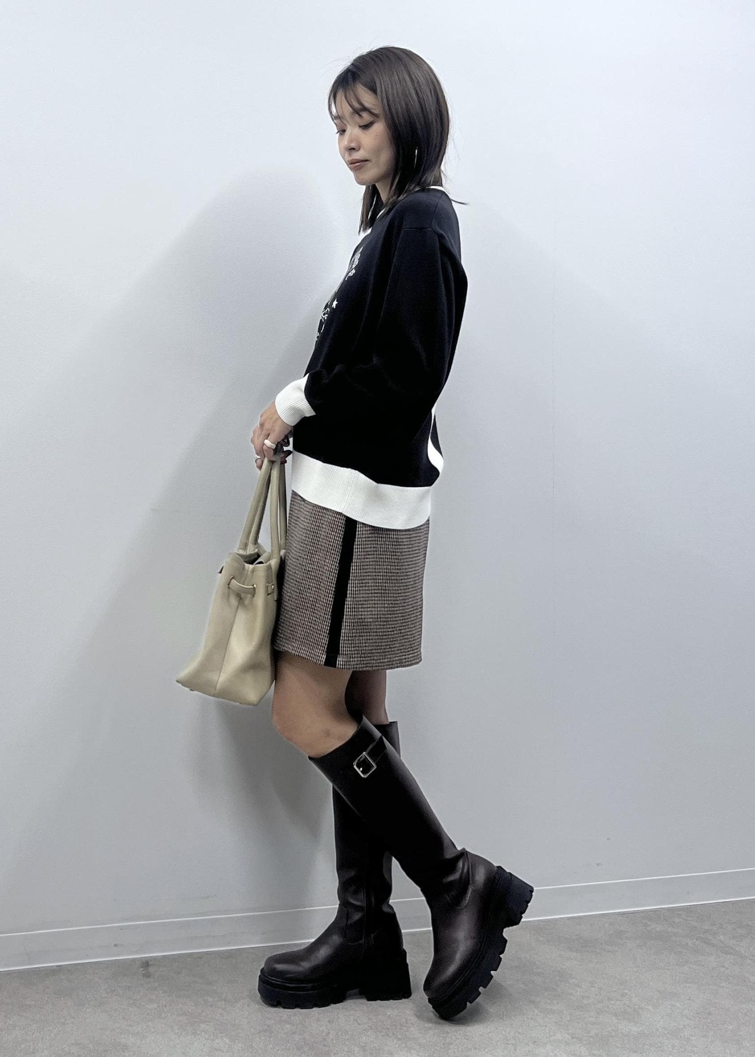 ブラウン系でまとめて秋冬らしい暖かみのあるスタイリングにしました。