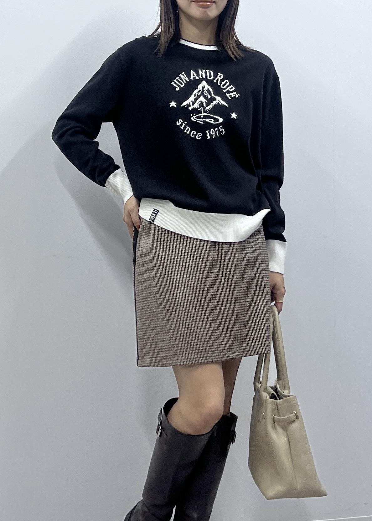 Jun & Ropéマウンテン柄クルーネックニットブラック / M¥25,300レビュー暖かみのあるウール混合素材で、しっかりしたハイゲージニット素材。