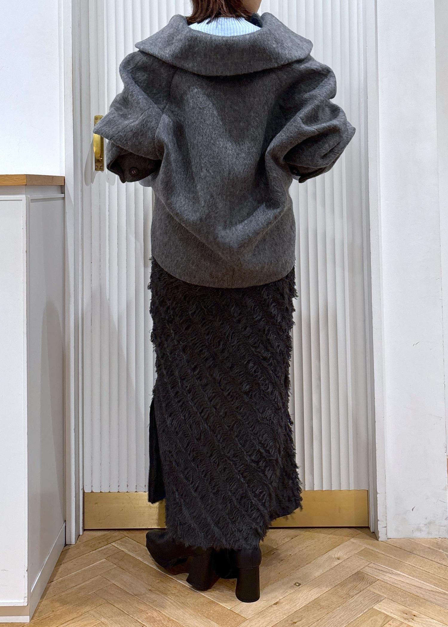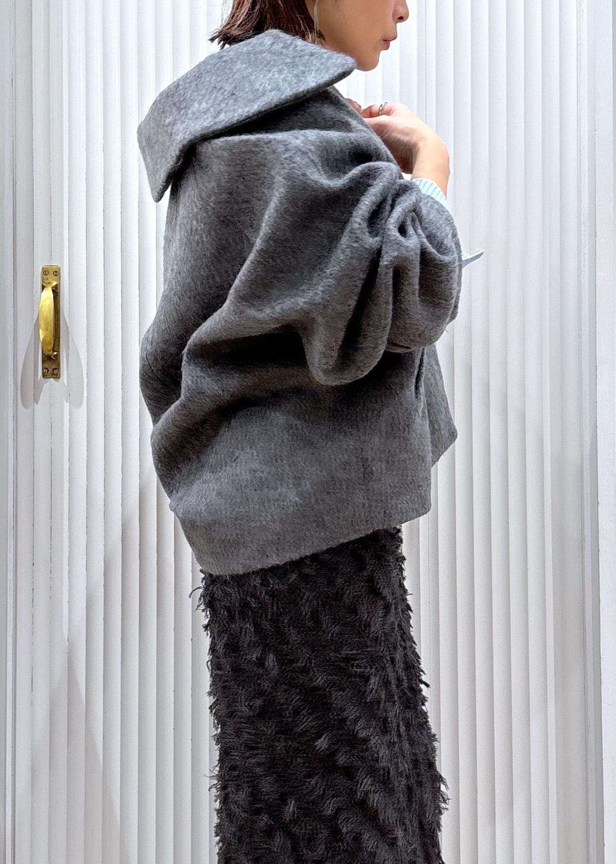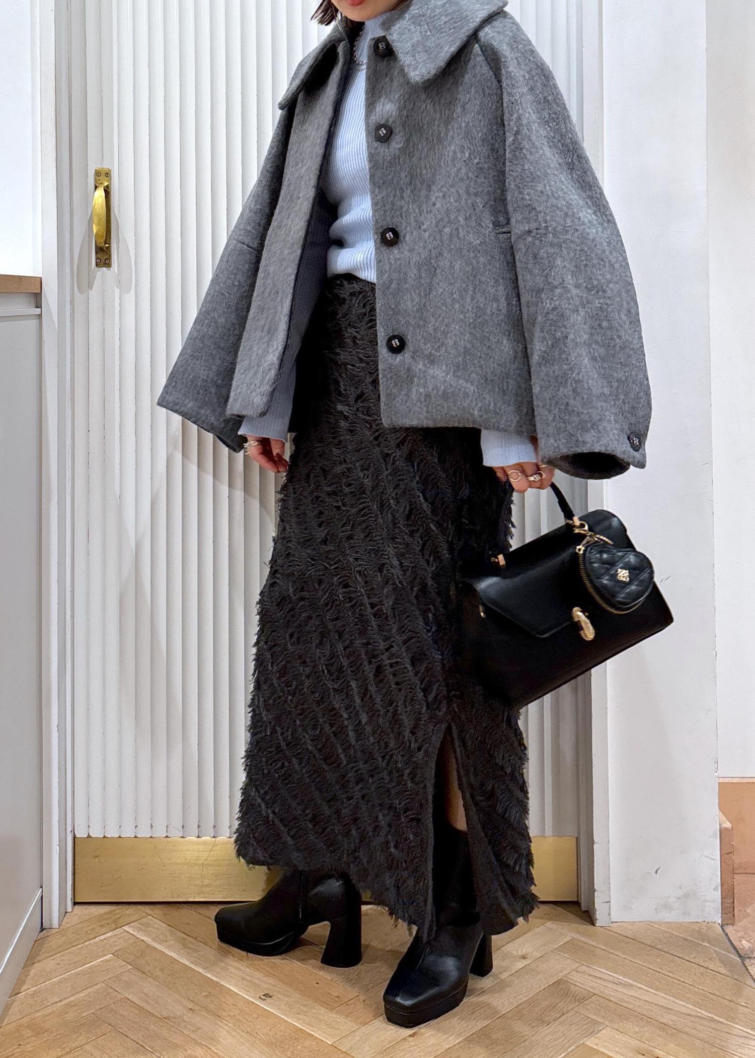 普段使いにももちろんおしゃれ見えするモモンガコートは襟を抜いたり肩掛けスタイルもお勧め♫