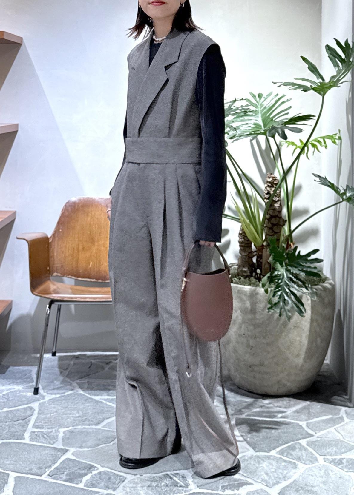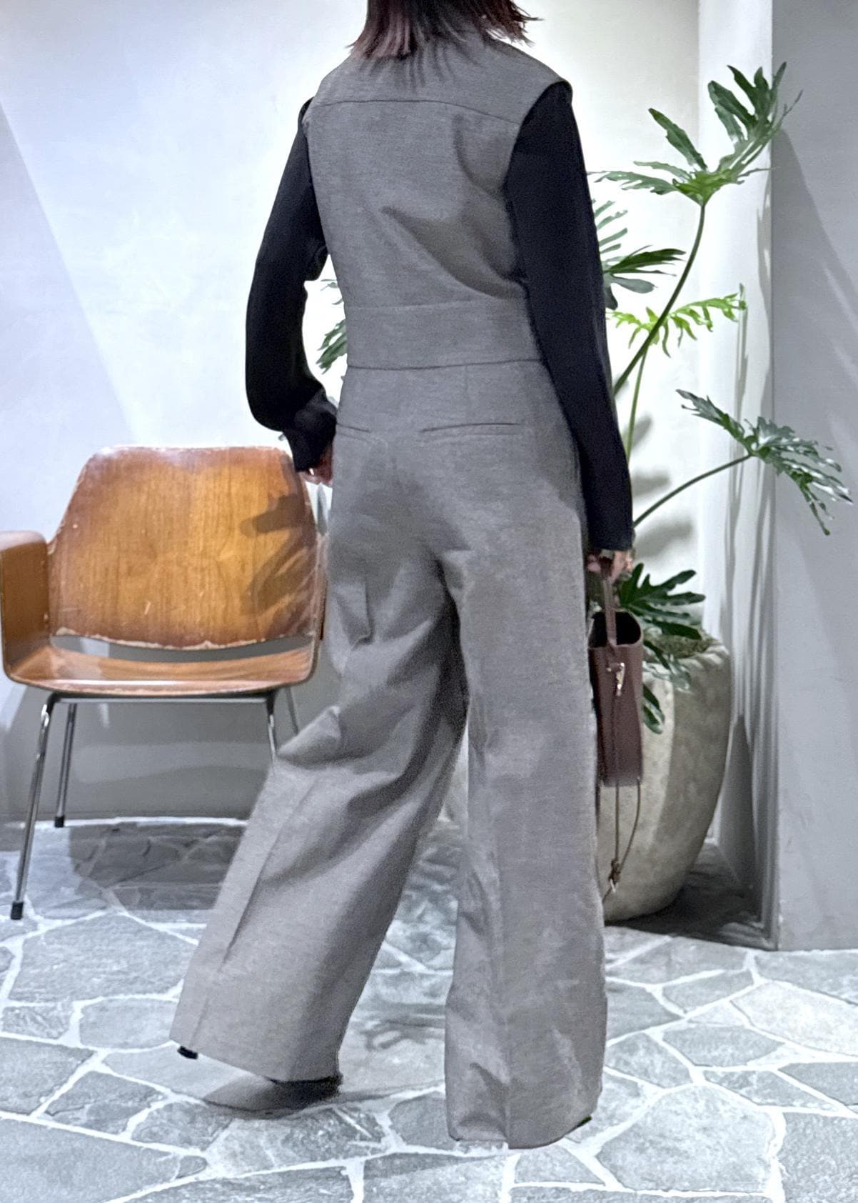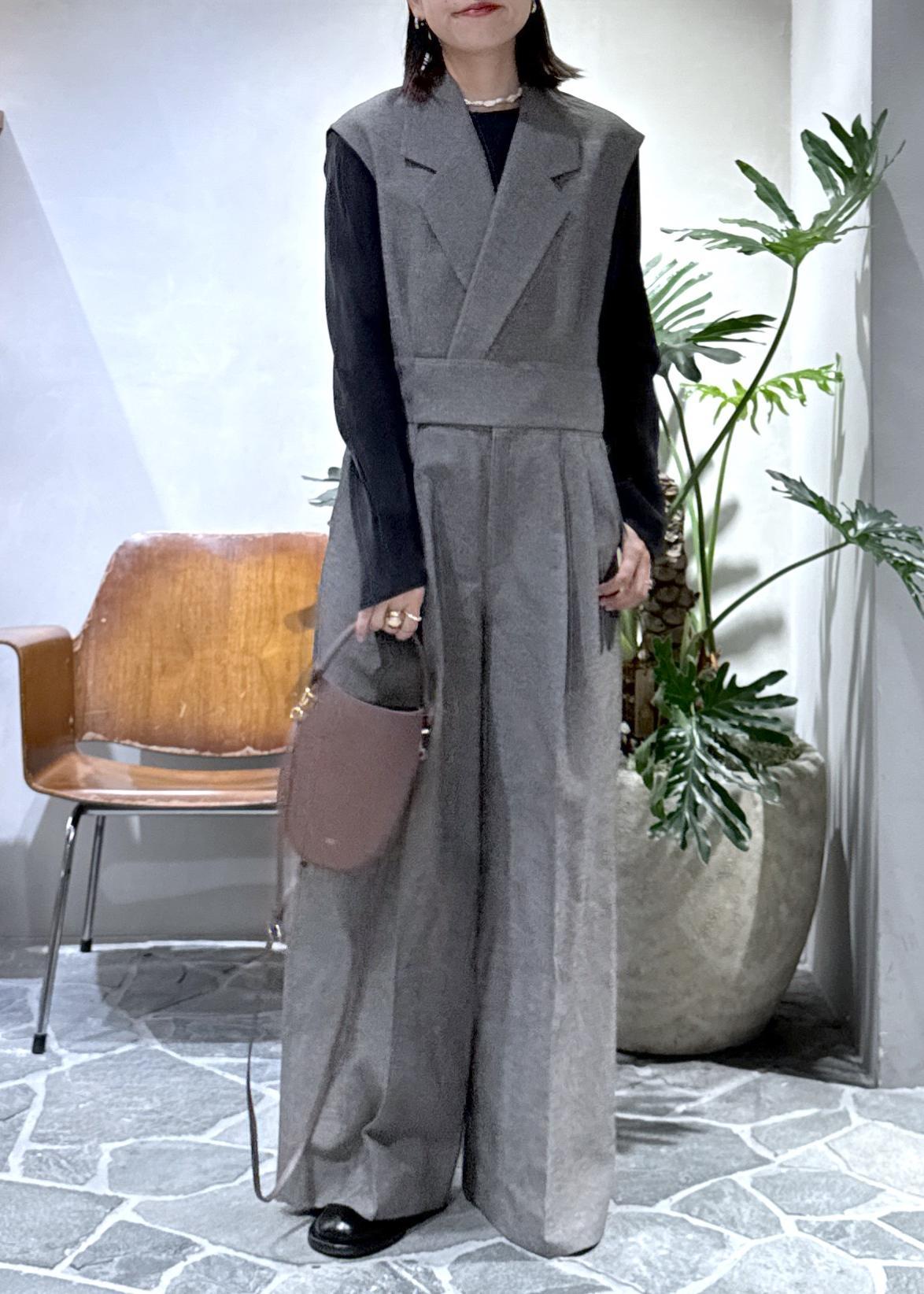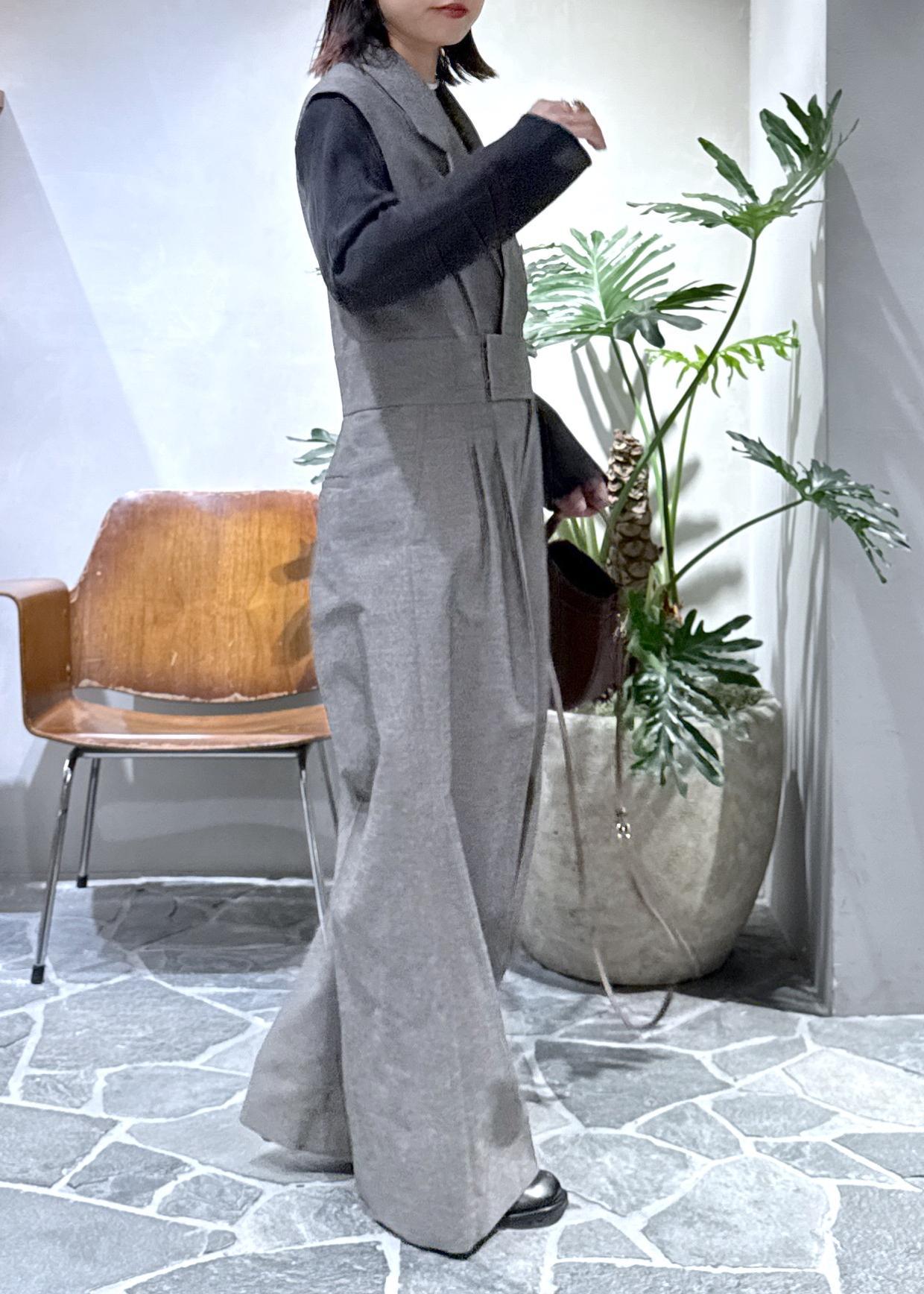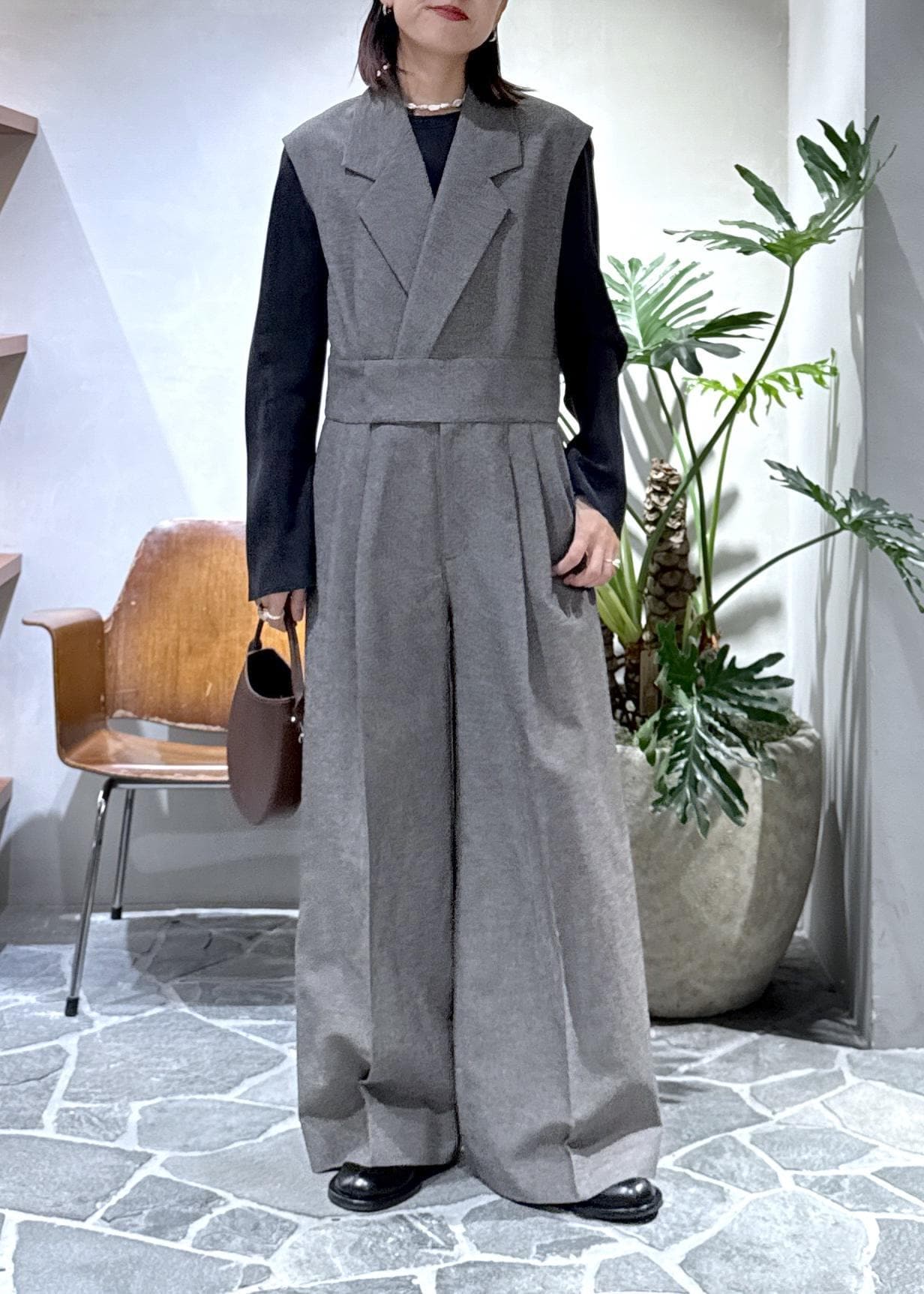 EMOELLE【EMOELLE】スリーブレスオールインワン メランジグレー系 / 36¥49,500レビューウール混の表面でとても品のあるロンパースです。