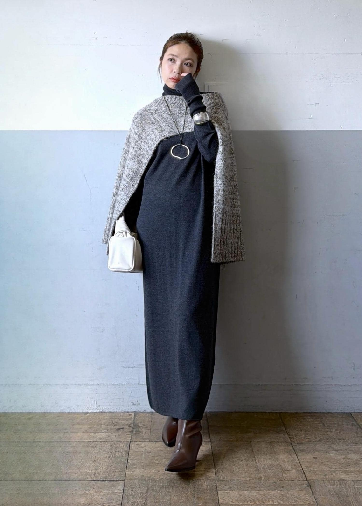 EMOELLE【EMOELLE】ソモウニットワンピースチャコール / 36¥29,700レビュー薄手でクタッと柔らかなハイゲージニットワンピース。