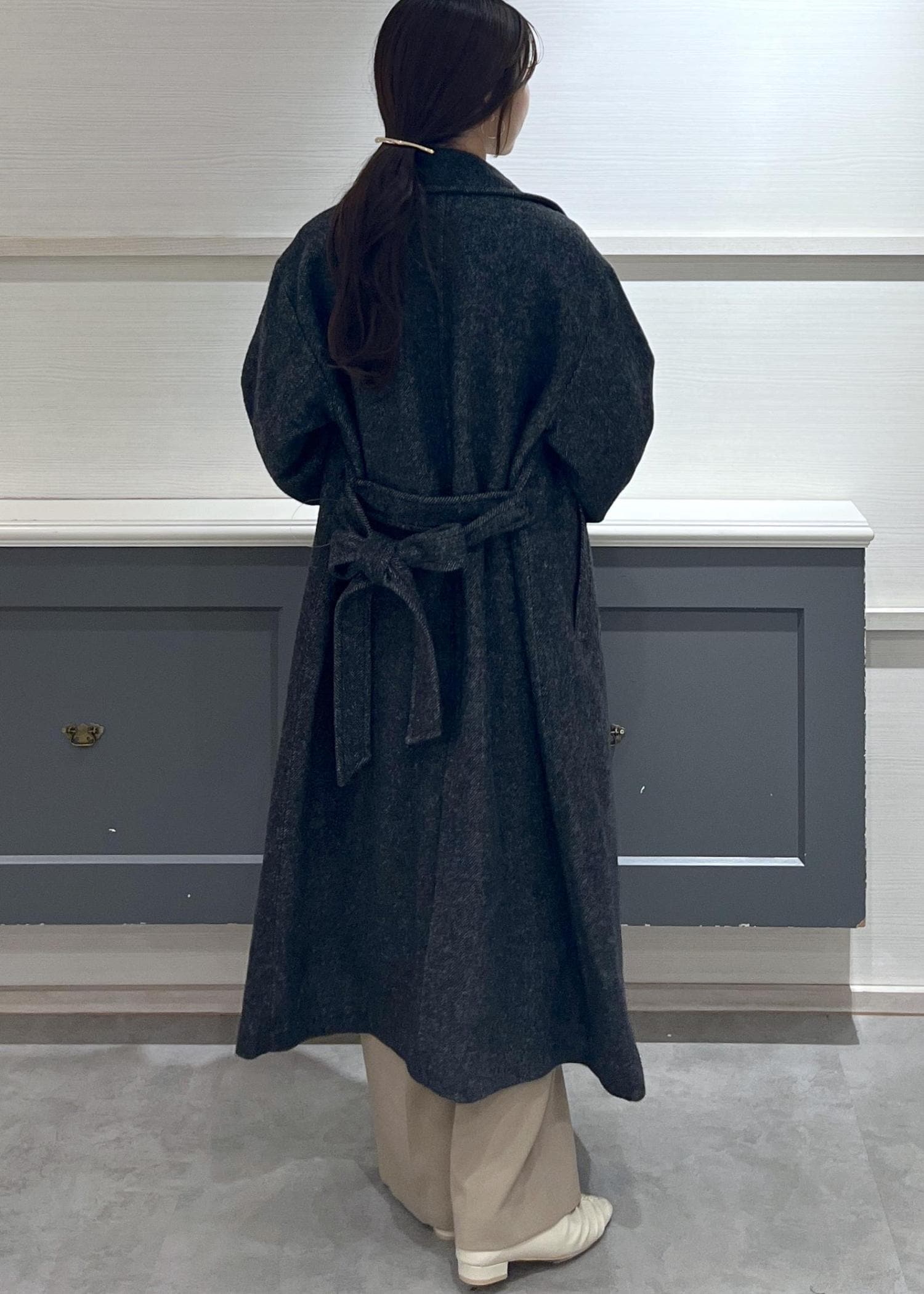 VIS尾州シャギースタンドカラーロングコート/静電気防止・WEB限定PS・TMサイズチャコール / S¥21,890レビュー156cmでふくらはぎにかかる丈感でした。