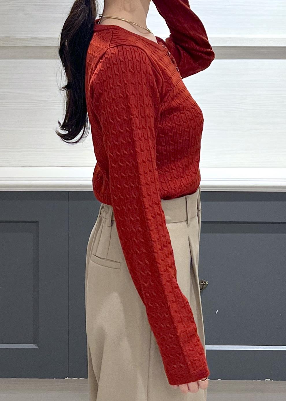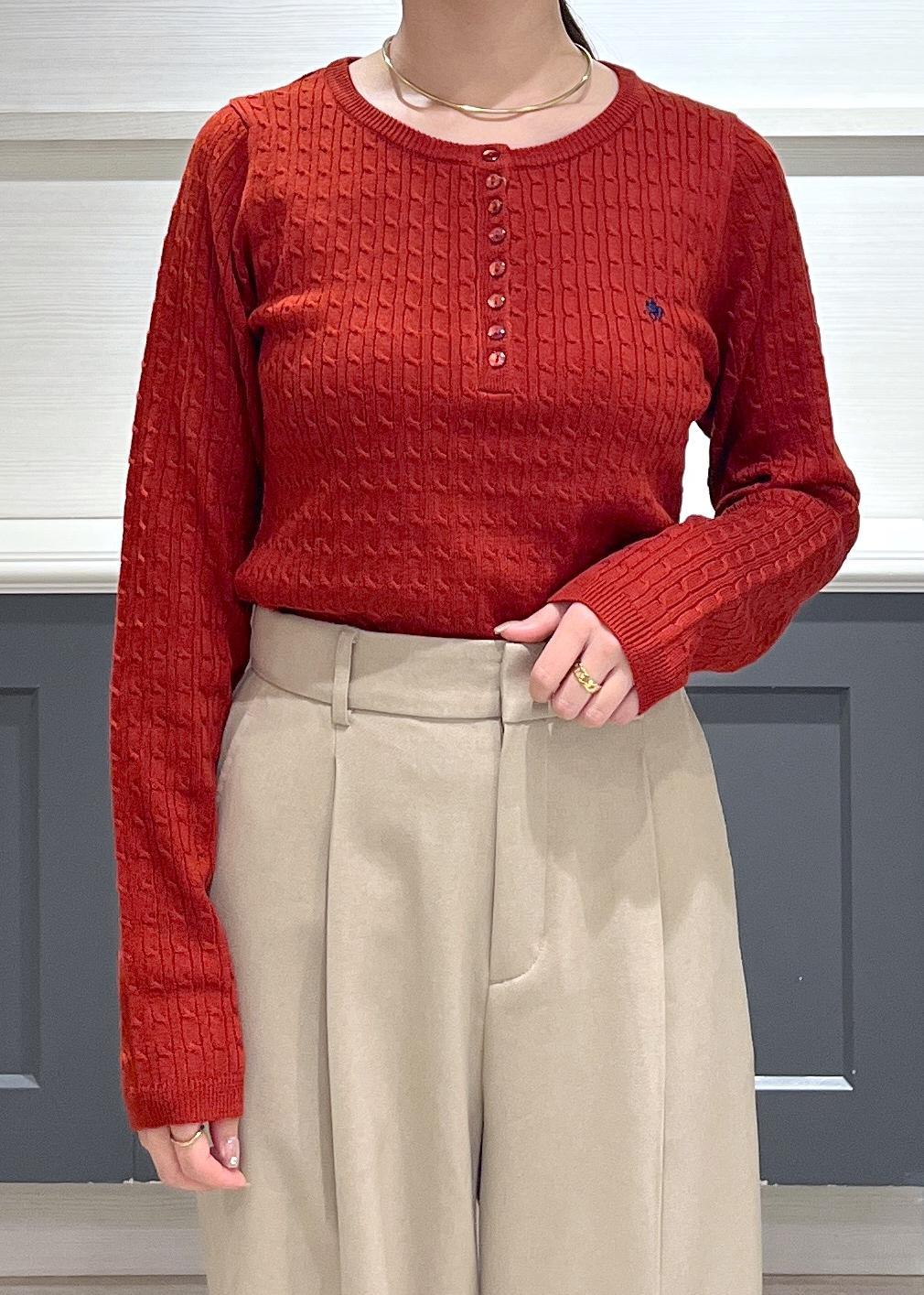 VIS【POLO BCS】VIS別注ヘンリーネックミニケーブルニットトップスレッド系 / F¥6,600レビュー156cmでヒップにかかる丈感です。