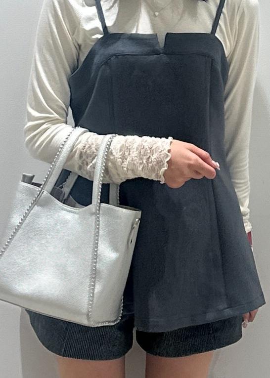 胸元のスリットがジャケットやカーディガンなどを羽織った時にポイントになるアイテムです。