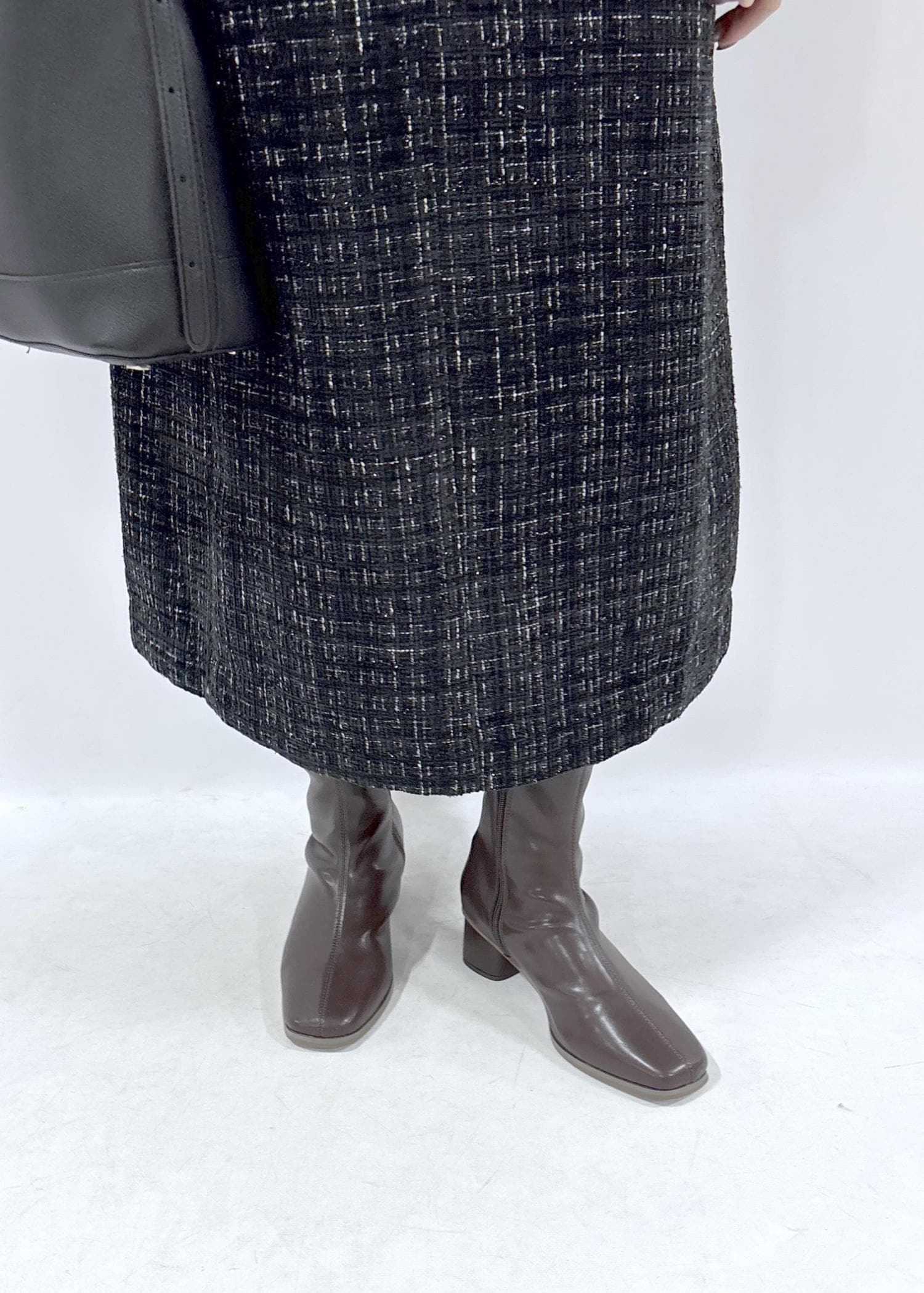 ロング丈でも長過ぎないためショートブーツと合わせやすくなっております!生地のラメ感もとても可愛いアイテムで、女子会やデートにもぴったりです♡