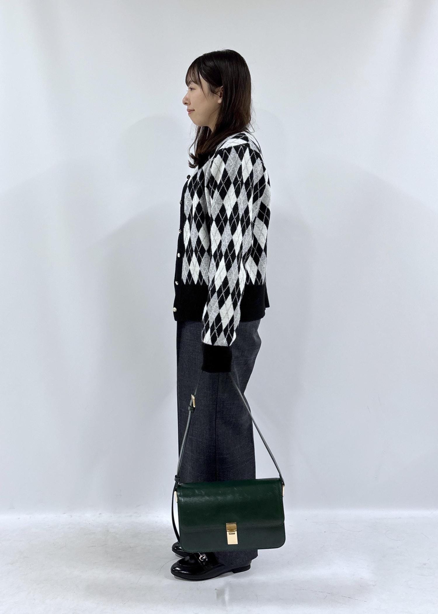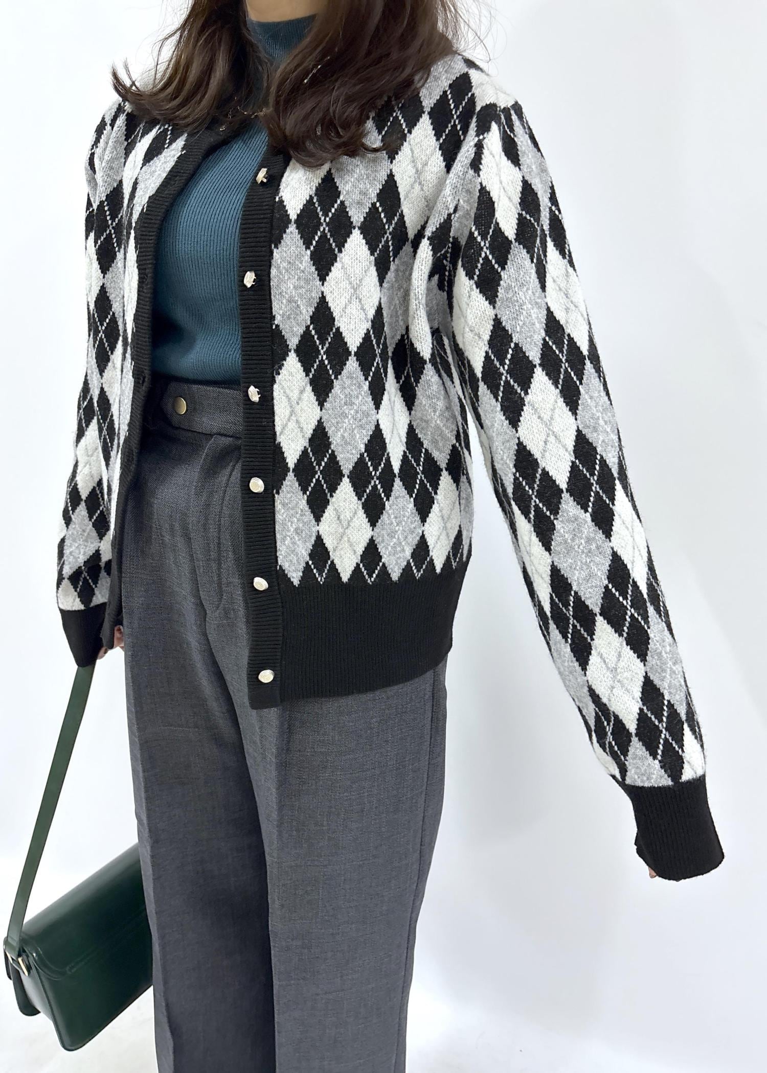 アーガイルデザインが可愛いカーディガンを使用したコーデ