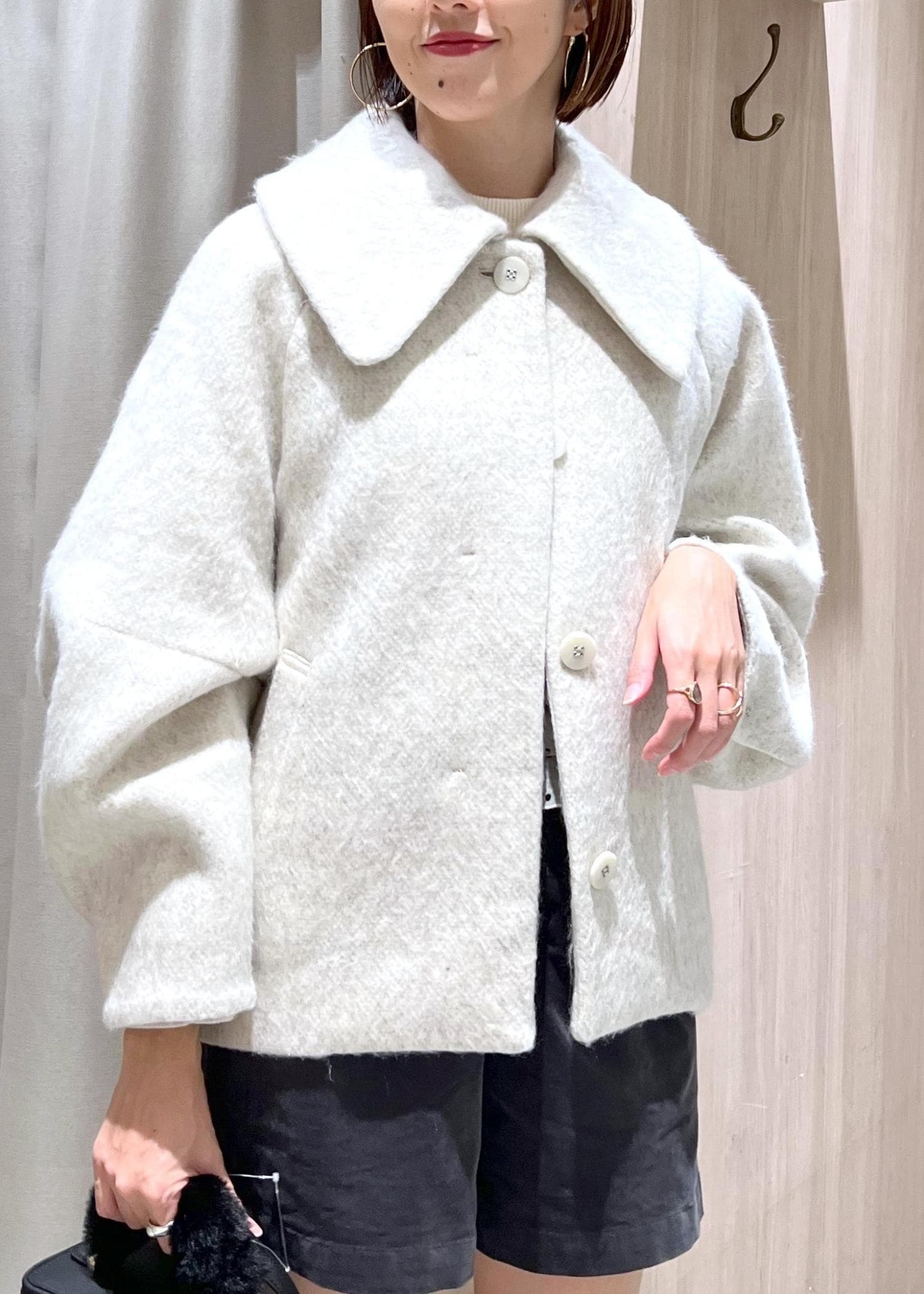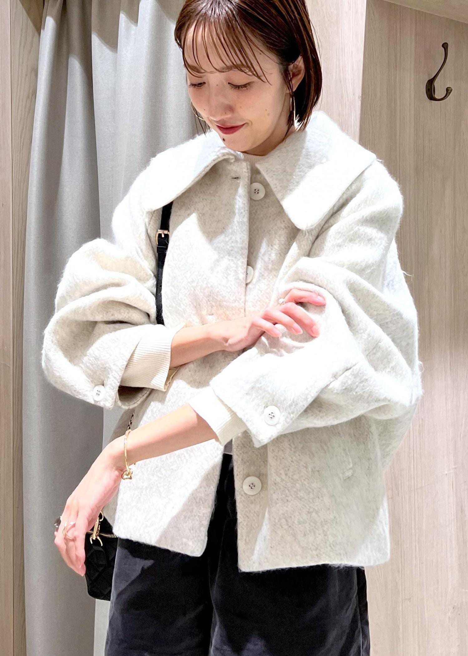 予約VIS【アウター総選挙1位】ビッグカラーモモンガシャギーショートコートオフホワイト / M¥10,989レビュー身長166センチでMサイズ着用、お尻半分隠れる長さでした。