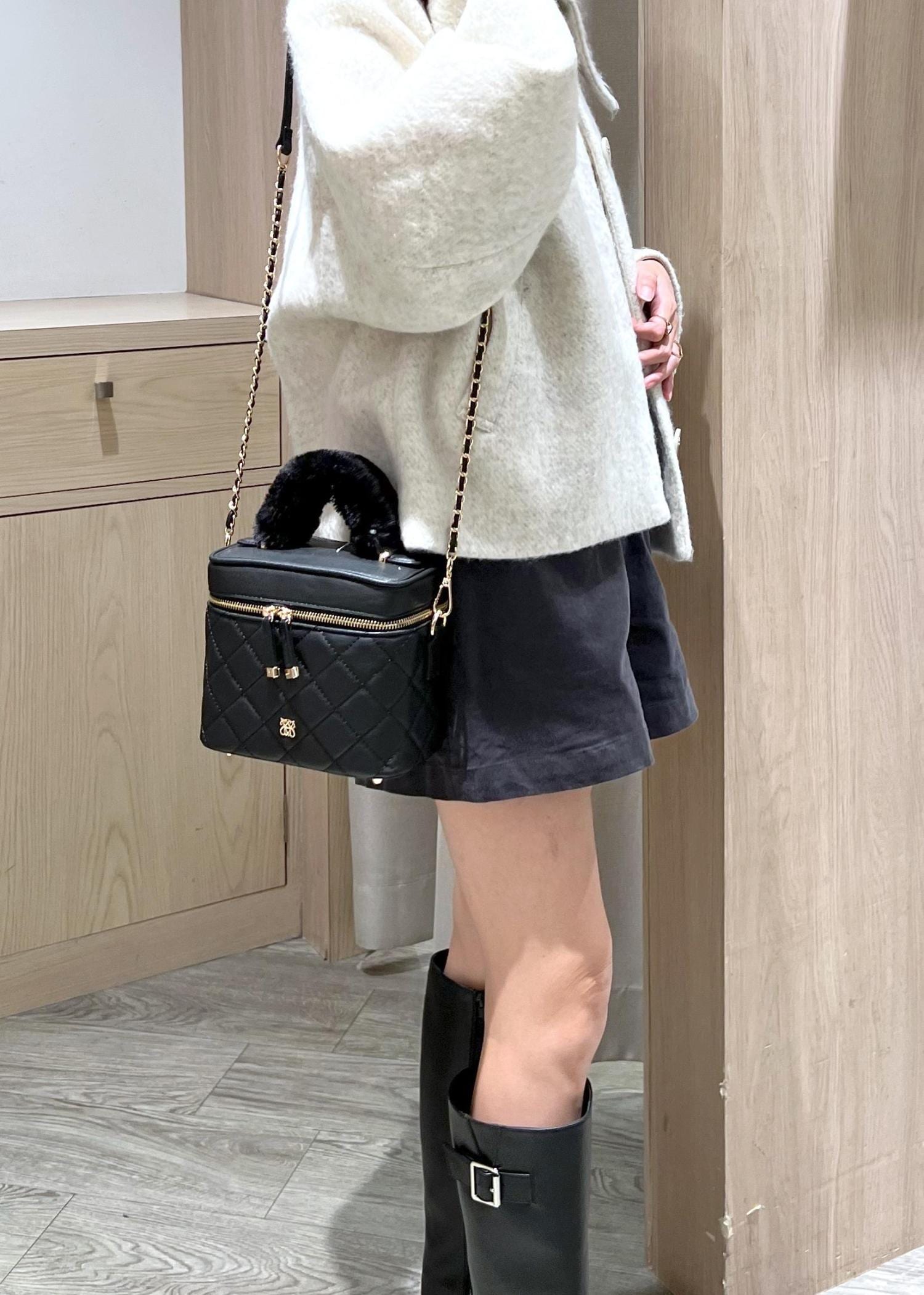 VISファーハンドルキルティング&ツイードバニティバッグ/2WAYブラック / F¥7,909レビュー持ち手部分のファーは取り外し可能なのでオールシーズン使えます◎